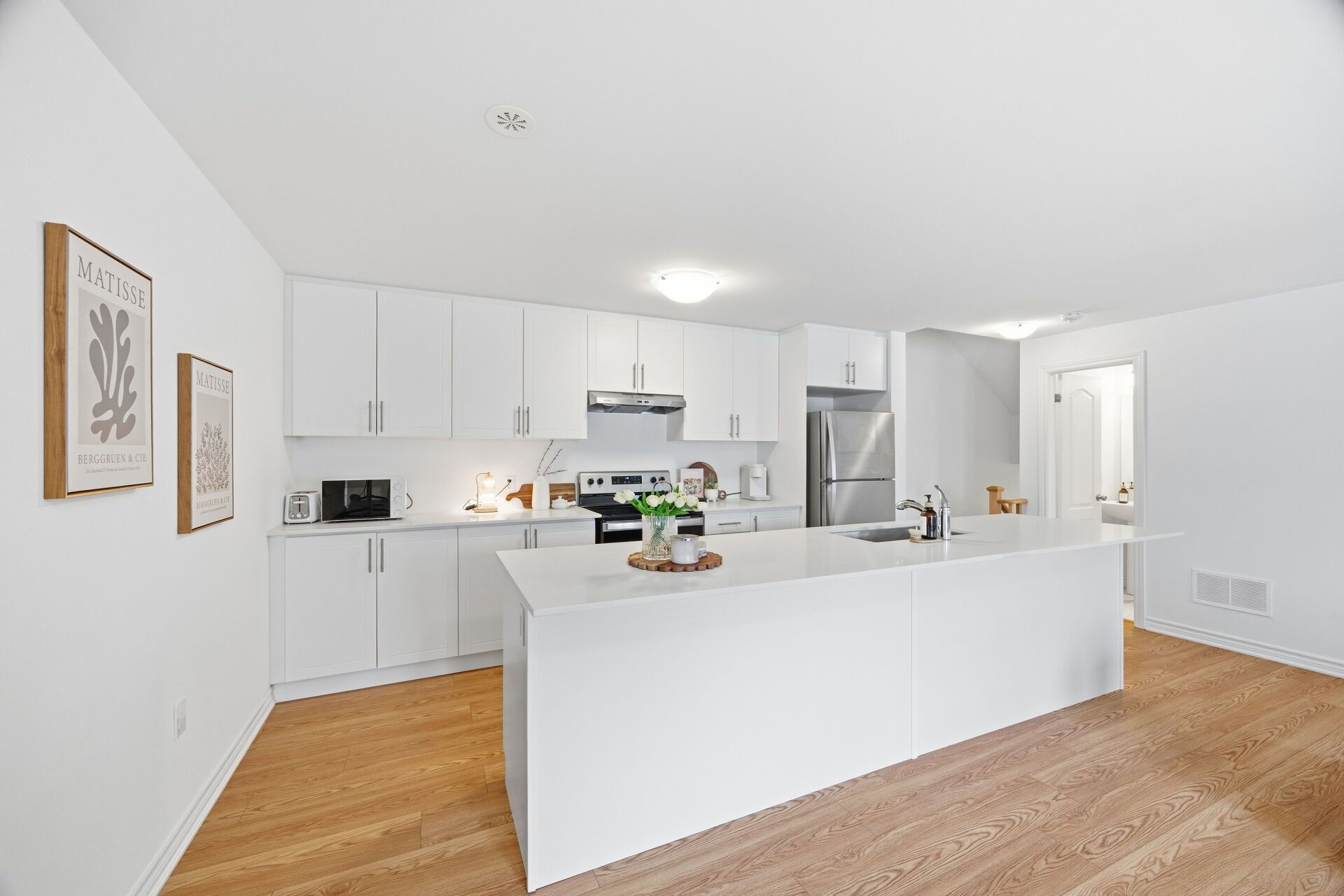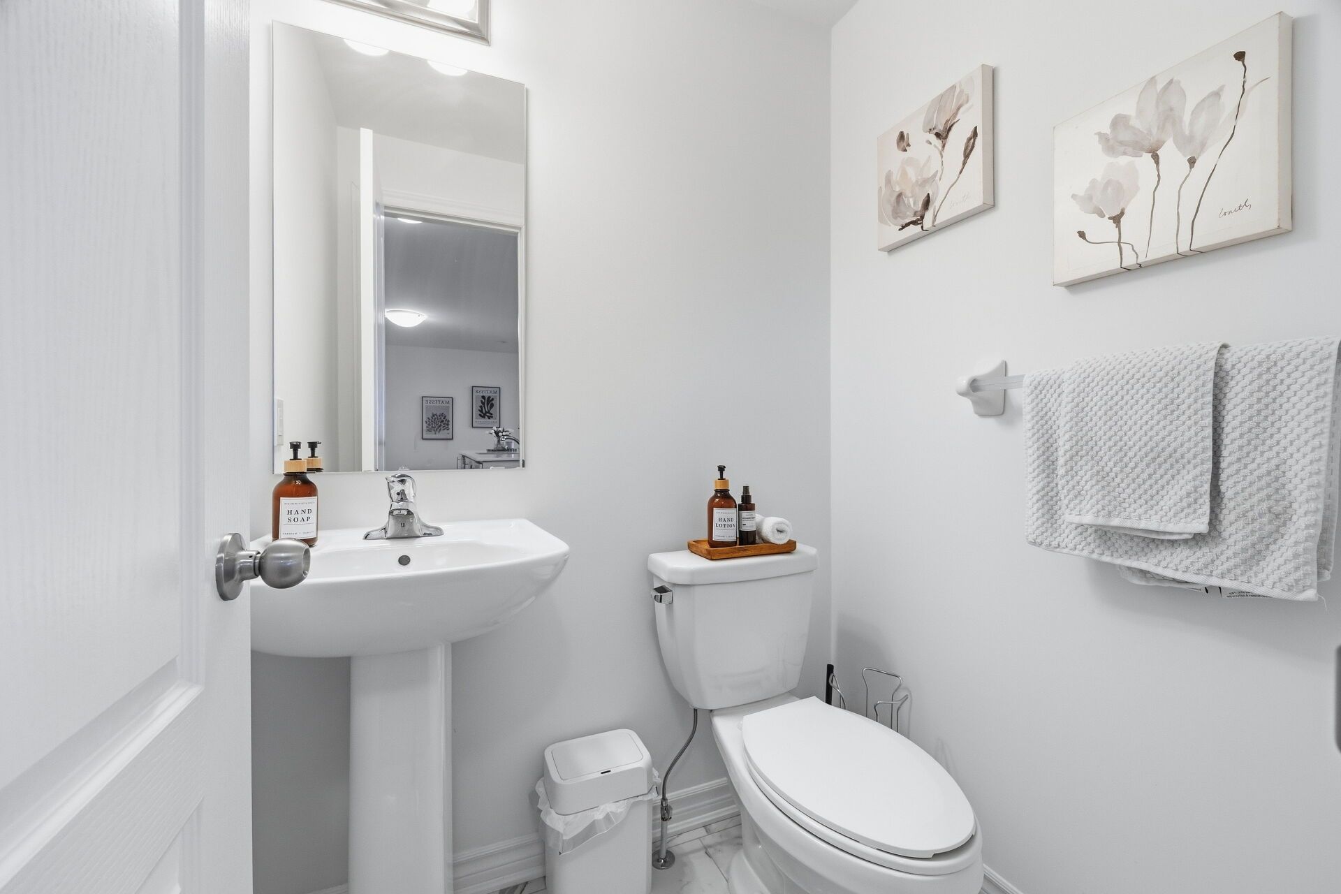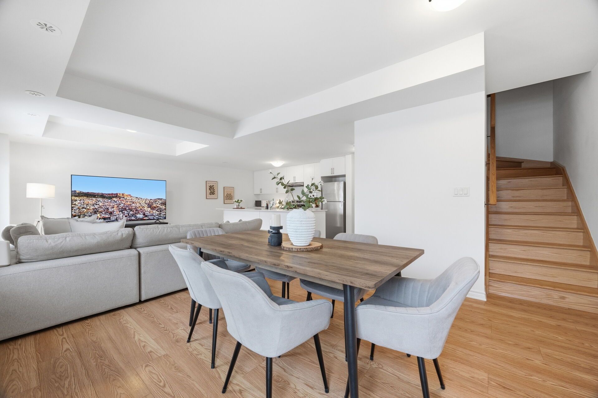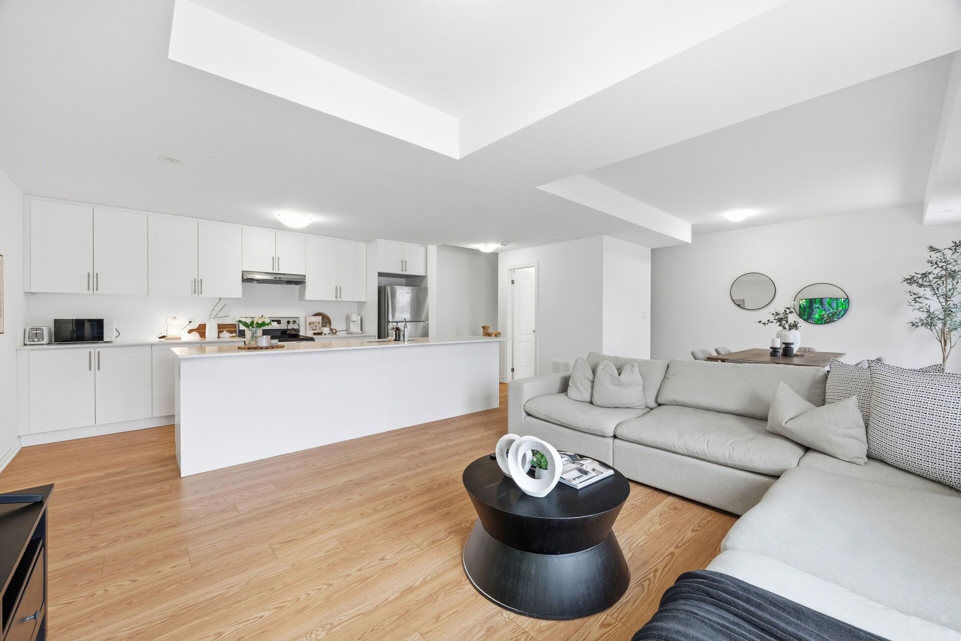 Welcome to this stunning 6-month-new executive 3-storey townhouse in the highly sought-after southfields village, caledon. Offering approx. 1,690 sq ft as per builder's floor plan, this modern home features an elegant stone, brick & stucco elevation and an unbeatable location directly across from the southfields community centre and skate park, and steps to all daily amenities. A spacious foyer with ceramic tiles leads to the bright open-concept great room combined with dining area, perfect for entertaining and everyday living. Walk out to an oversized balcony ideal for summer enjoyment. The modern kitchen boasts stainless steel appliances, ample cabinetry, a large centre island with breakfast bar, and generous counter space. A convenient powder room completes this level. Upstairs features a spacious primary bedroom with large window and 5-piece ensuite. Two additional well-sized bedrooms share an upgraded bathroom with frameless glass shower, and the second bedroom offers access to its own private balcony. A rare highlight is the fully private terrace for summers bbqs and gatherings, perfect for bbqs and outdoor gatherings. Includes 1-car garage plus 1 on driveway (2 total). Location is exceptional: directly across from southfields community centre and skate park, steps to plaza with grocery stores, pharmacy, restaurants, and convenience stores. Walking distance to highly rated southfields village public school, bonnieglen farm park, access to etobicoke creek trails, parks and pond. Close to the newly opened mega gym and conveniently located on a bus route, making commuting simple and accessible.