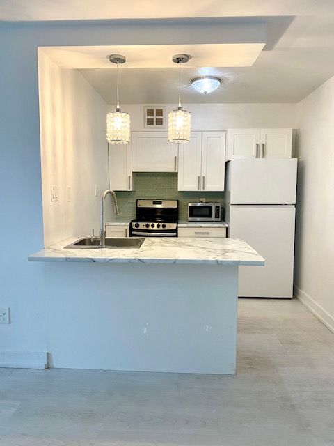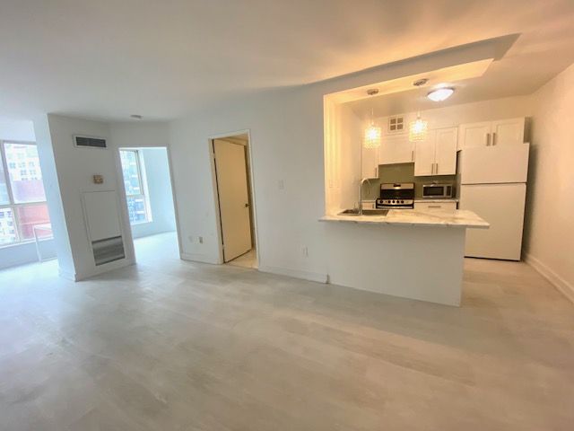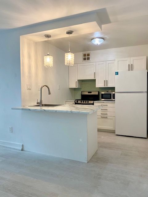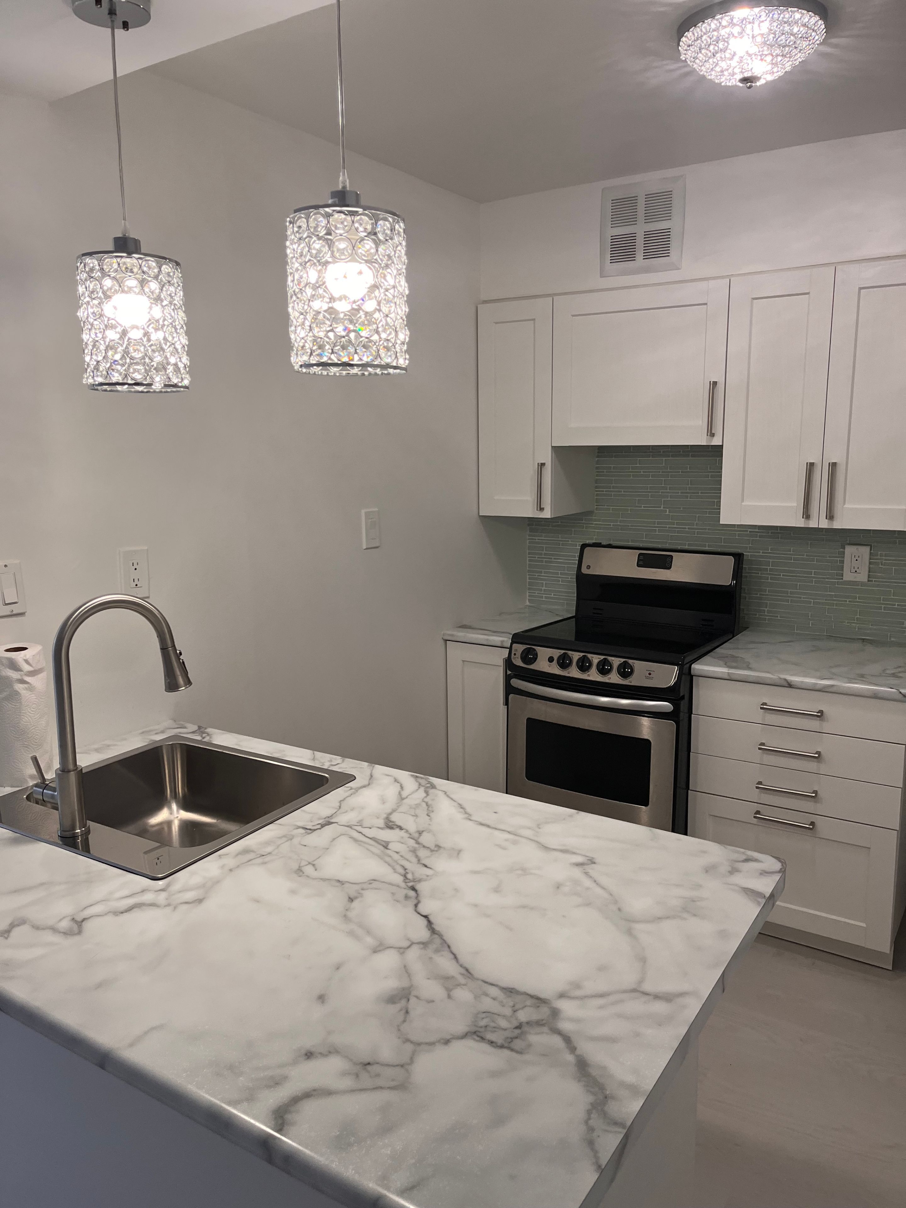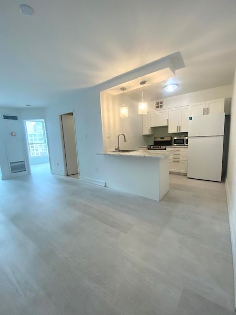 • Completely renovated one-bedroom condo with practical den for a home office.
