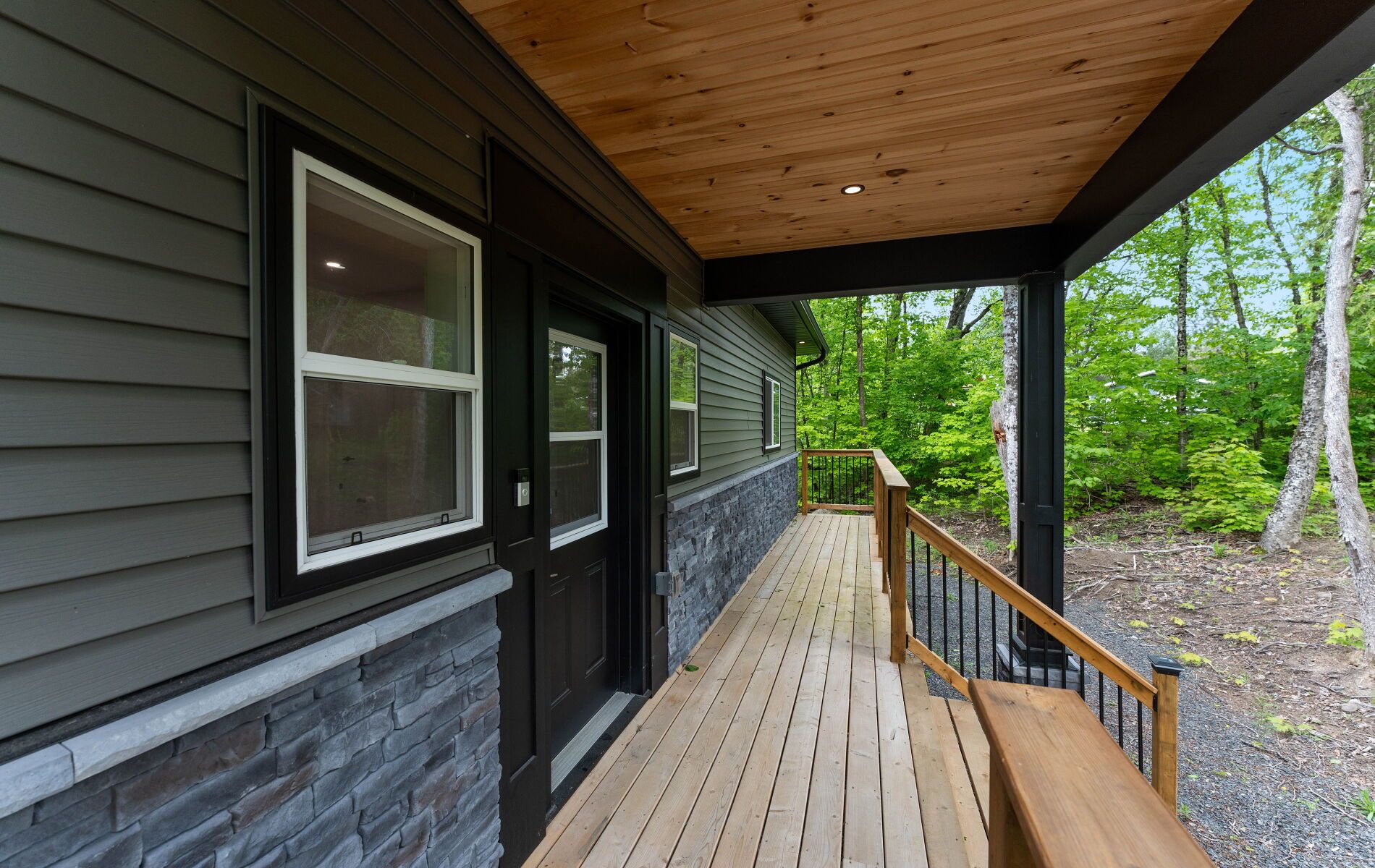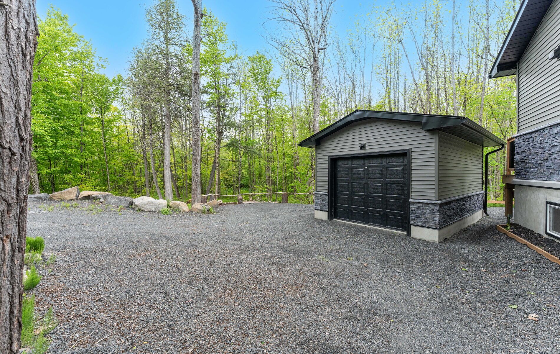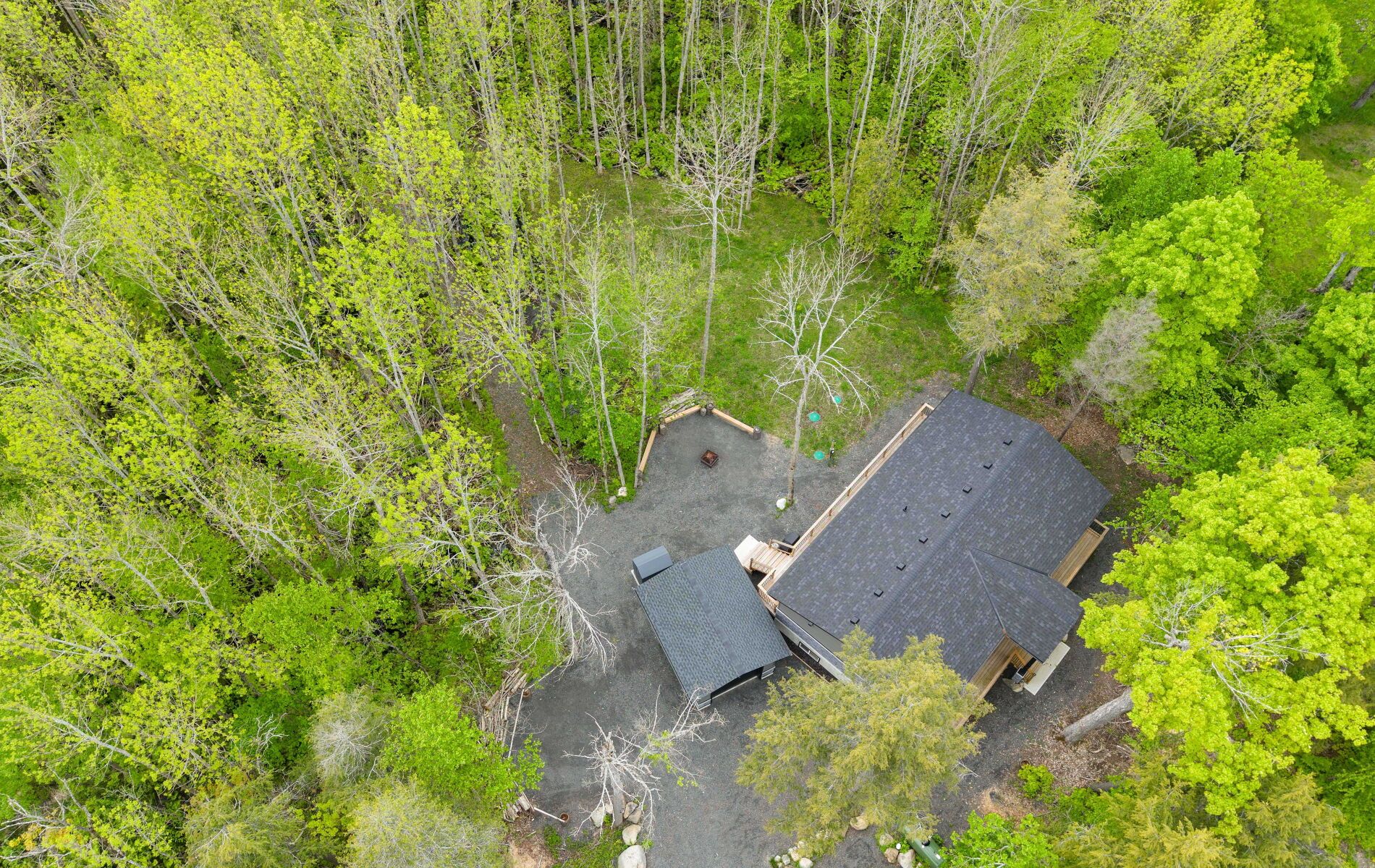 44 sunnyshore park drive - a custom-built home just steps from maplewood beach completed in 2023, this beautiful custom home sits on just over an acre and offers quality, comfort, and energy efficiency throughout. Built with an icf foundation, full waterproofing, and a weeping tile system, the home meets modern construction standards. It features engineered truss roof framing, spray-foam insulation in the main floor and rim joists, and an r60-rated attic. A heat recovery ventilation (hrv) system ensures clean, fresh air year-round. The exterior boasts stone skirting and a spacious ranch-style front deck with a welcoming overhang. Inside, the foyer features large-format european porcelain tiles. The open-concept kitchen is a showstopper with custom lacquered shaker cabinets to the ceiling, crown molding, under-cabinet led lighting, quartz countertops, an island with undermount sink, and a stylish italian herringbone backsplash. Soft-close, solid wood dovetail drawers and smart stainless-steel appliances-including fridge, stove, and dishwasher-complete the space. A custom live edge elm dining table is also included. Modern shaker interior doors and matte black hardware continue the high-end feel throughout. Everything is brand new (2023): septic, hvac, siding, electrical, plumbing, and framing. Located minutes from lake manitouwabing, you're close to boat launches at the manitouwabing outpost and tait's landing marina, where boat slips are also available. This is the perfect blend of lakeside living and modern luxury.