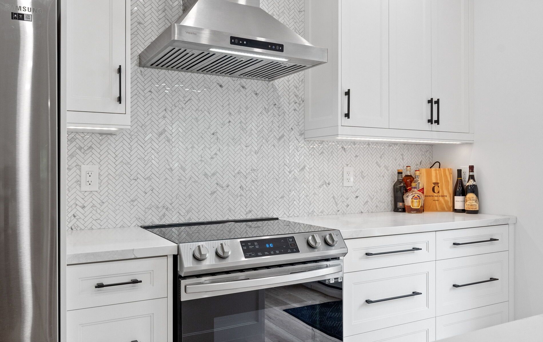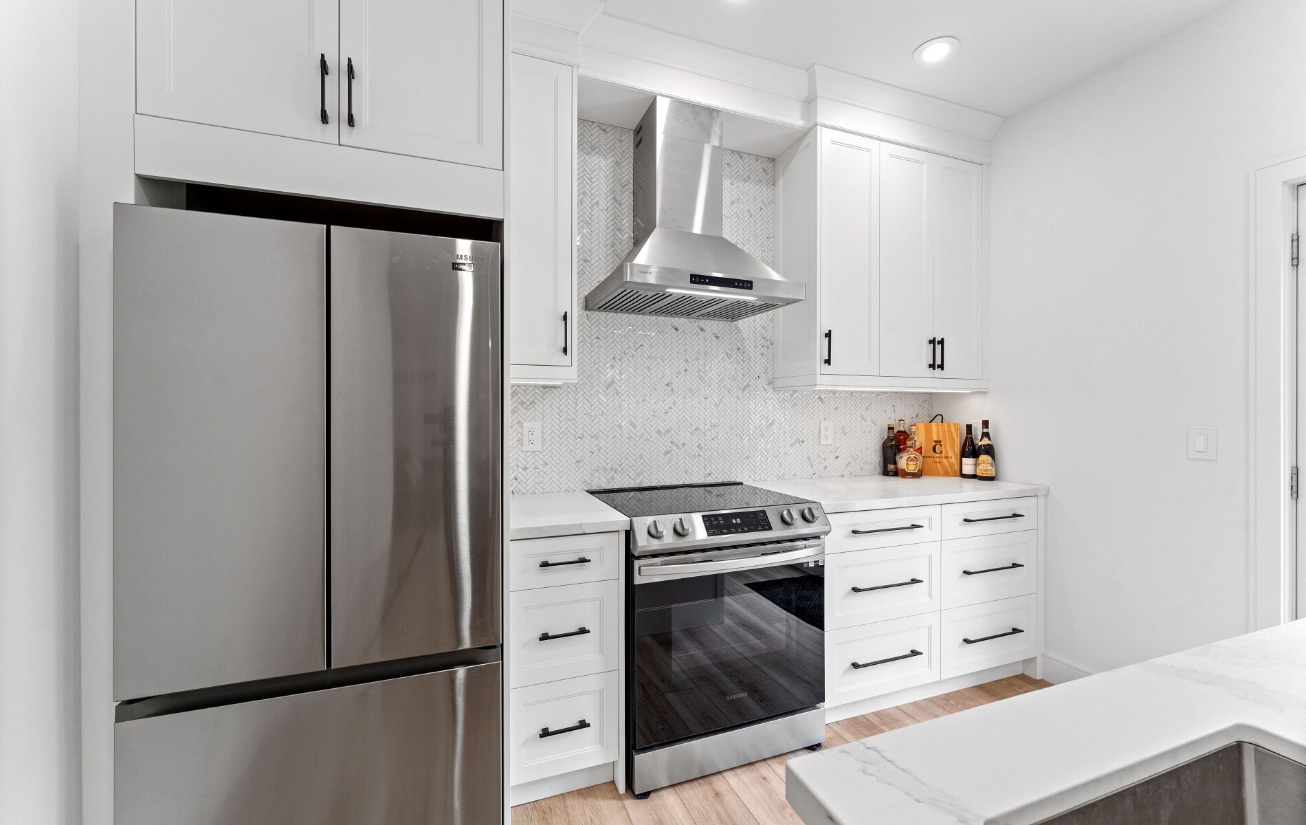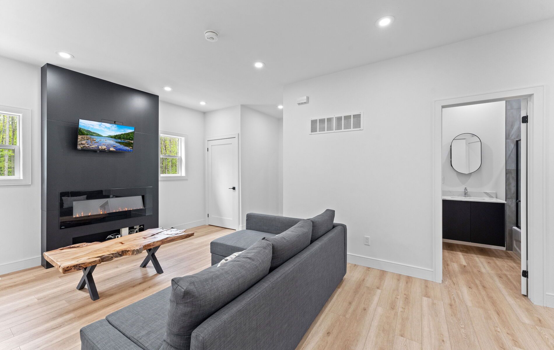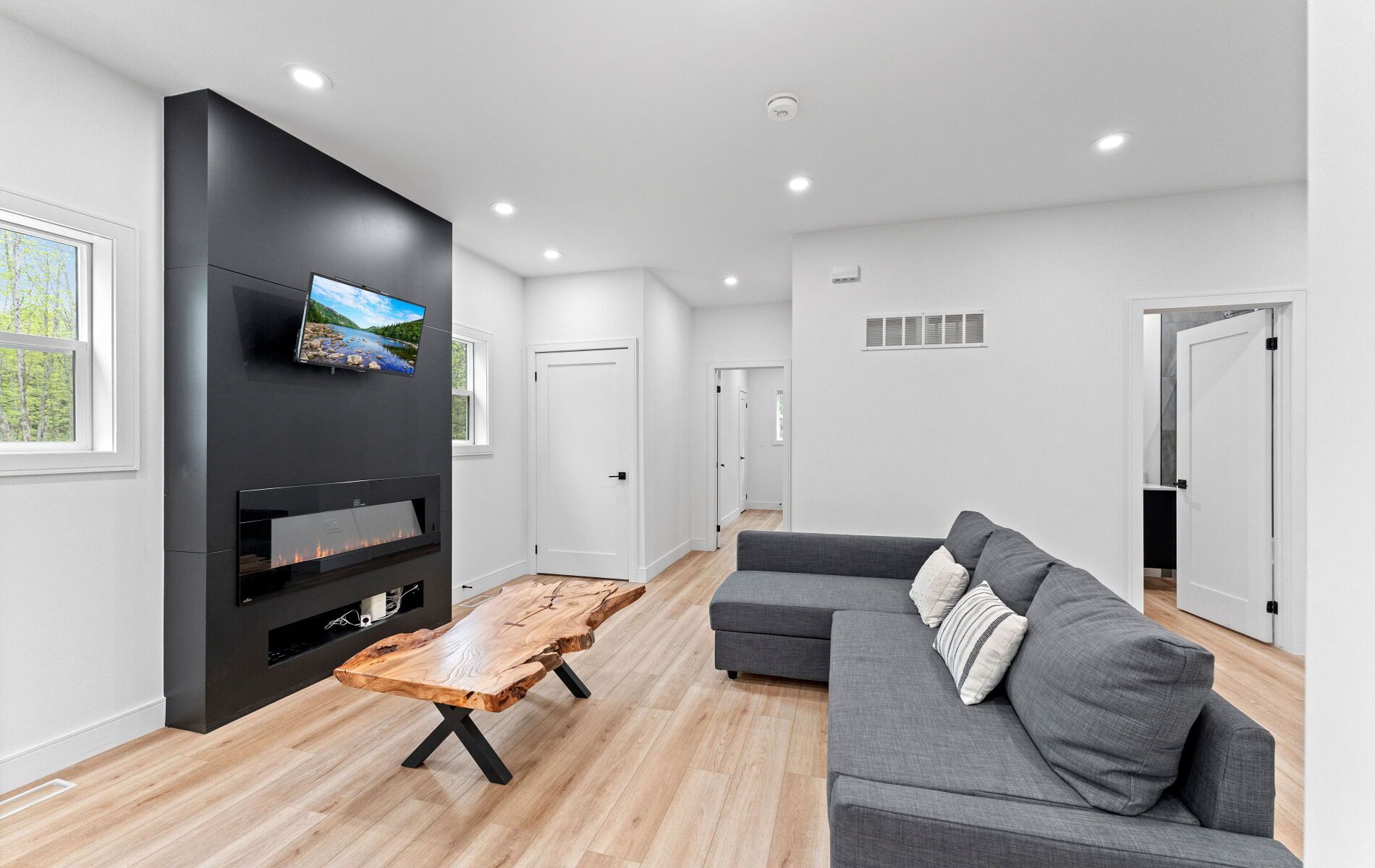 44 sunnyshore park drive - a custom-built home just steps from maplewood beach completed in 2023, this beautiful custom home sits on just over an acre and offers quality, comfort, and energy efficiency throughout. Built with an icf foundation, full waterproofing, and a weeping tile system, the home meets modern construction standards. It features engineered truss roof framing, spray-foam insulation in the main floor and rim joists, and an r60-rated attic. A heat recovery ventilation (hrv) system ensures clean, fresh air year-round. The exterior boasts stone skirting and a spacious ranch-style front deck with a welcoming overhang. Inside, the foyer features large-format european porcelain tiles. The open-concept kitchen is a showstopper with custom lacquered shaker cabinets to the ceiling, crown molding, under-cabinet led lighting, quartz countertops, an island with undermount sink, and a stylish italian herringbone backsplash. Soft-close, solid wood dovetail drawers and smart stainless-steel appliances-including fridge, stove, and dishwasher-complete the space. A custom live edge elm dining table is also included. Modern shaker interior doors and matte black hardware continue the high-end feel throughout. Everything is brand new (2023): septic, hvac, siding, electrical, plumbing, and framing. Located minutes from lake manitouwabing, you're close to boat launches at the manitouwabing outpost and tait's landing marina, where boat slips are also available. This is the perfect blend of lakeside living and modern luxury.