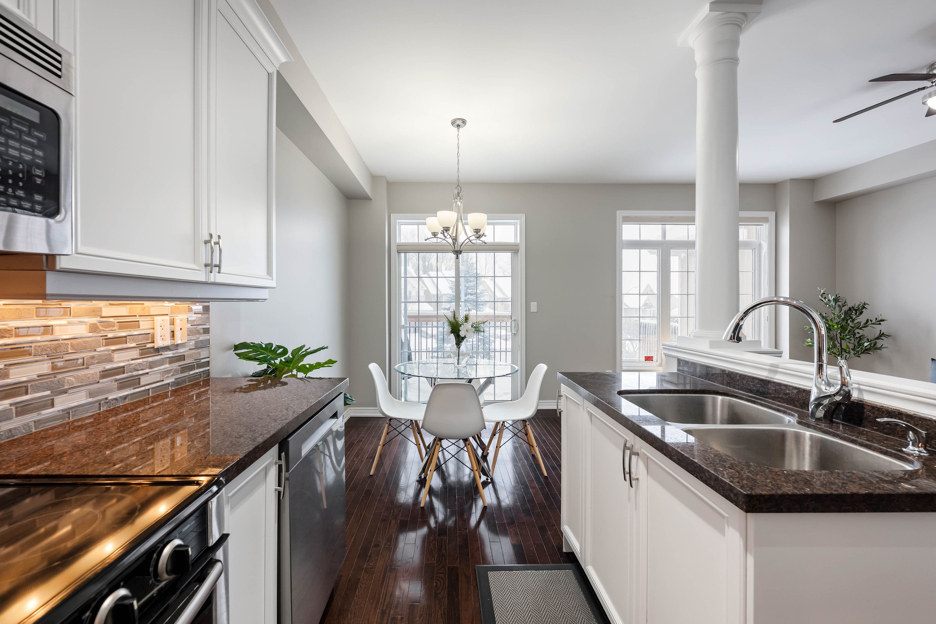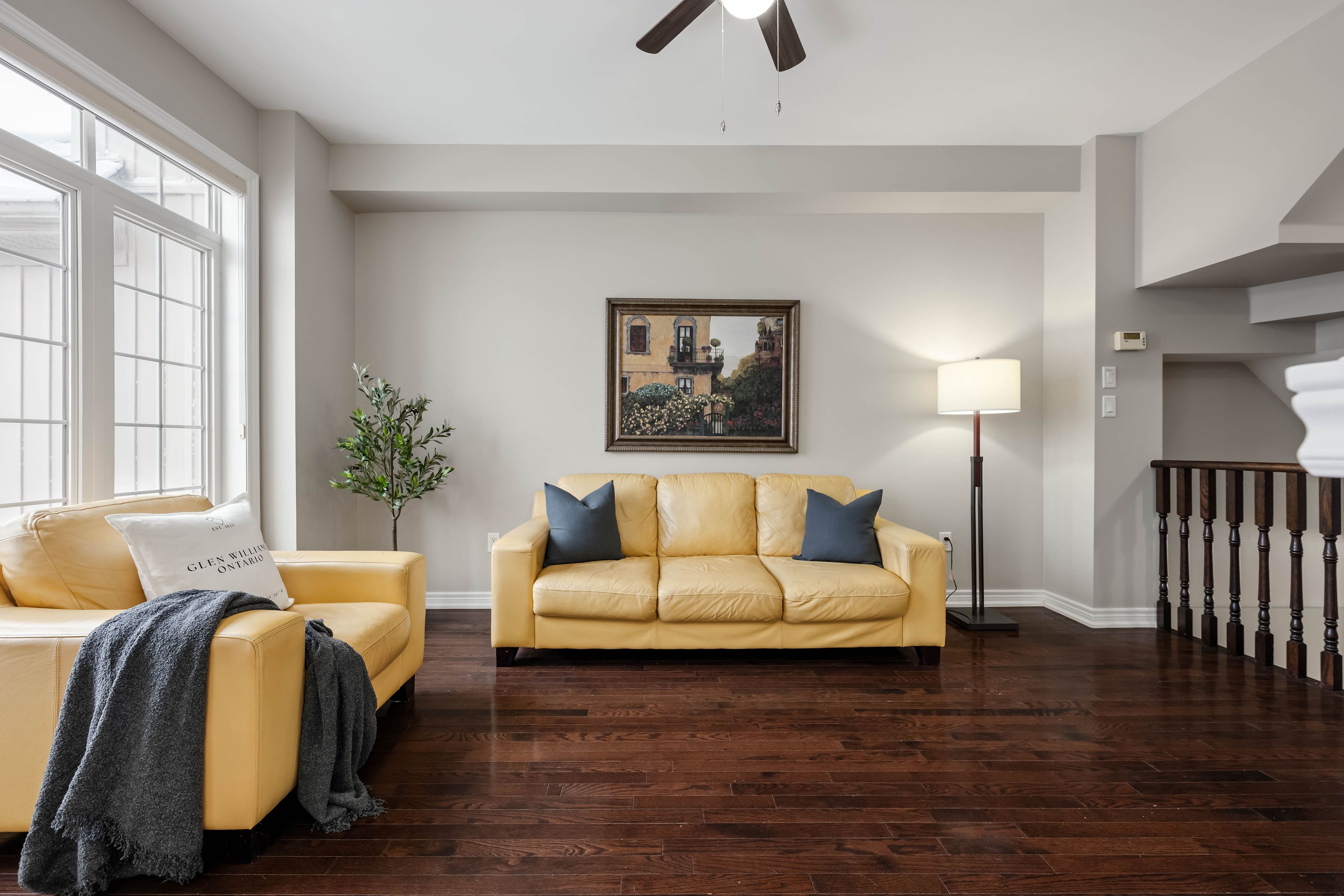 Welcome home! This beautifully maintained 3-bedroom, 3-bathroom townhome is nestled within a small, close-knit community that offers the charm of town living with the ease of modern convenience. Located in the sought-after meadowglen neighbourhood near glen williams, this home is ideal for families and professionals alike. Enjoy a short walk to the go station, making commuting effortless and stress-free. Just steps away, downtown georgetown invites you to explore local shops, cafés, and boutiques, perfect for weekend strolls, coffee dates, and supporting local businesses. Inside, large windows throughout the home flood the interior with natural light, beautifully highlighting the rich hardwood floors and creating a warm, inviting atmosphere. The bright, updated eat-in kitchen is designed for both busy mornings and relaxed family meals, offering a space where everyone gathers. Step out onto your private balcony, an ideal spot to enjoy morning coffee or unwind in the evening. Upstairs, the primary bedroom welcomes you through elegant double doors into a sun-filled space, perfect for bright mornings and cozy evenings. Two additional bedrooms offer flexibility for growing families, guest rooms, or a comfortable work-from-home office. Downstairs, you're welcomed by a light-filled space anchored by a cozy fireplace, offering valuable additional living space ideal for a family room, play area, or media lounge. The generously sized laundry room adds everyday practicality and convenience, while the walkout to the backyard creates a natural connection to the outdoors. From the backyard, enjoy direct access to an exclusive parkette with a charming gazebo, a wonderful extension of your living space for family gatherings and summer celebrations. Thoughtfully laid out and located in a family-friendly community, this home offers a lifestyle where convenience, comfort, and charm come together to create a place you'll love coming home to every day.
