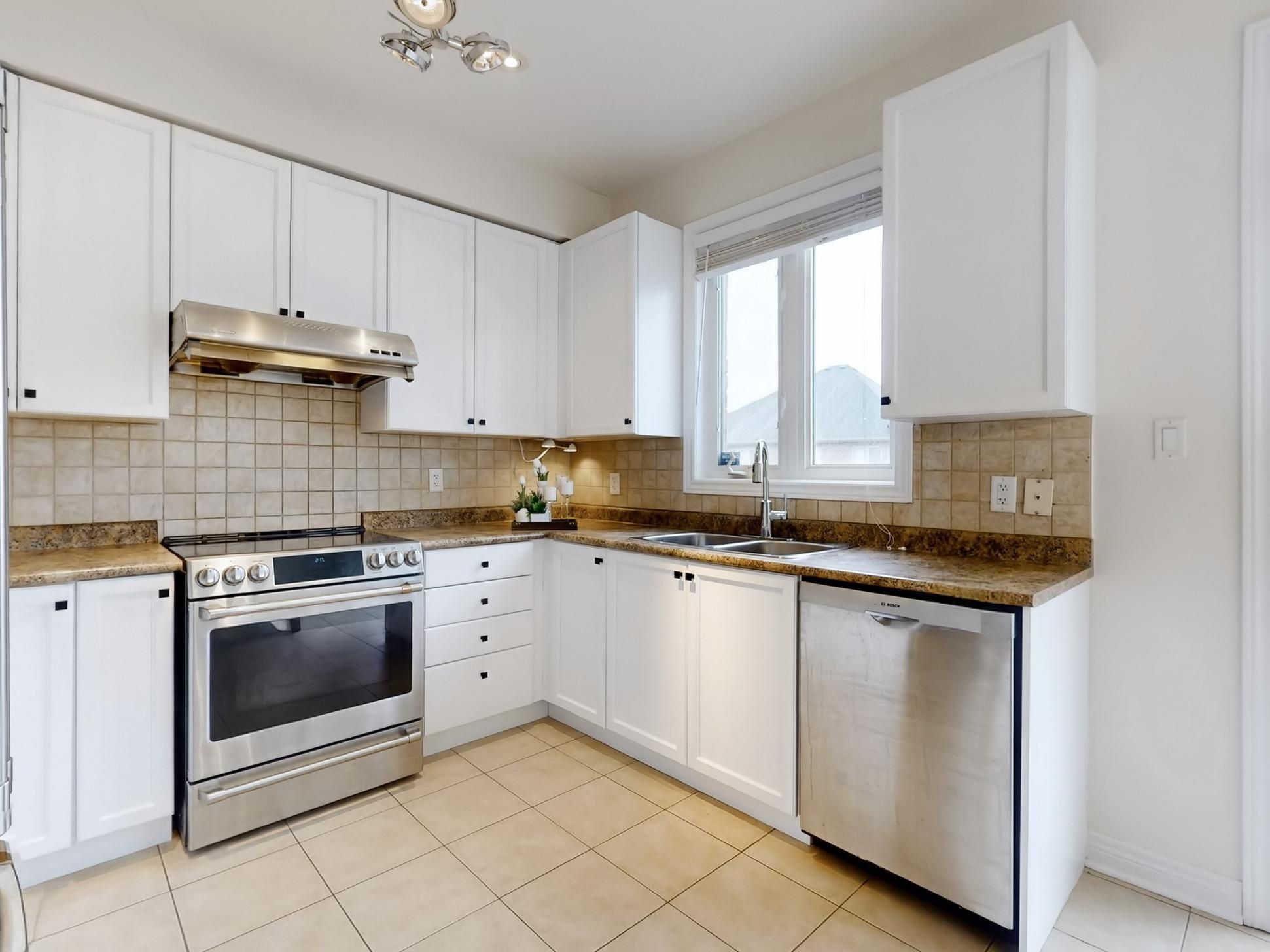 • Modern kitchen features high-end stainless steel appliances and a deck.
