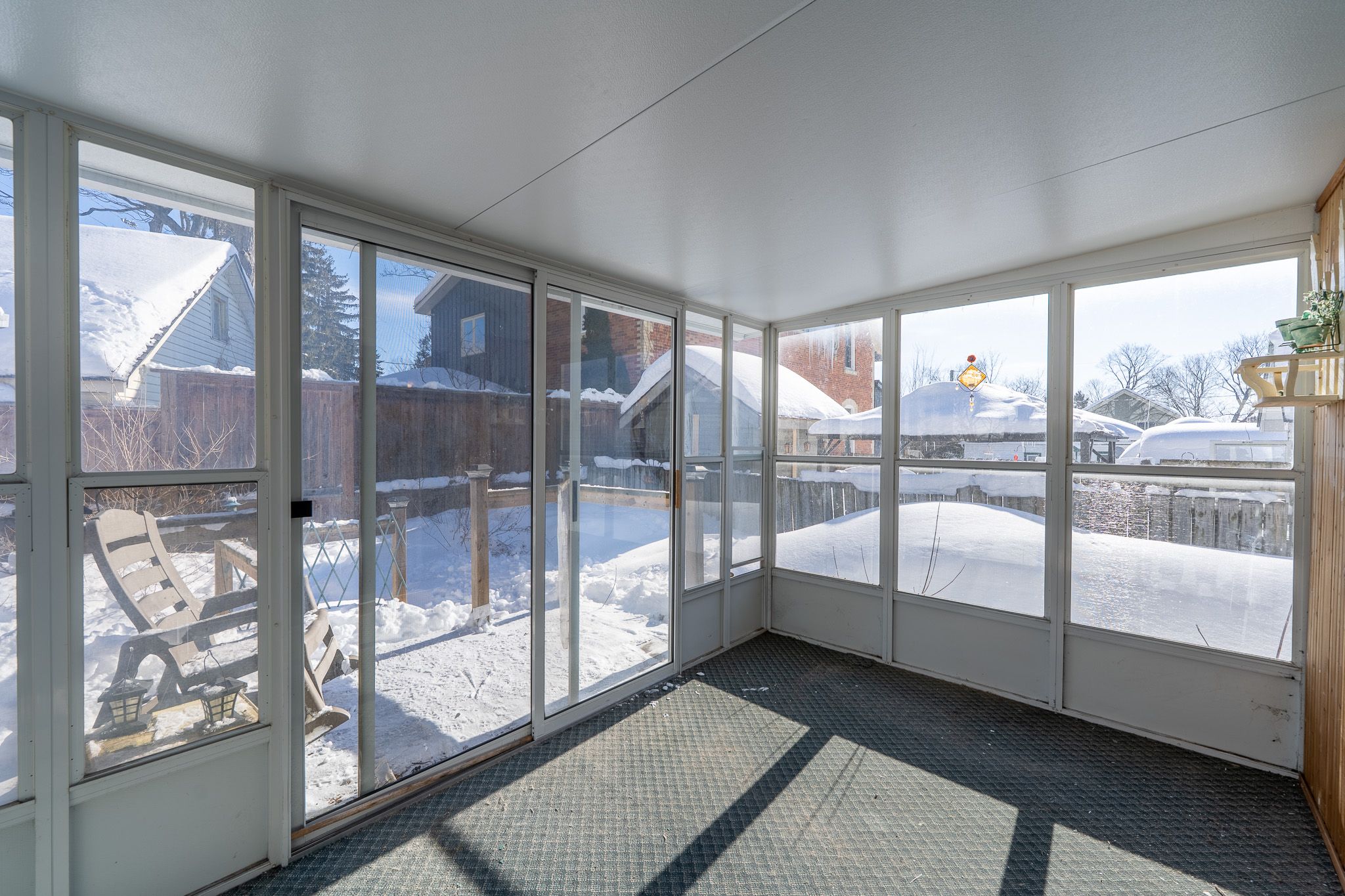 • Sunroom opens onto a two-tiered deck and garden.