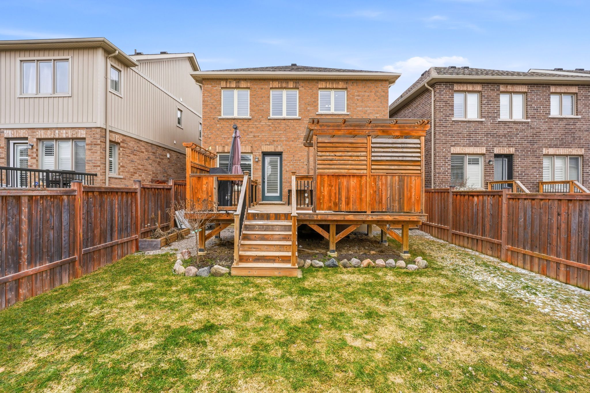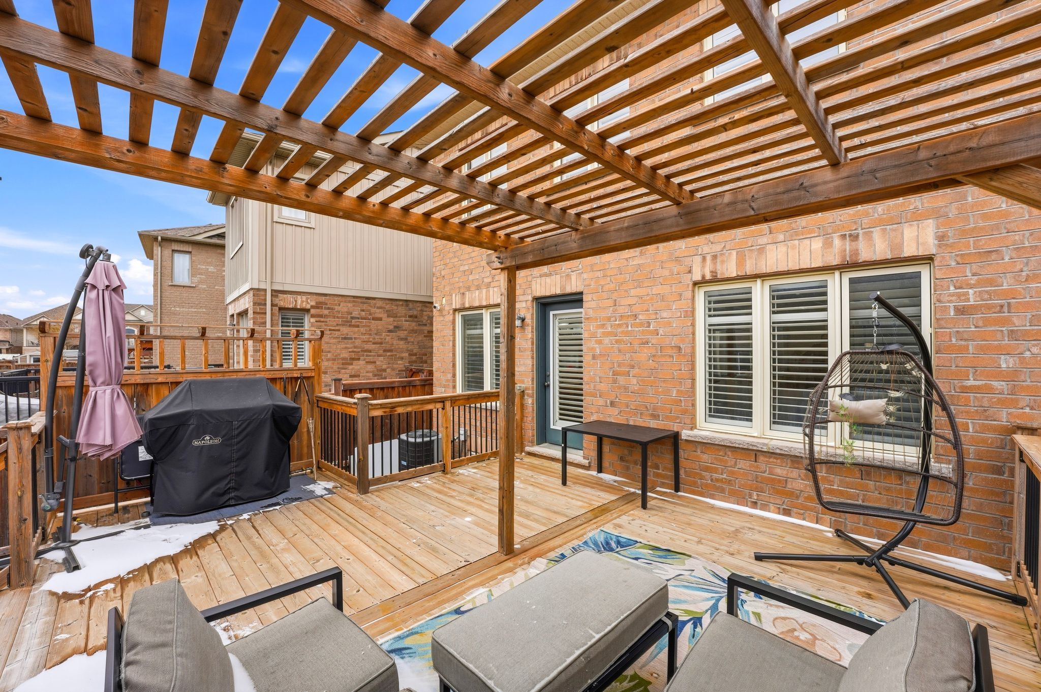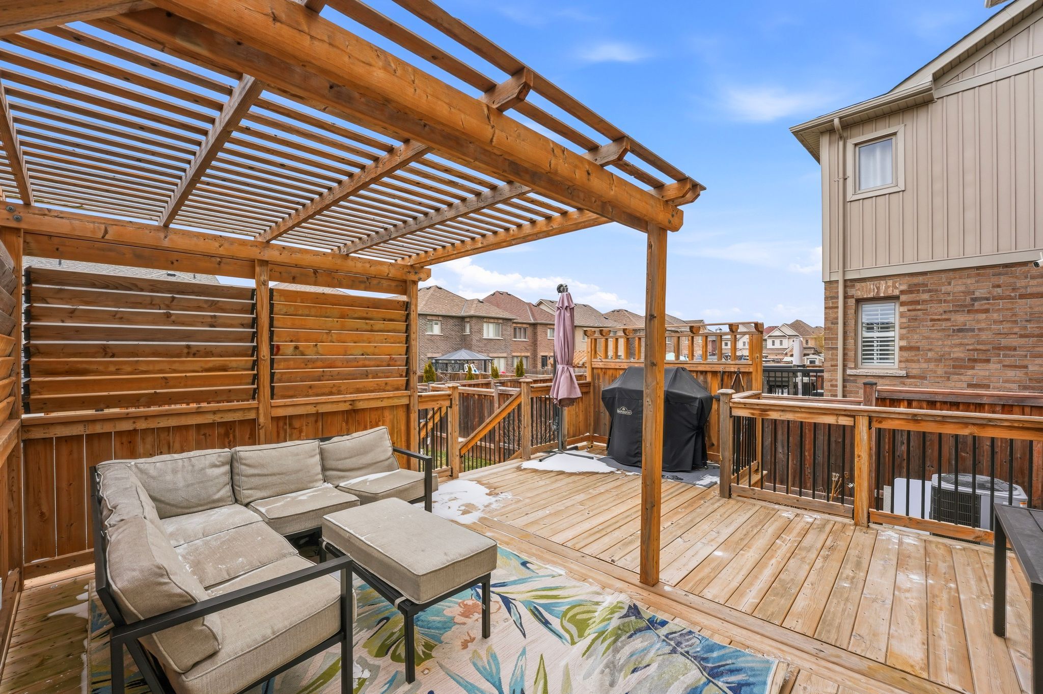 • Private west-facing backyard with custom deck and stylish gazebo for relaxation.