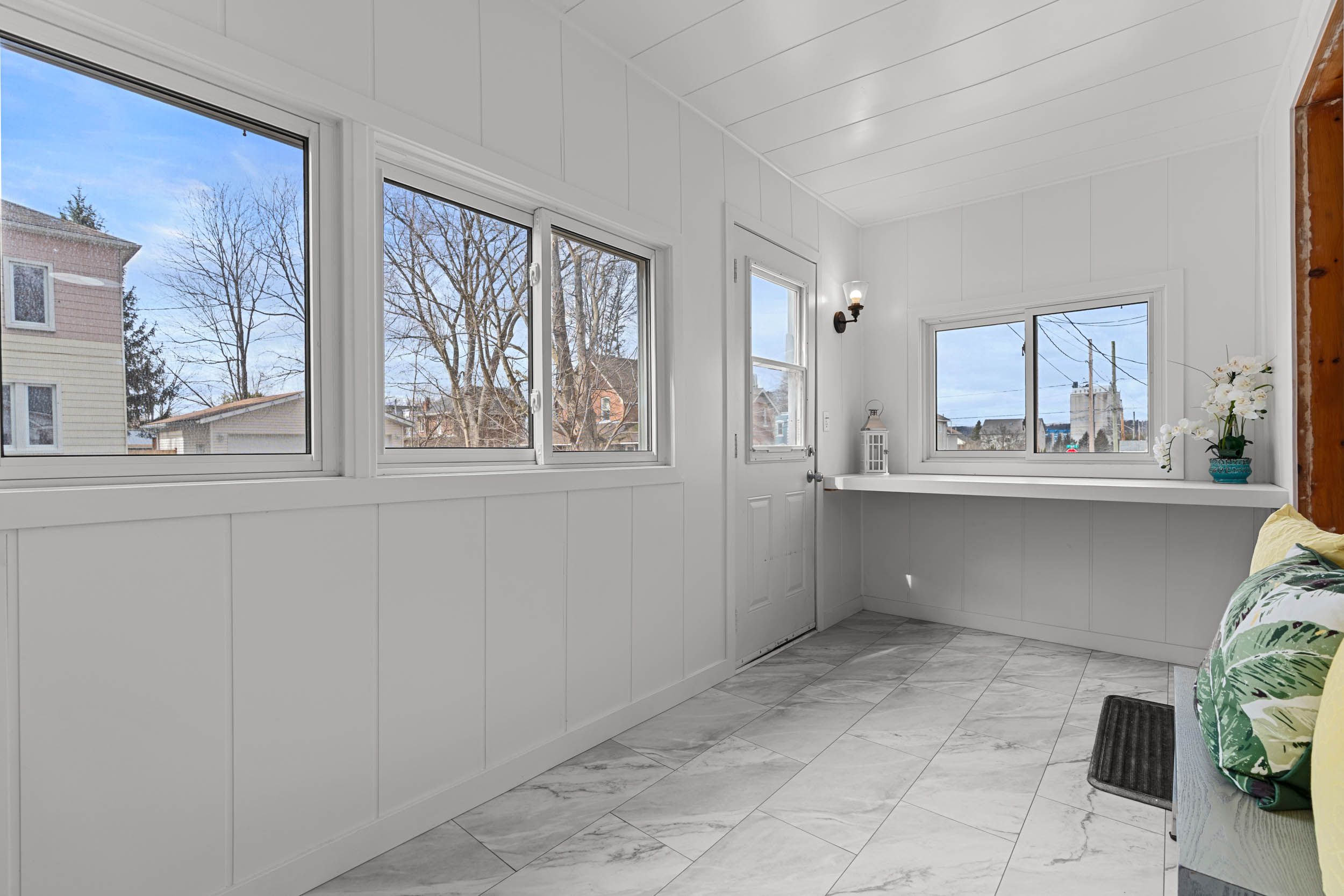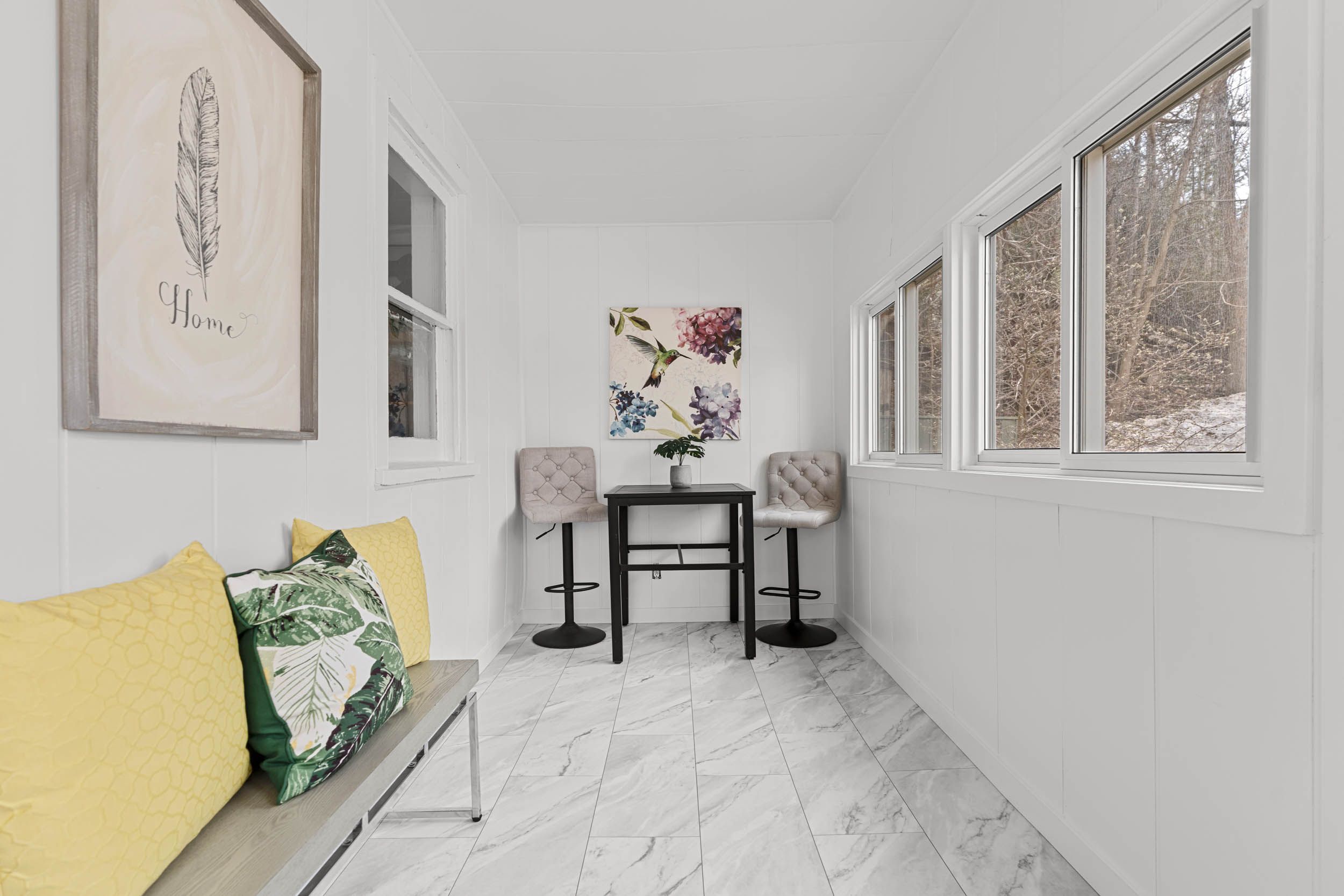 • Inviting three-season sunroom ideal for year-round enjoyment and storage.