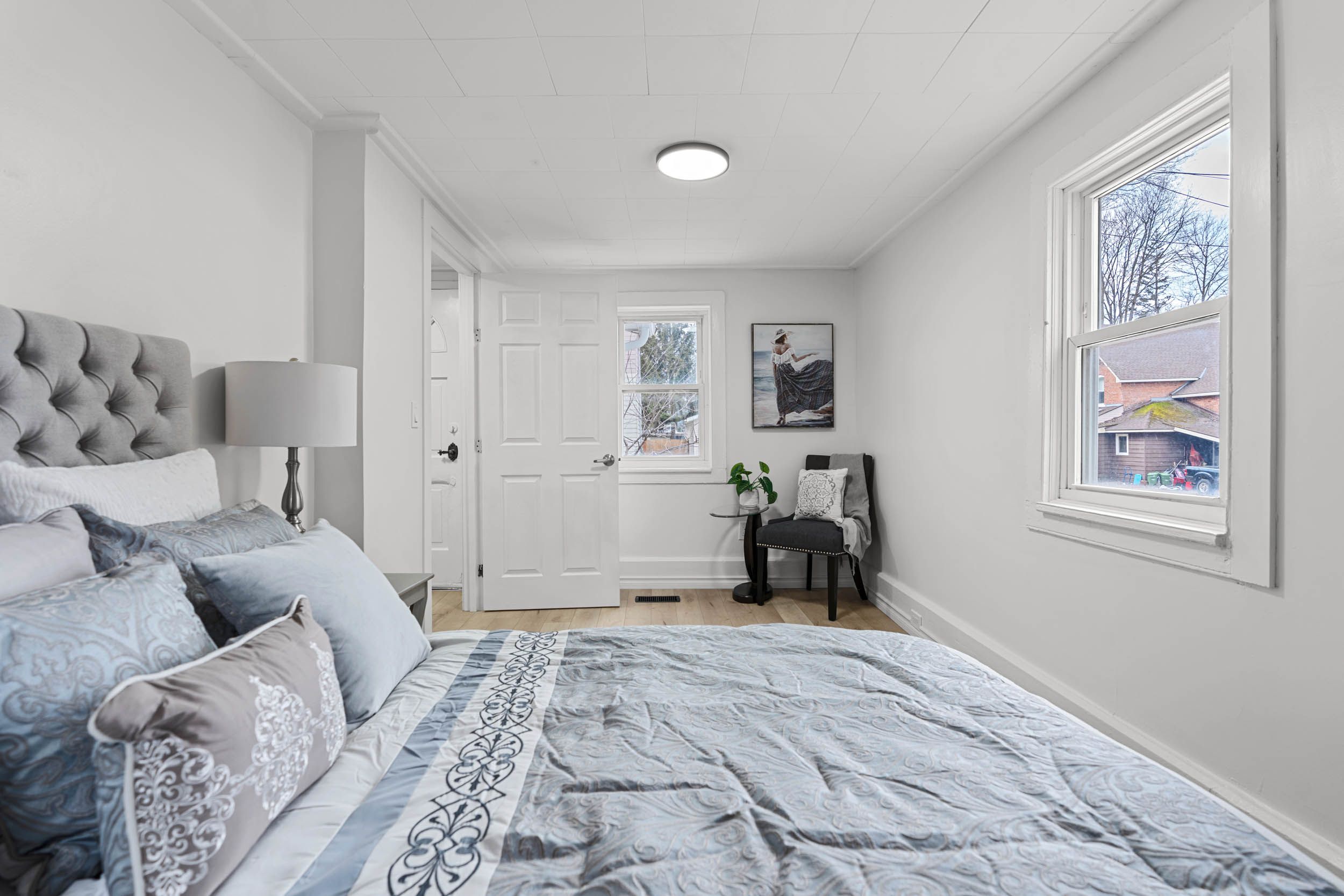 Finding a move-in ready, detached home with three bedrooms for $300,000 in owen sound is no easy feat-but this one delivers. Tucked away on a quiet dead-end street with the niagara escarpment as your backdrop, this charming home offers the perfect blend of privacy, comfort, and affordability. Surrounded by mature trees, the property creates a peaceful setting you'll love year-round-especially in the summer months when the backyard becomes your own private retreat, complete with a shed and cozy sitting area. Step inside to a bright, welcoming interior featuring updated flooring, fresh paint, modern countertops, and some new appliances. The main floor offers a functional layout with a spacious living room at the heart of the home, an eat-in kitchen, and a convenient 4-piece bathroom. The primary bedroom is located on the main level, while two additional bedrooms upstairs provide flexibility for family, guests, or a home office. With main floor laundry room offering direct access to the backyard. The standout feature of this home is the bright and inviting three-season sunroom-perfect for storing boots and jackets in the winter and enjoying a quiet morning coffee in the warmer months - it's the perfect additional living space. If you've been searching for an affordable alternative to condos or townhomes without sacrificing space or privacy, this detached home is an opportunity you won't want to miss!