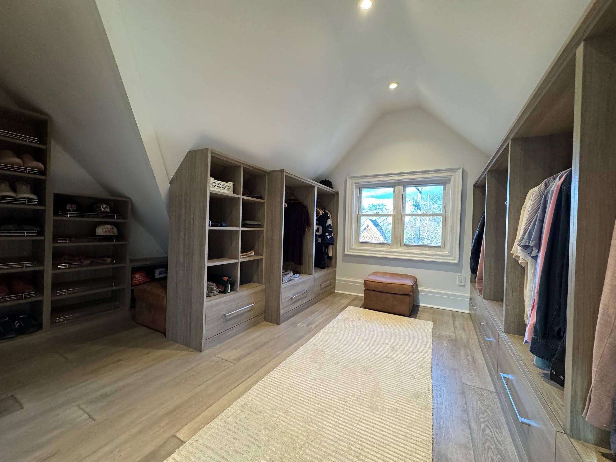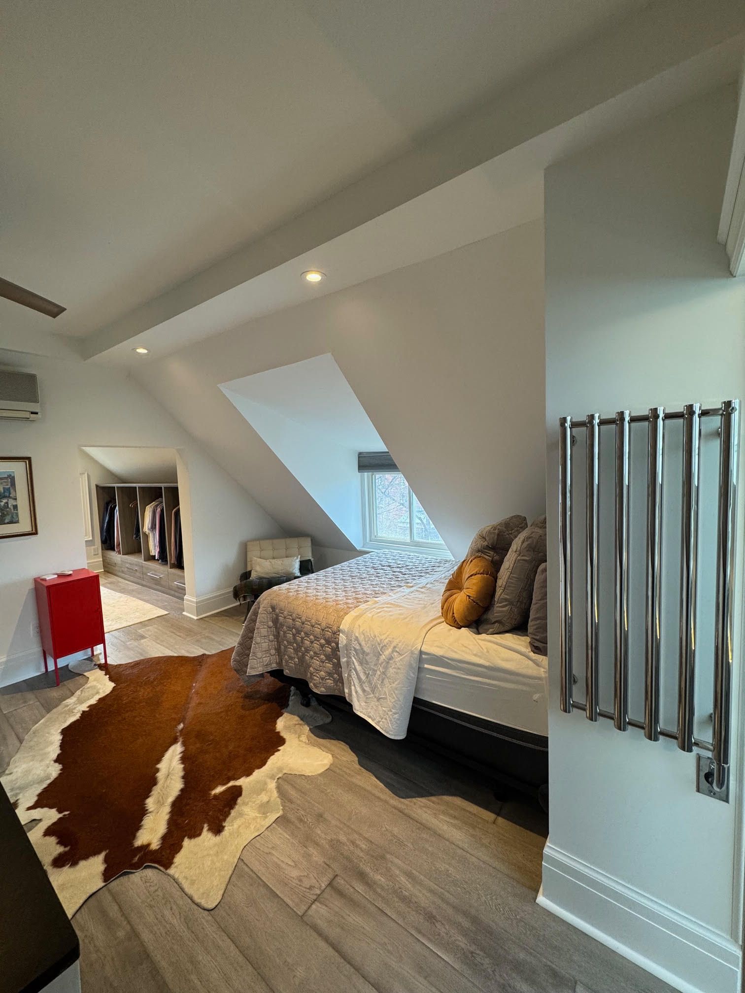 • Luxurious primary suite featuring a large walk-in closet and skyline views.