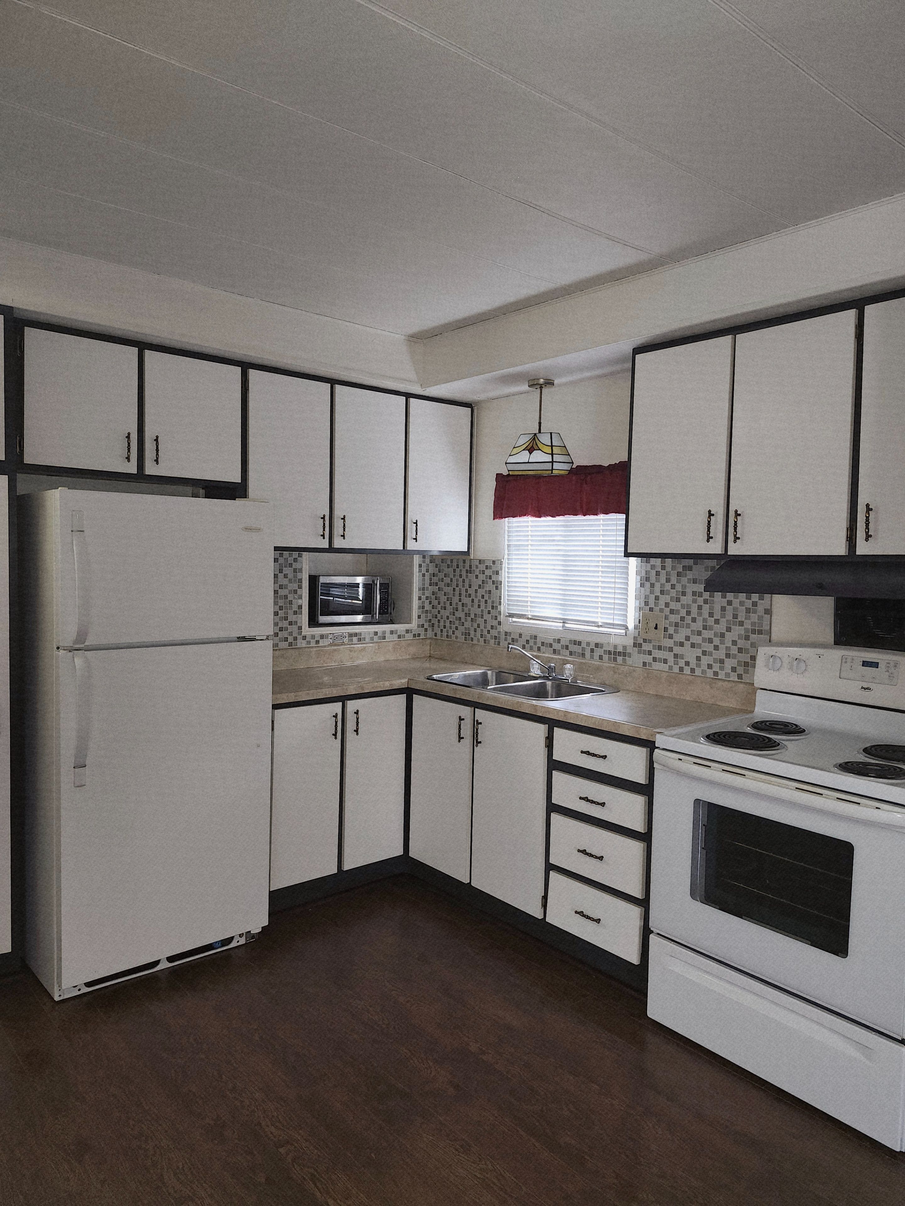 Welcome to all year round living . This well-maintained modular home located in the golden horseshoe estates in the heart of wine country, close to highway, wineries and the amenities of beamsville. You have 2 bed, 1 bath , a spacious entry that leads to an enclosed sunroom. Entering the home you are greeted by large open concept living and dining area, in-suite laundry, and plenty of storage space. Updates include roof(2016), deck(2021), patio door(2021) engineered hardwood flooring(2016) carpet(2016) owned hot water heater(2021). All that is left to do is move in and enjoy ! Stress free living no rear neighbors. Easy one floor living in new siding 2025 taxes are included in the fees.
