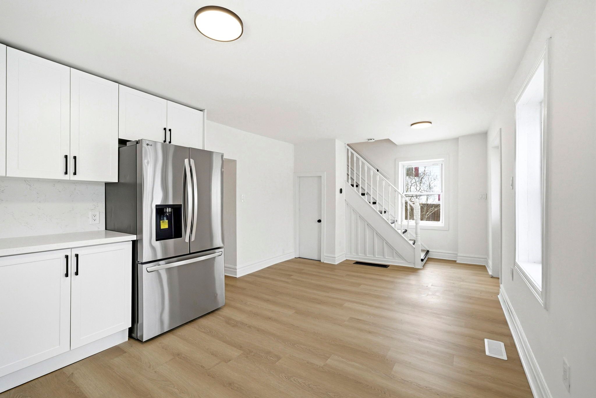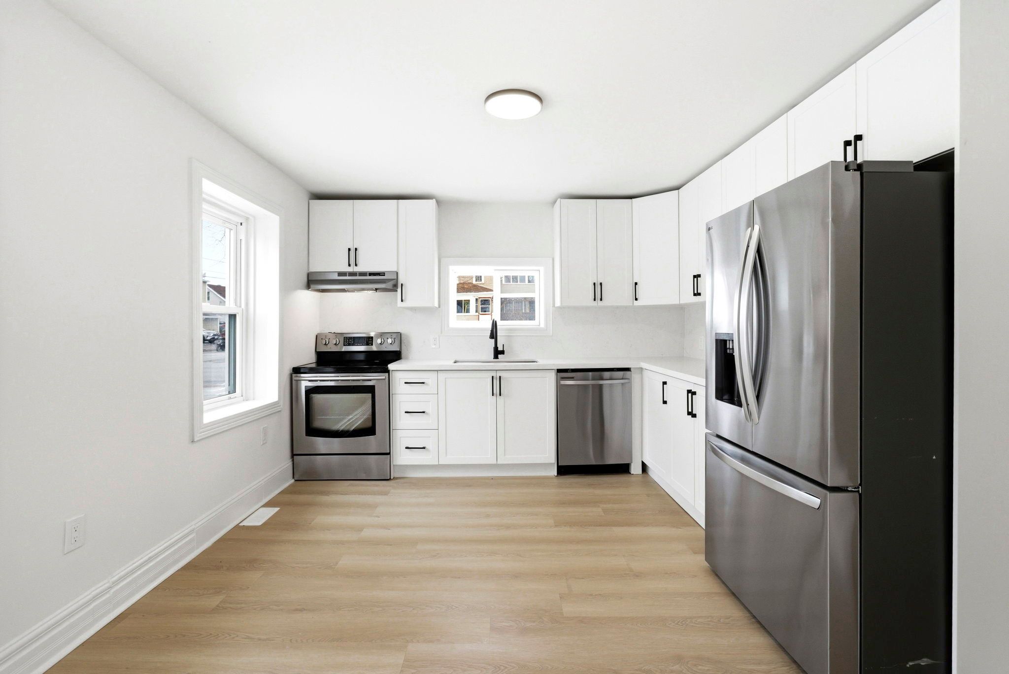 • Refreshed interior with new flooring, kitchen, and appliances.