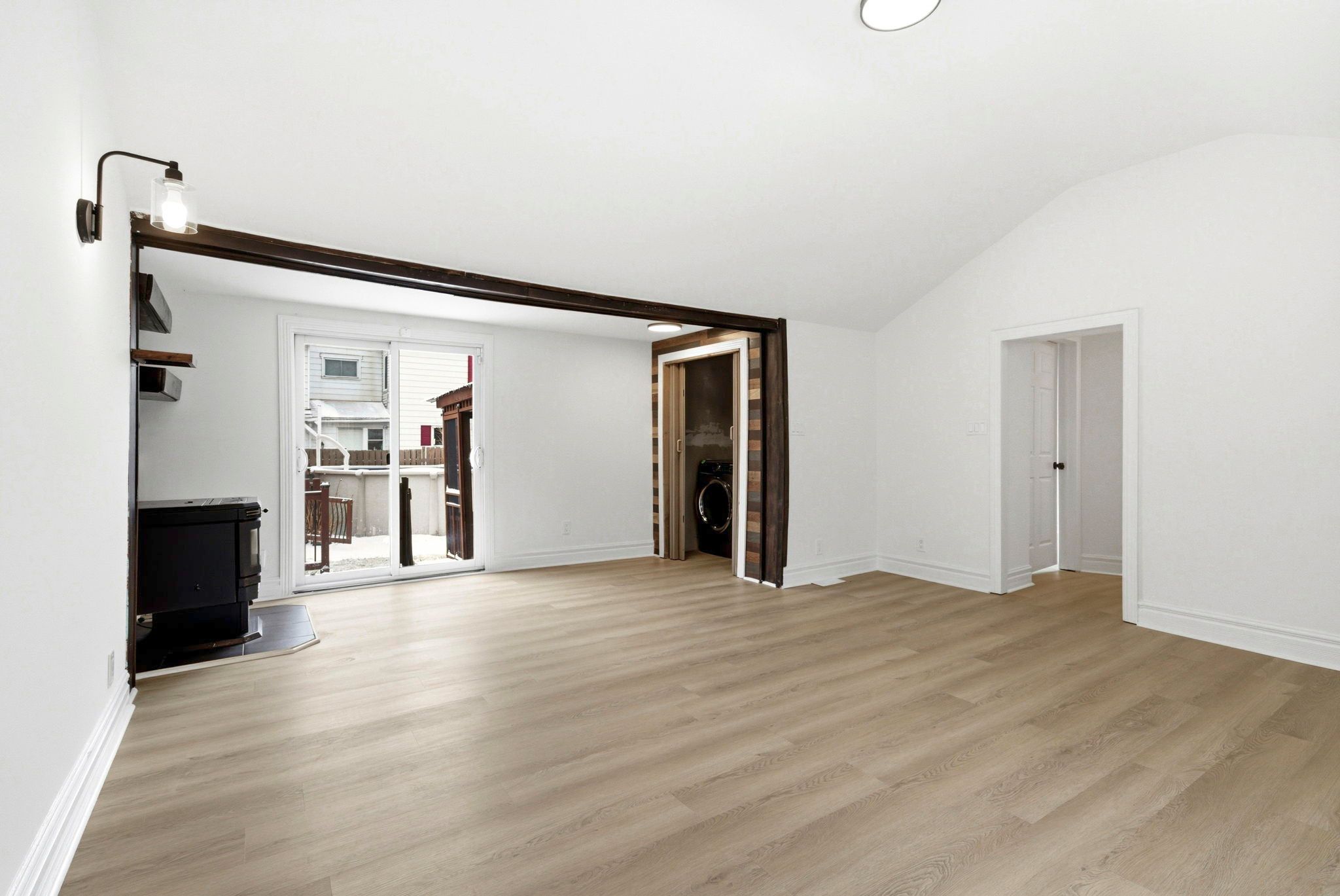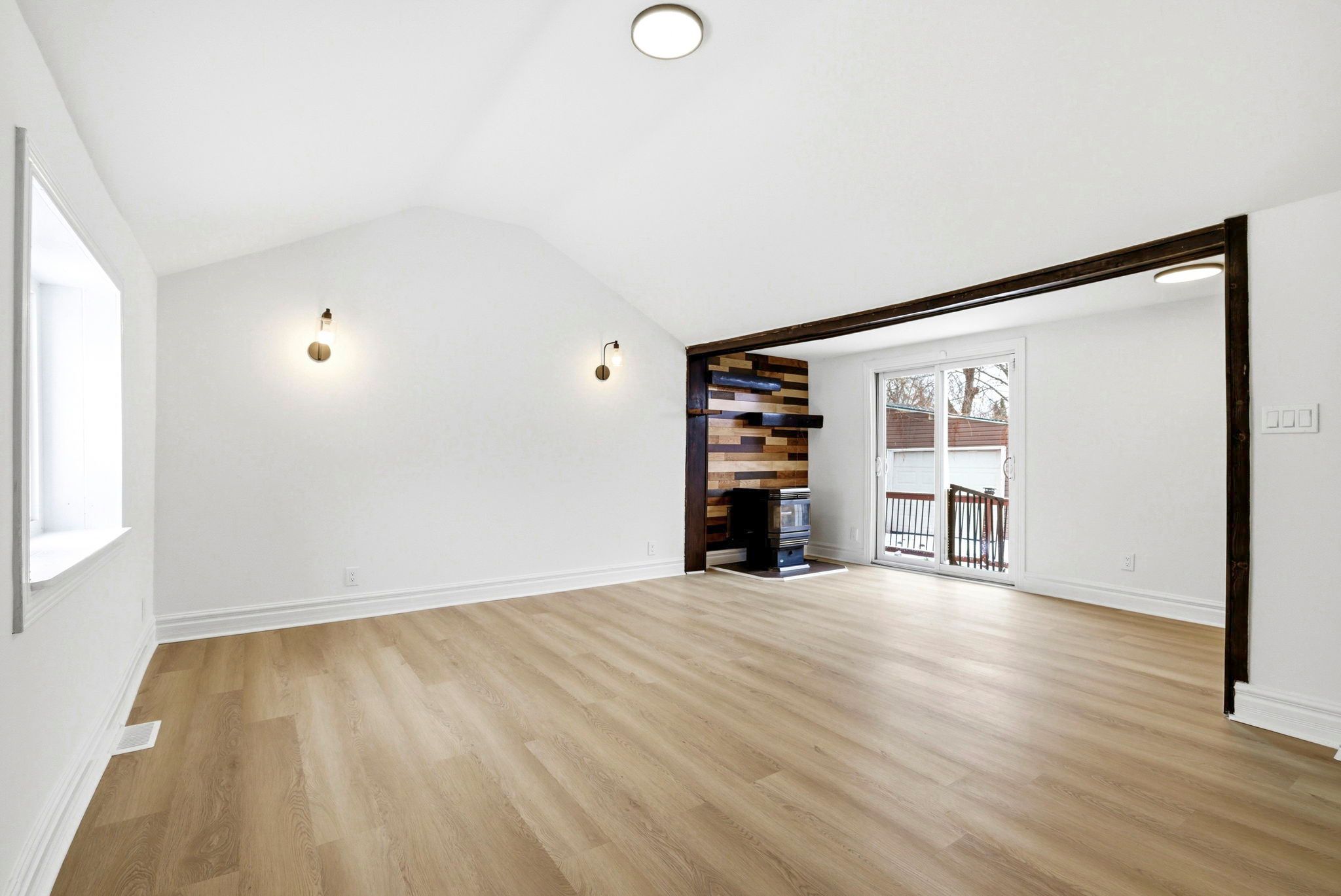 • Cozy living room features a pellet stove for winter comfort.