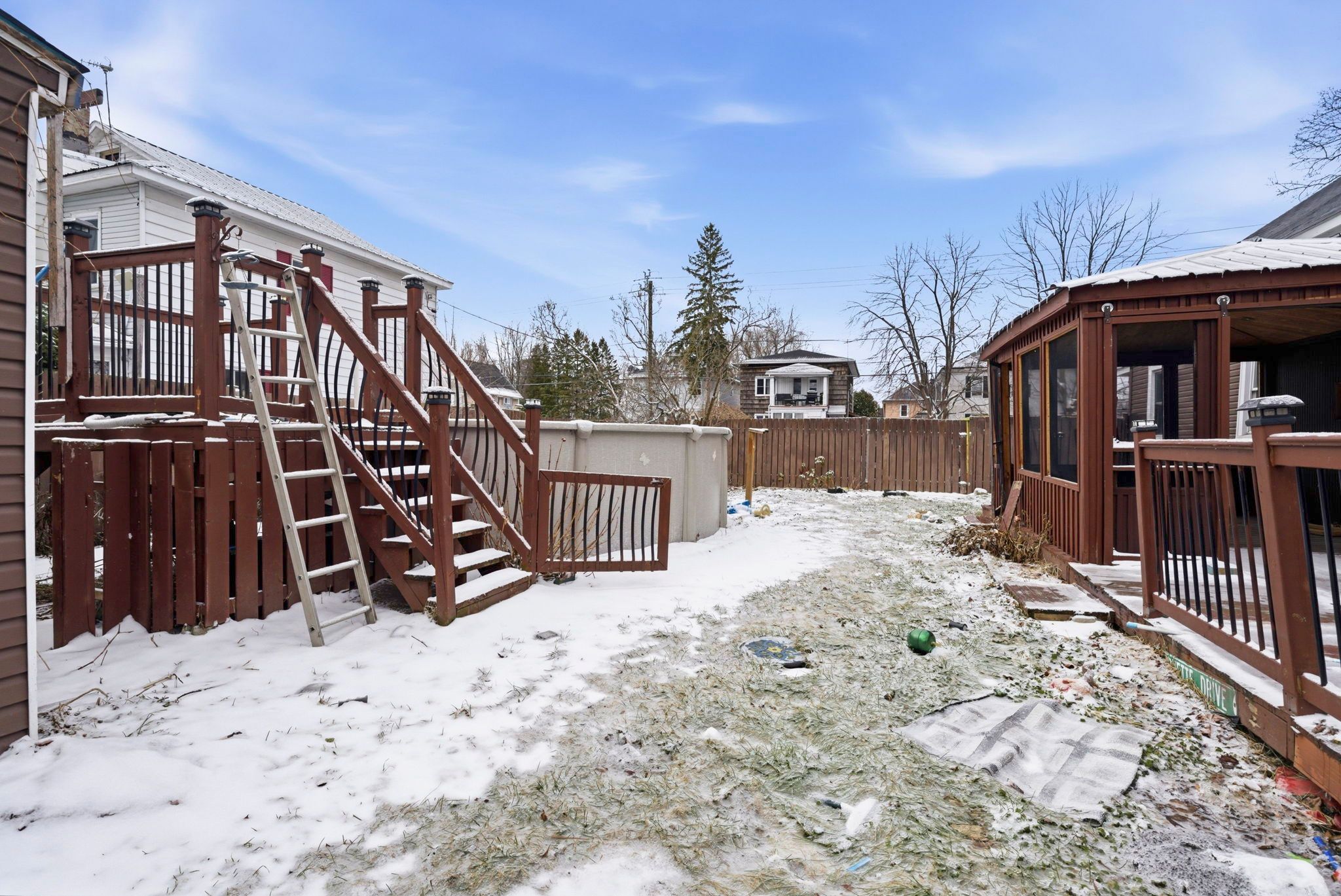 • Above-ground pool and large deck for summer fun.