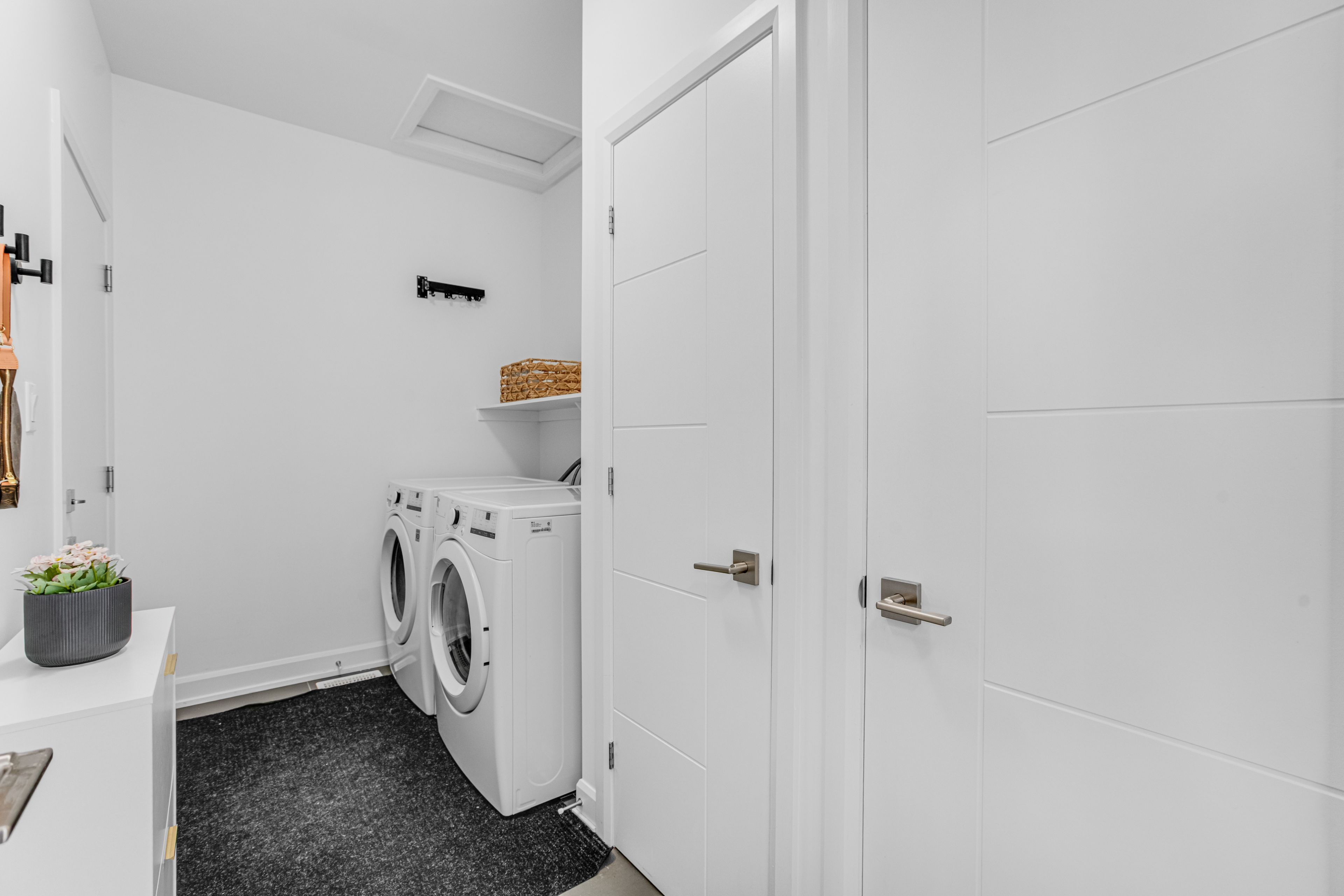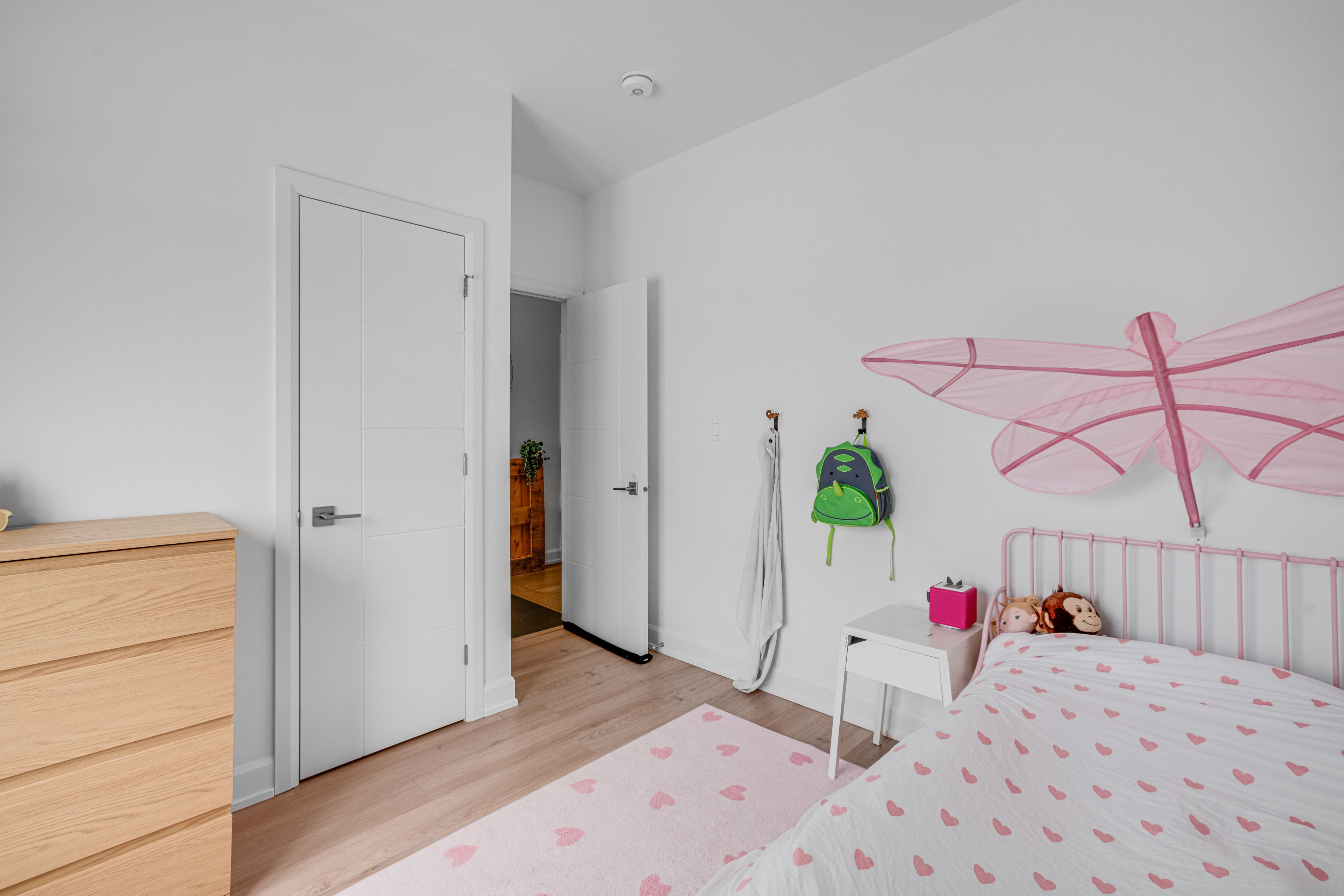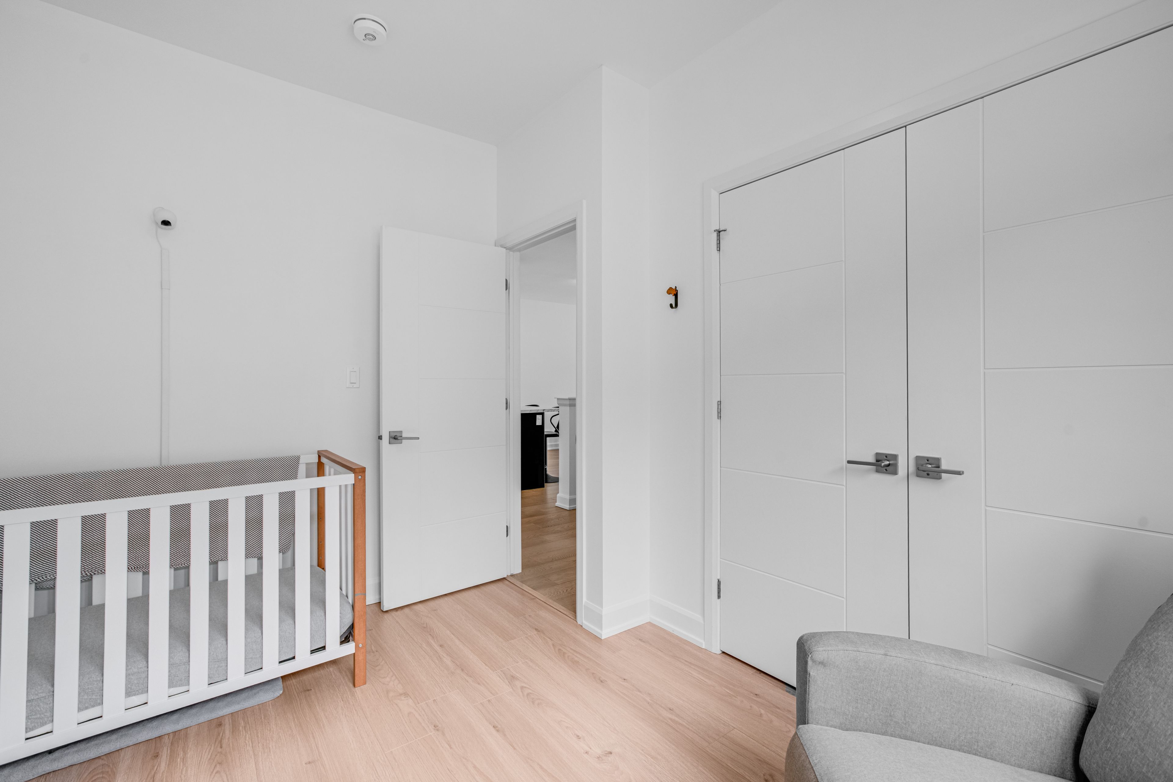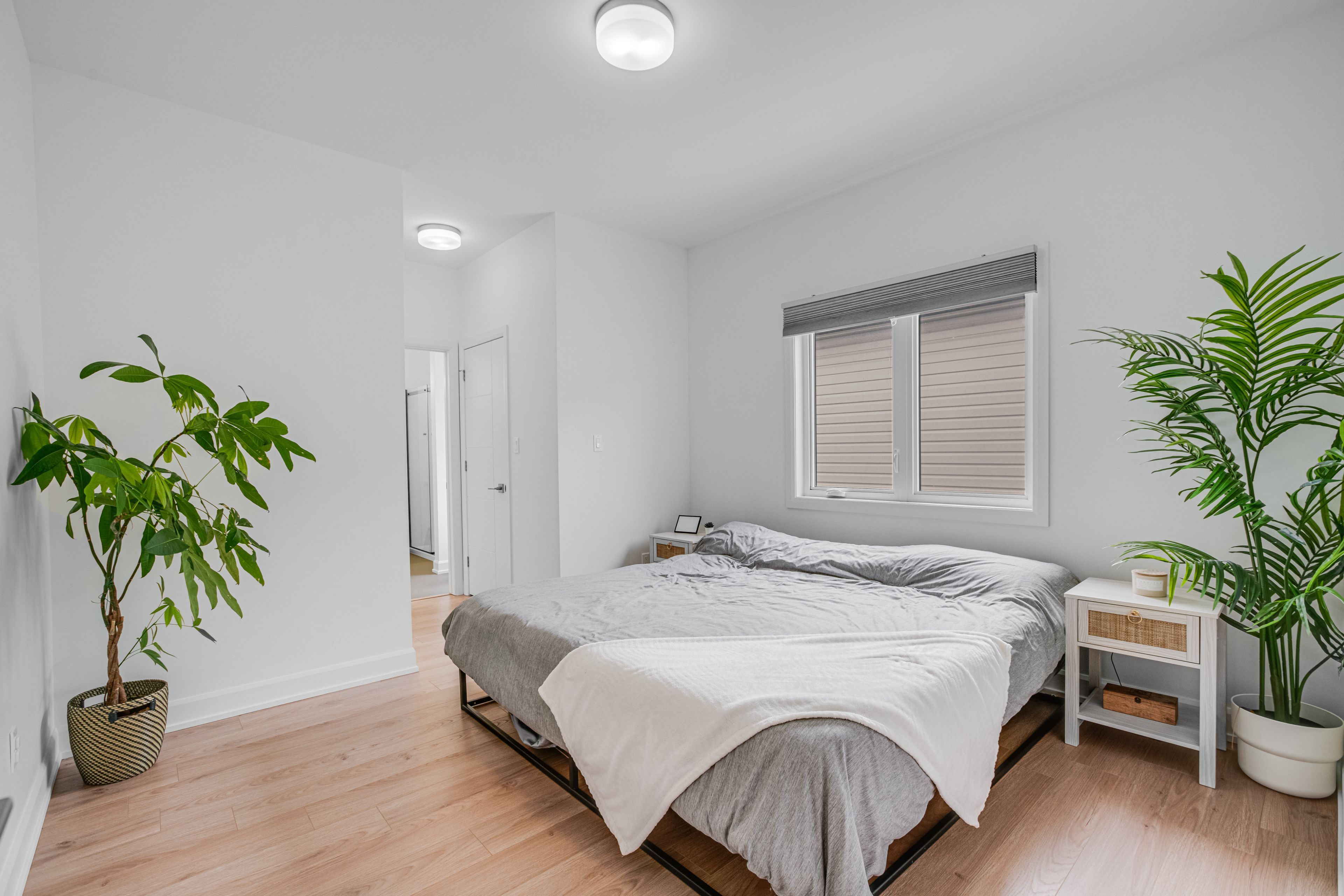 • Bright living area with 9-foot ceilings and engineered hardwood flooring.