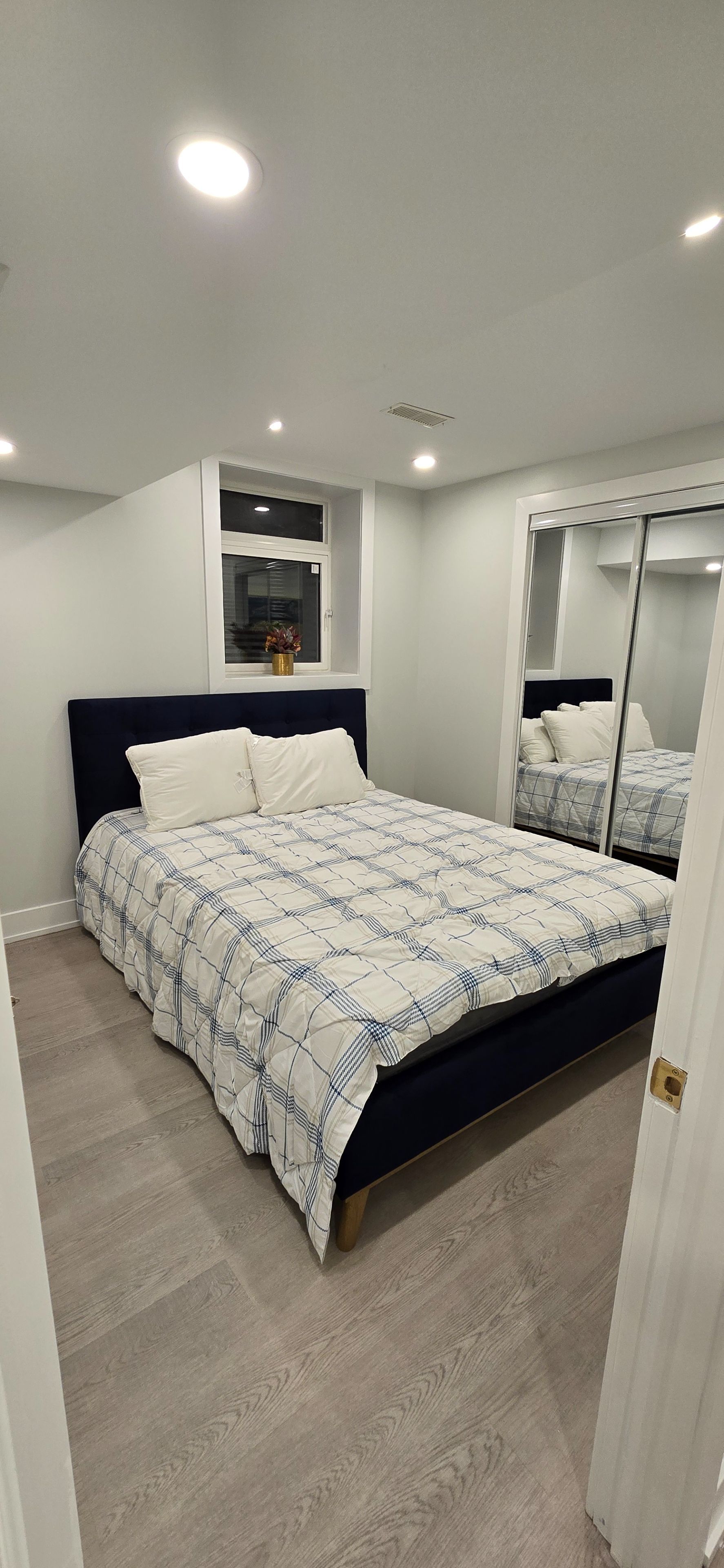Newly renovated legal basement apartment 1bed 1bath with insuite laundary and big kitchen. Fully furnished with 1 year old queen size bed3 seat leather sofa,single seat leather chair, coffee table,office table, office chair, two chair dining table, fridge, stove, dishwasher,microwave and vacuum cleaner. Absolute move in condition approximately 600-700 sqft space. Parking is on-street. Permit need to purchase from town of oakville (it is approximately $55/month/vehicle