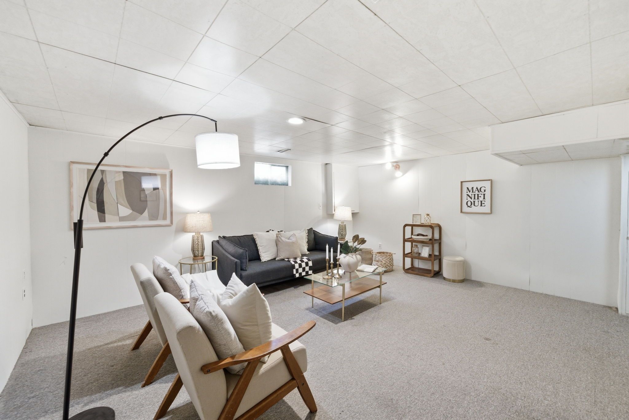 • Finished basement with recreation room, laundry, and extra storage.