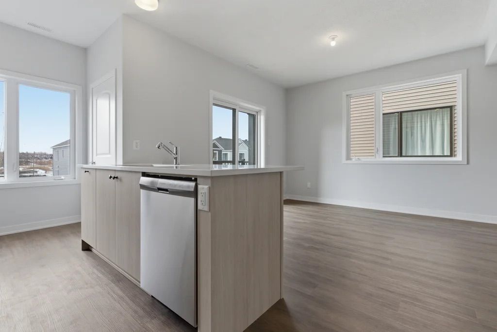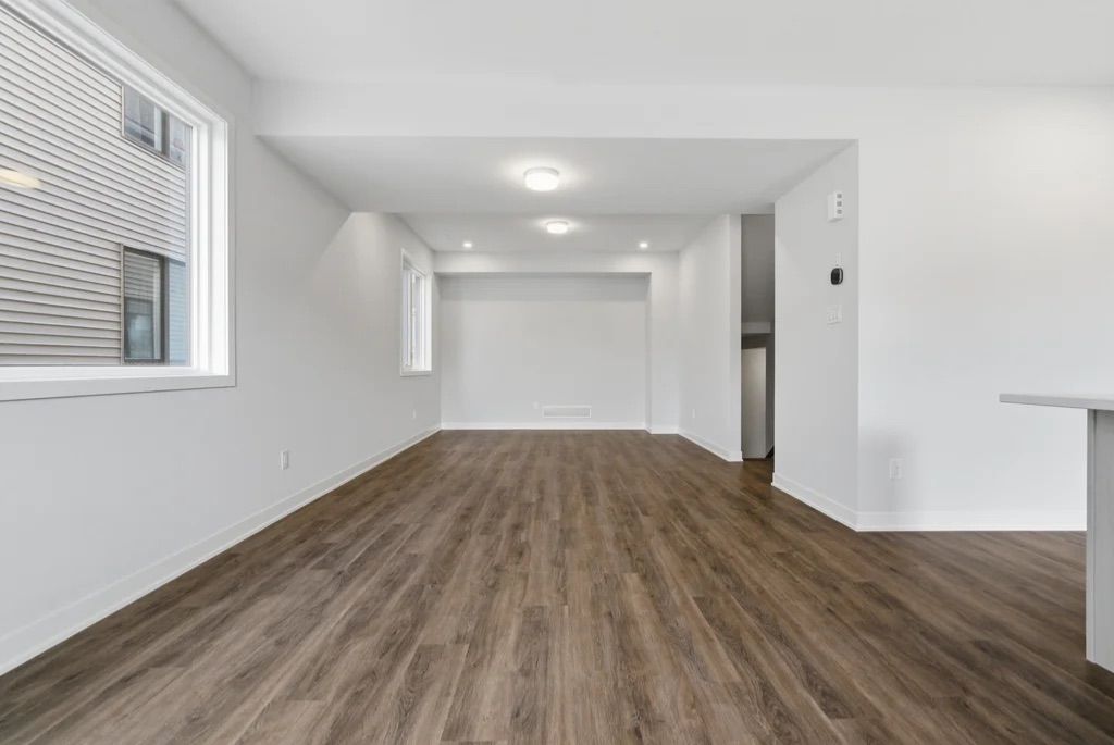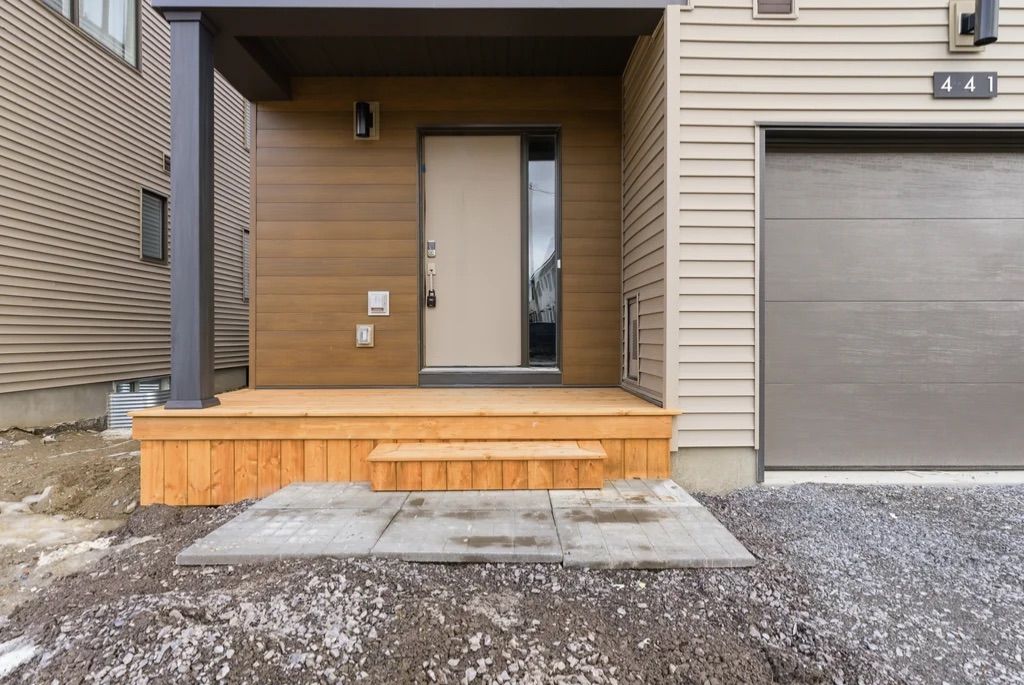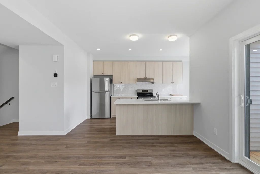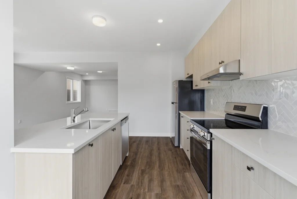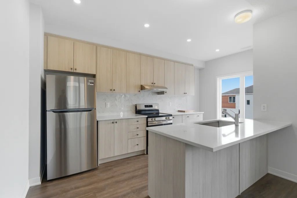 This brand-new three-storey end-unit townhouse located in the highly sought-after kanata north area. Designed with modern finishes and a smart, functional layout, this bright home offers 4 bedrooms and 3. 5 bathrooms along with abundant natural light throughout. The main level includes a versatile guest suite with a full bathroom, perfect for visitors, extended family, or a private home office. On the second floor, enjoy a spacious open-concept living and dining area that flows seamlessly to a private balcony, creating a comfortable space for relaxing or entertaining. The upgraded kitchen features stainless steel appliances, generous cabinet storage, a pantry, and elegant quartz countertops. Durable vinyl flooring enhances all three floors. The third floor includes three well-sized bedrooms, a main bathroom, a laundry area with washer and dryer, and a primary bedroom with its own ensuite bath. Additional basement space provides plenty of storage. As an end unit, the home benefits from extra windows, increased natural light, and enhanced curb appeal compared with interior units. Conveniently located just minutes from march road, highway 417, top-rated schools, grocery stores, parks, and trails, and close to kanata's major tech employers. Bonus: no hot water tank rental.