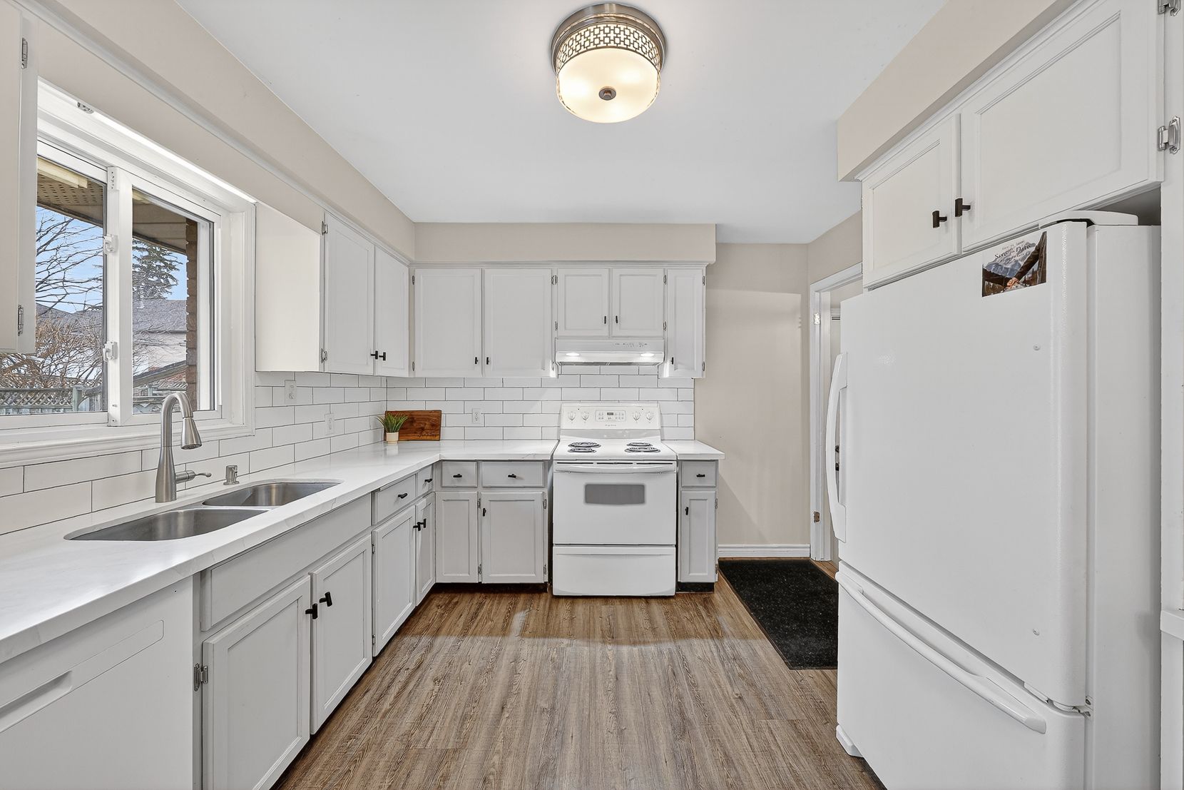 If you have been waiting for a bungalow with real space, a smart layout, and flexibility for the way people actually live, this one is worth a closer look. From the moment you step inside, the main floor feels bright, welcoming, and easy to enjoy, with a sun filled living room, large front windows, and the kind of flow that works beautifully for both quiet evenings and busy everyday life. The dining area is ready for everything from weeknight dinners to holiday meals, while the updated kitchen offers crisp cabinetry, modern finishes, great prep space, and patio door access to the backyard for summer barbecues, morning coffee, or simply letting life spill outdoors. Down the hall, you will find three well sized bedrooms, a beautifully updated 4 piece bath with double vanity, and the convenience of main floor laundry right where it matters most. The lower level adds a whole extra layer of function to this home, with a spacious rec room that can handle movie nights, games, a home gym, office space, or a teen hangout, plus an additional lower level room currently used as a bedroom, a second full 4 piece bath, and generous storage space for all the extras real life comes with. Lower level bedroom designation is based on current use, and egress conformity may not be represented. Whether you are upsizing, accommodating guests, exploring multi generational living, or ready to downsize from a 2 storey without giving up space, this property delivers. The finishes feel fresh, the layout is practical, and the overall feel is warm, functional, and move in ready. Set in an established neighbourhood close to schools, parks, shopping, and everyday amenities, this is the kind of home that makes it easy to picture your next chapter. Some properties offer square footage. This one offers how you want to live. Room to gather, room to spread out, and room to grow, all wrapped into a bungalow that feels like home the minute you walk in. A smart fit for families, guests, and changing needs.