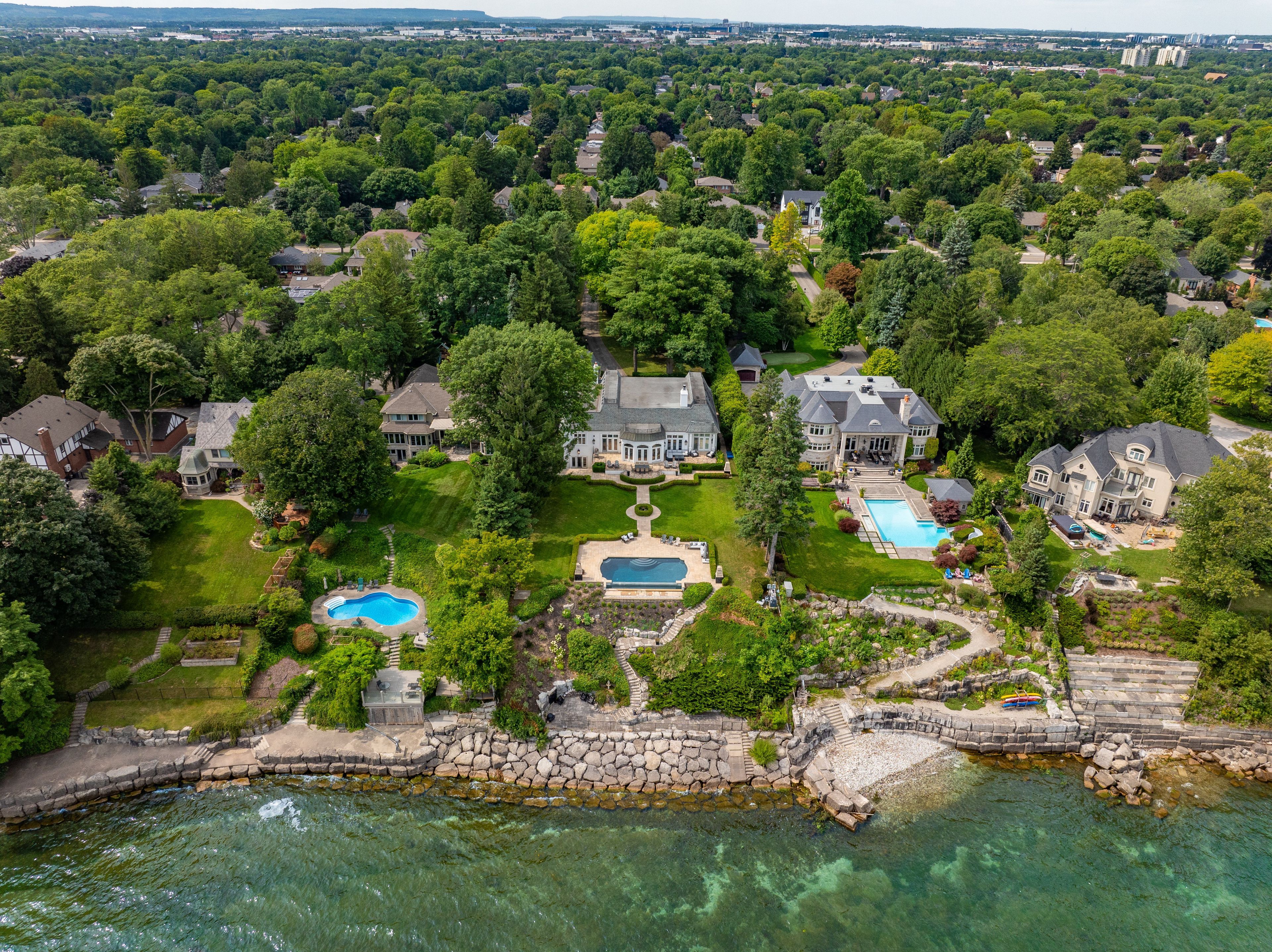 Welcome to 4410 lakeshore road, a stunning 1. 2-acre lakefront estate in burlington's sought-after shoreacres neighbourhood. This custom-built bungalow offers 5 bedrooms (3 on the main level, 2 on the lower level) and 4 bathrooms, with 4,365 sq. Ft. Of living space on the main floor alone. Inside, you'll find 12-foot ceilings, detailed crown mouldings, and an elegant yet inviting layout. The expansive great room and chef's kitchen are perfect for entertaining, while the main-floor primary suite provides stunning lake views. The walk-up lower level features a second kitchen, spacious recreation room, and additional bedrooms-ideal for guests or multigenerational living. Step outside to your private oasis: a sparkling inground pool, lush landscaping, and direct access to lake ontario, perfect for serene mornings and captivating sunsets. With a detached 2-car garage and parking for 30+, this property offers the ultimate in both luxury and practicality. Located near top-rated schools, parks, and upscale amenities, this exclusive estate combines privacy with convenience in one of burlington's finest communities. Luxury certified.