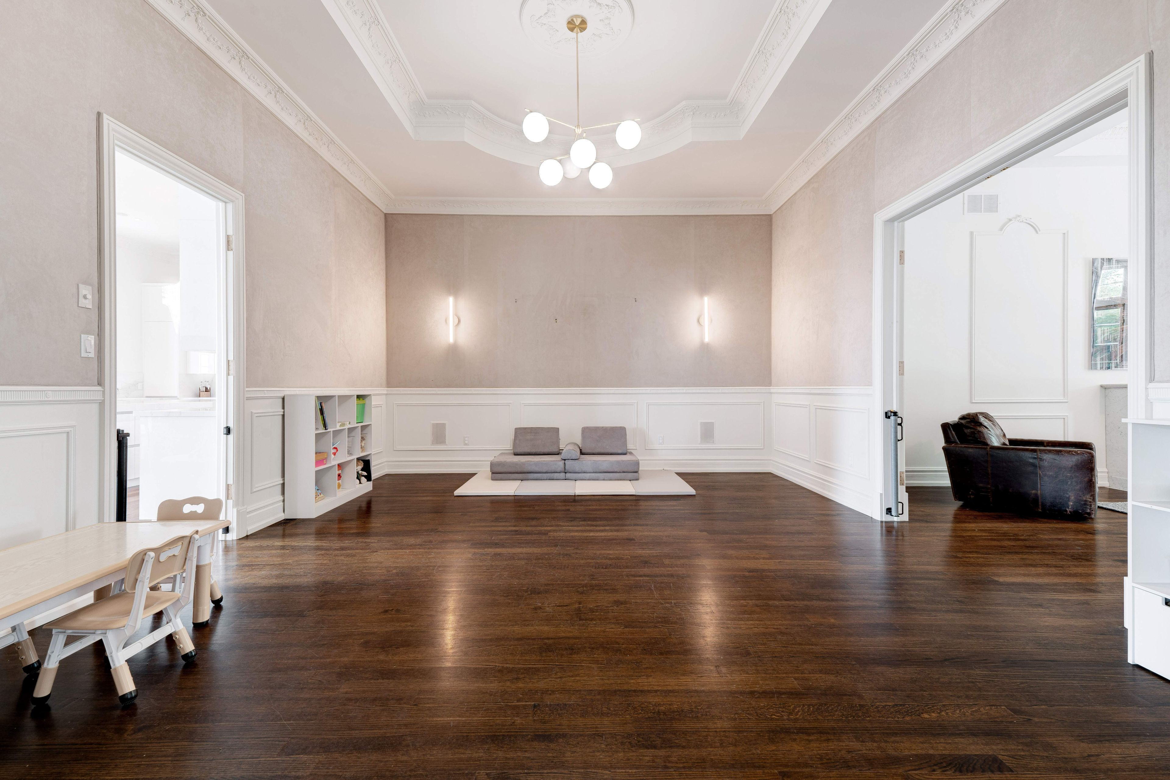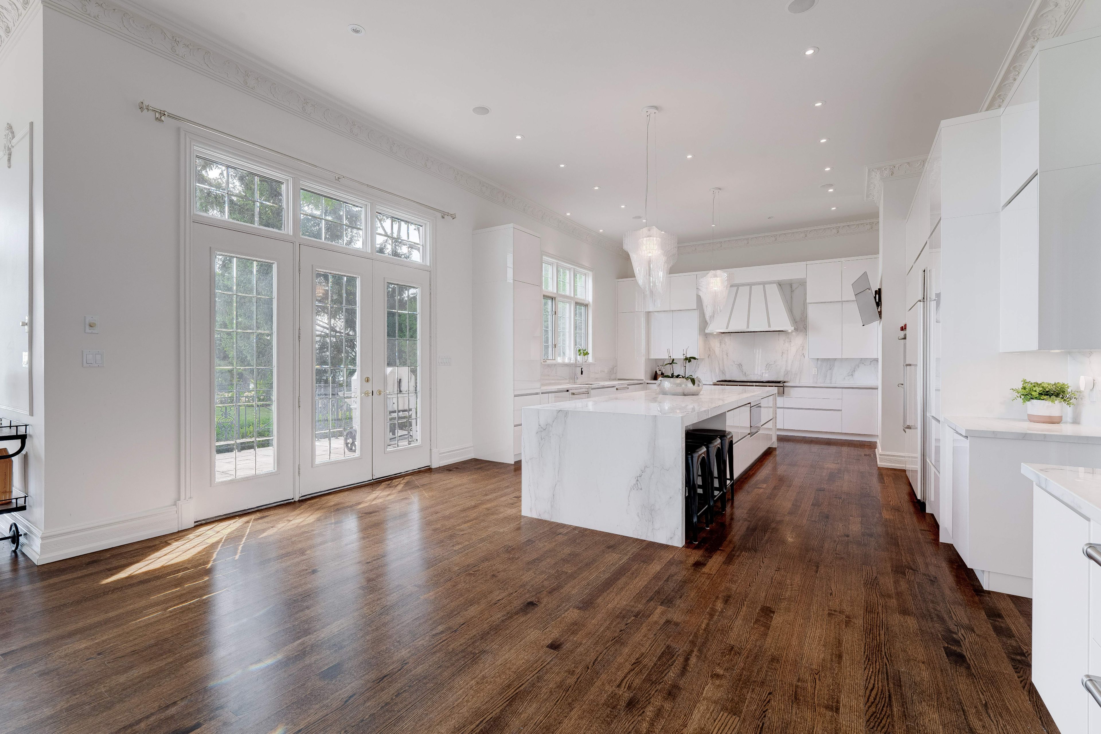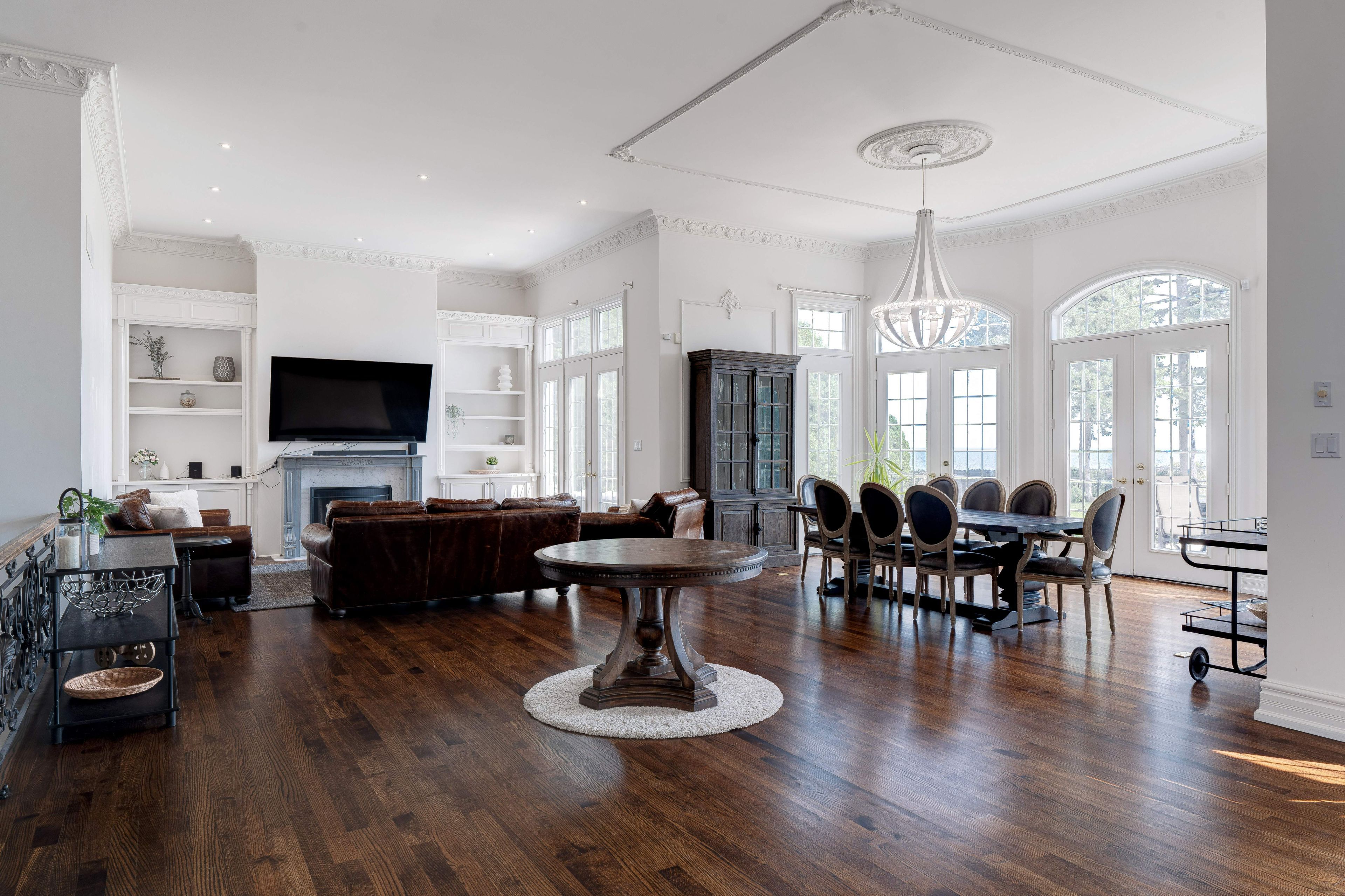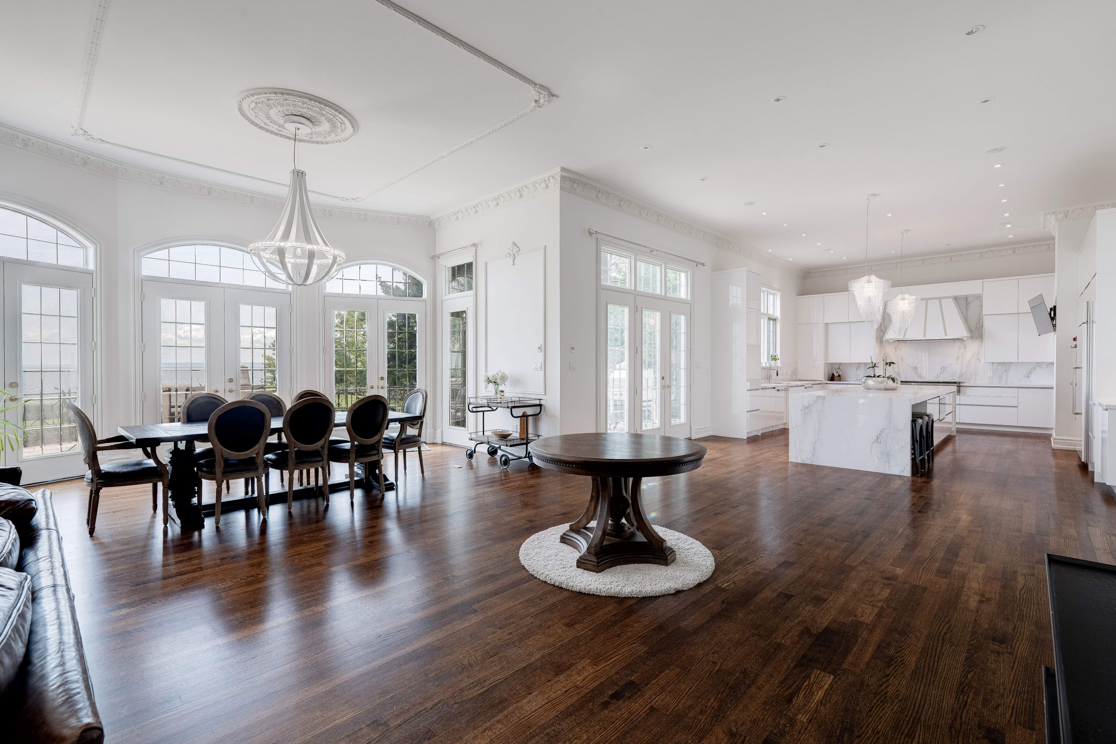 • Elegant layout featuring 12-foot ceilings and detailed crown mouldings.