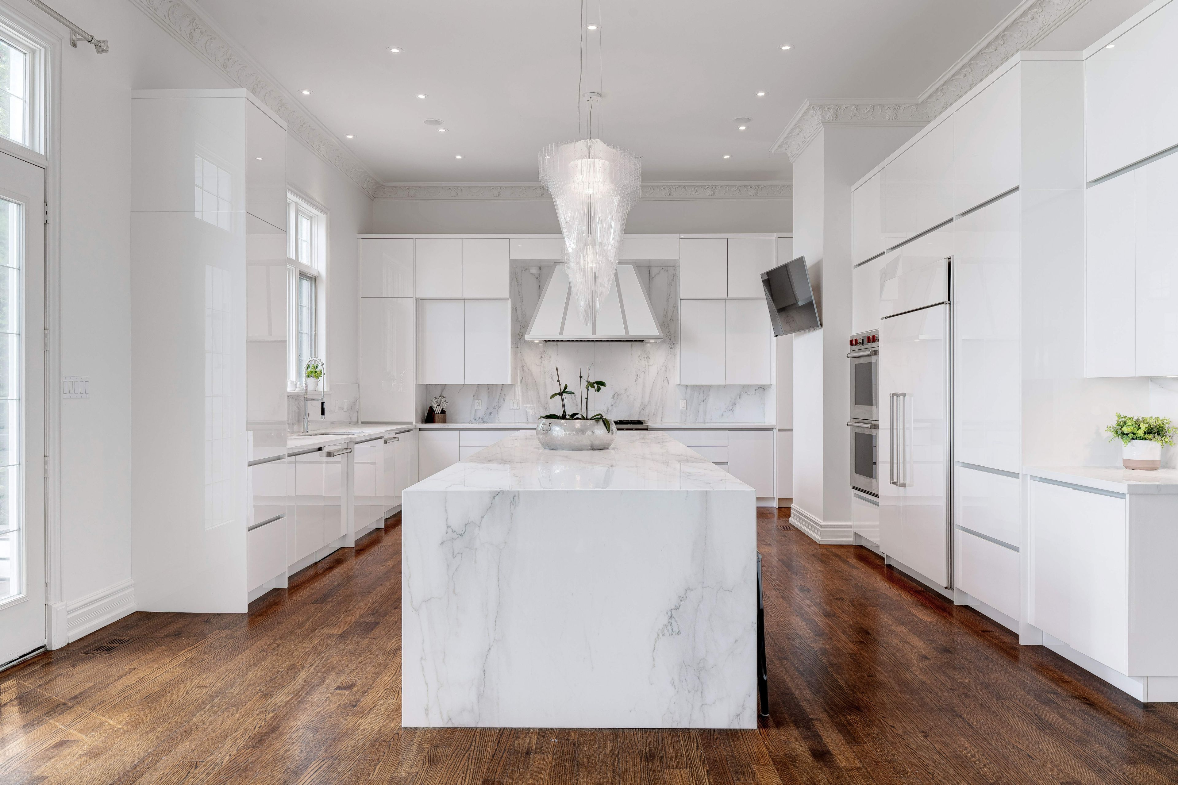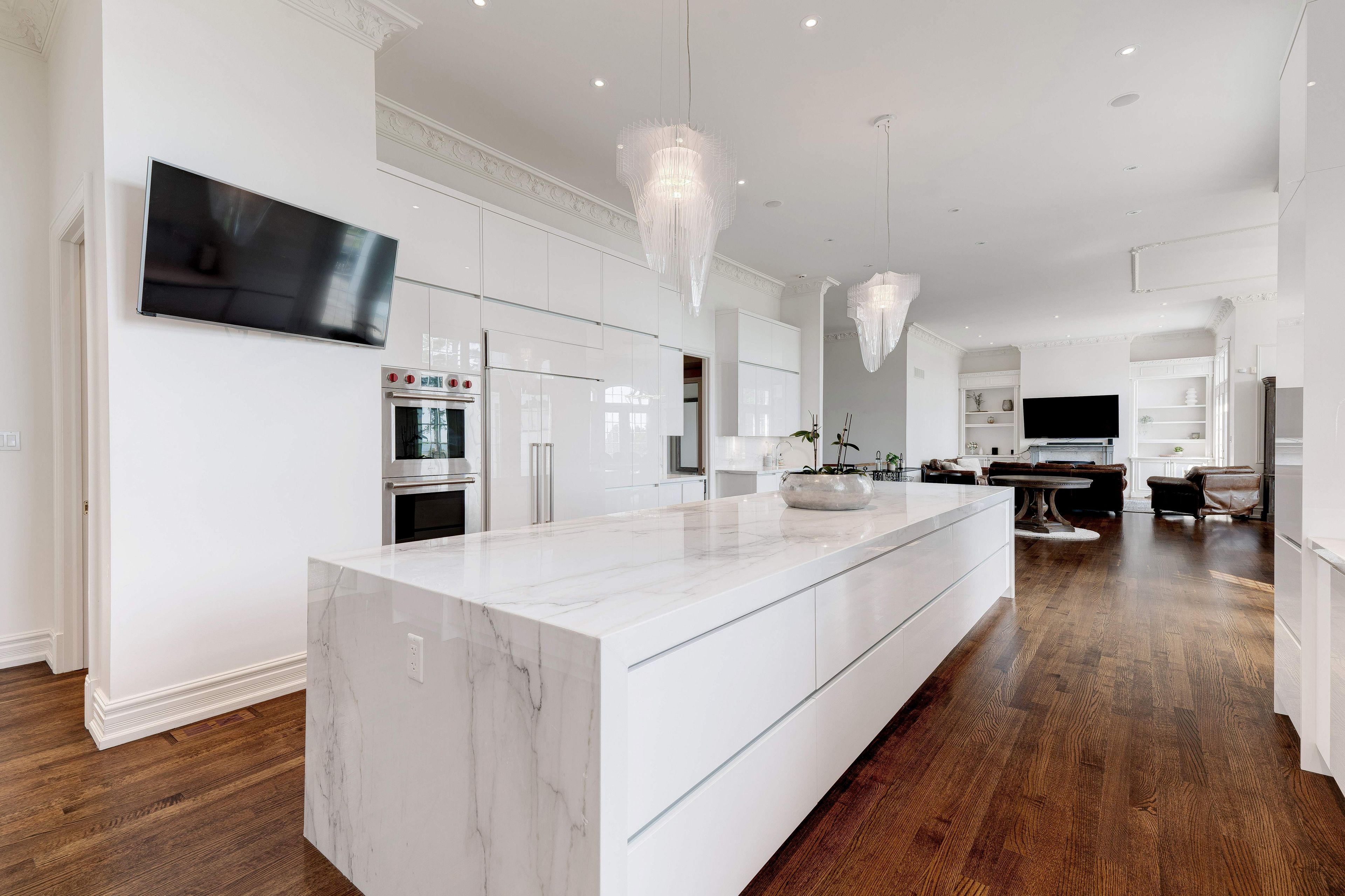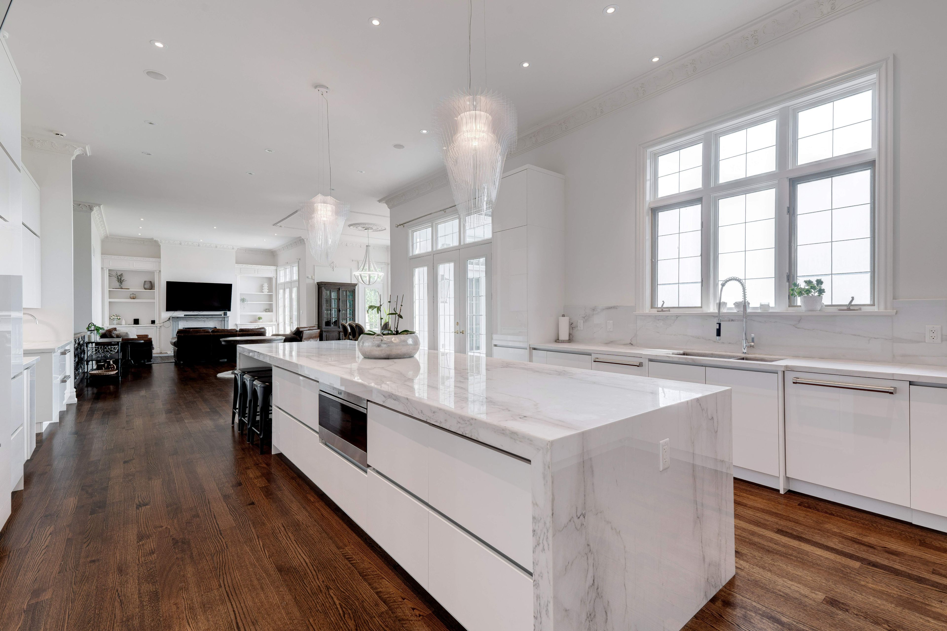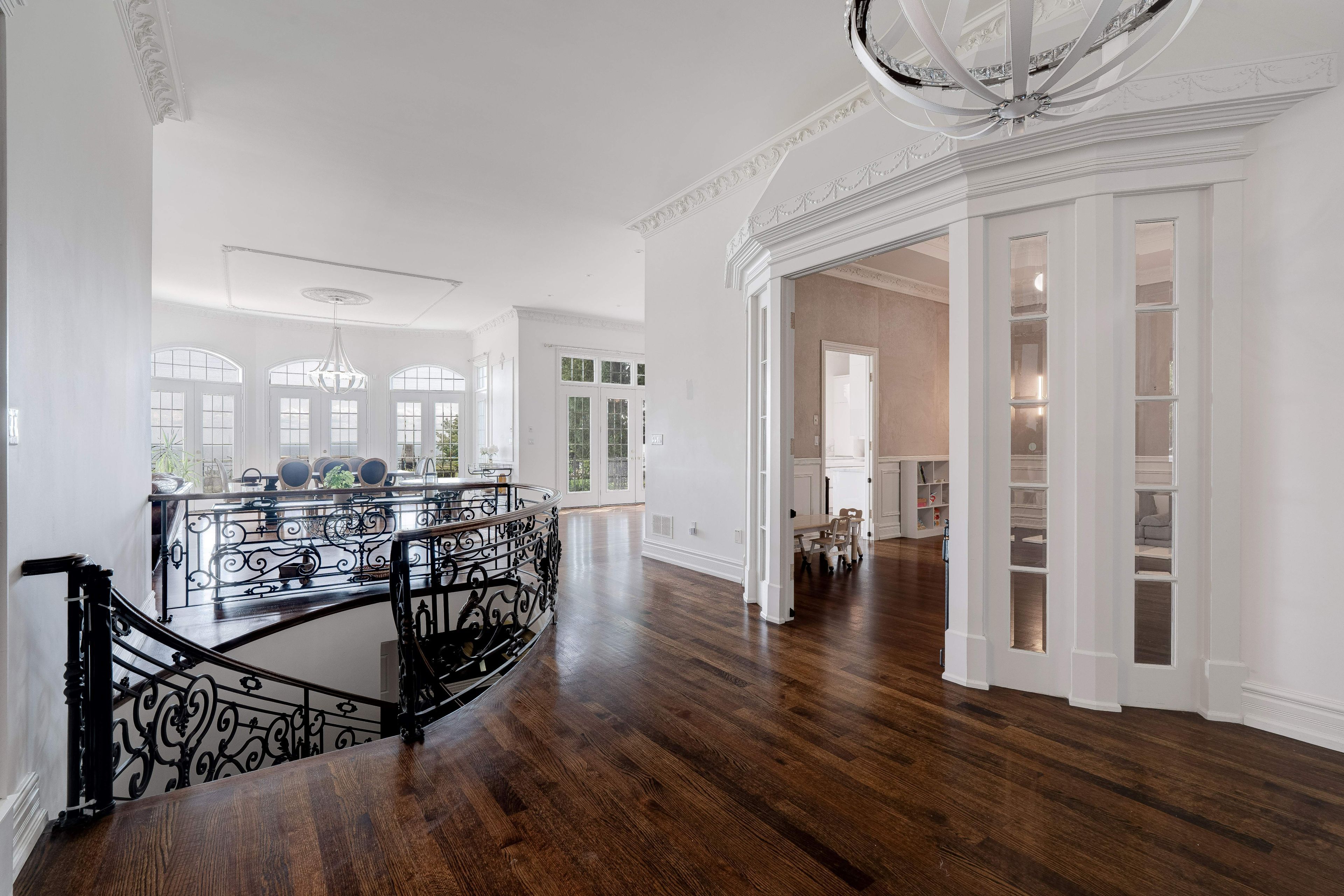 • Elegant layout featuring 12-foot ceilings and detailed crown mouldings.