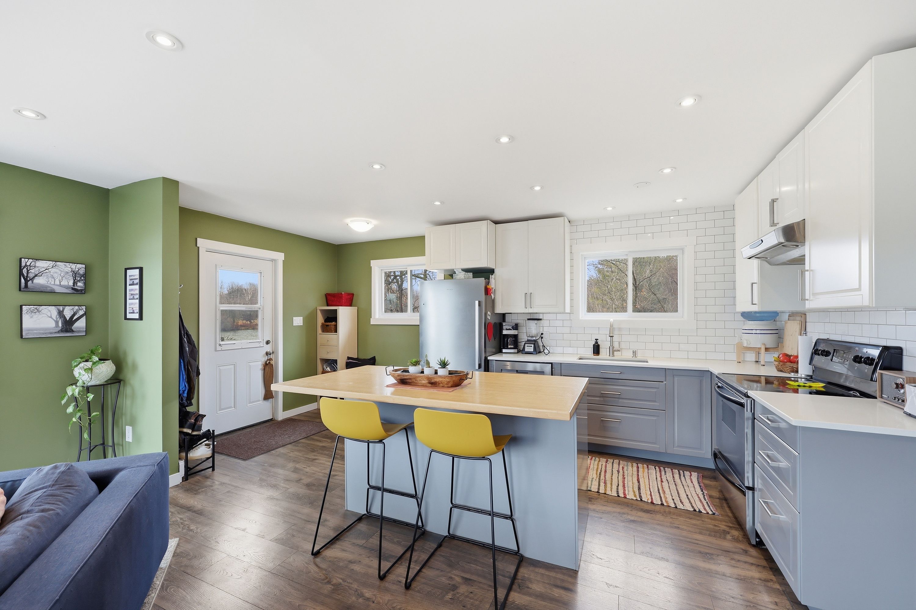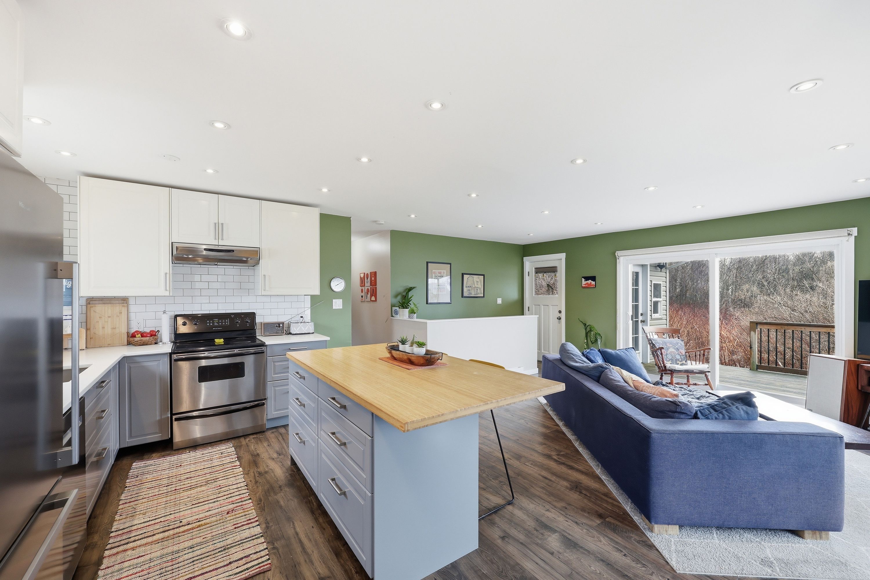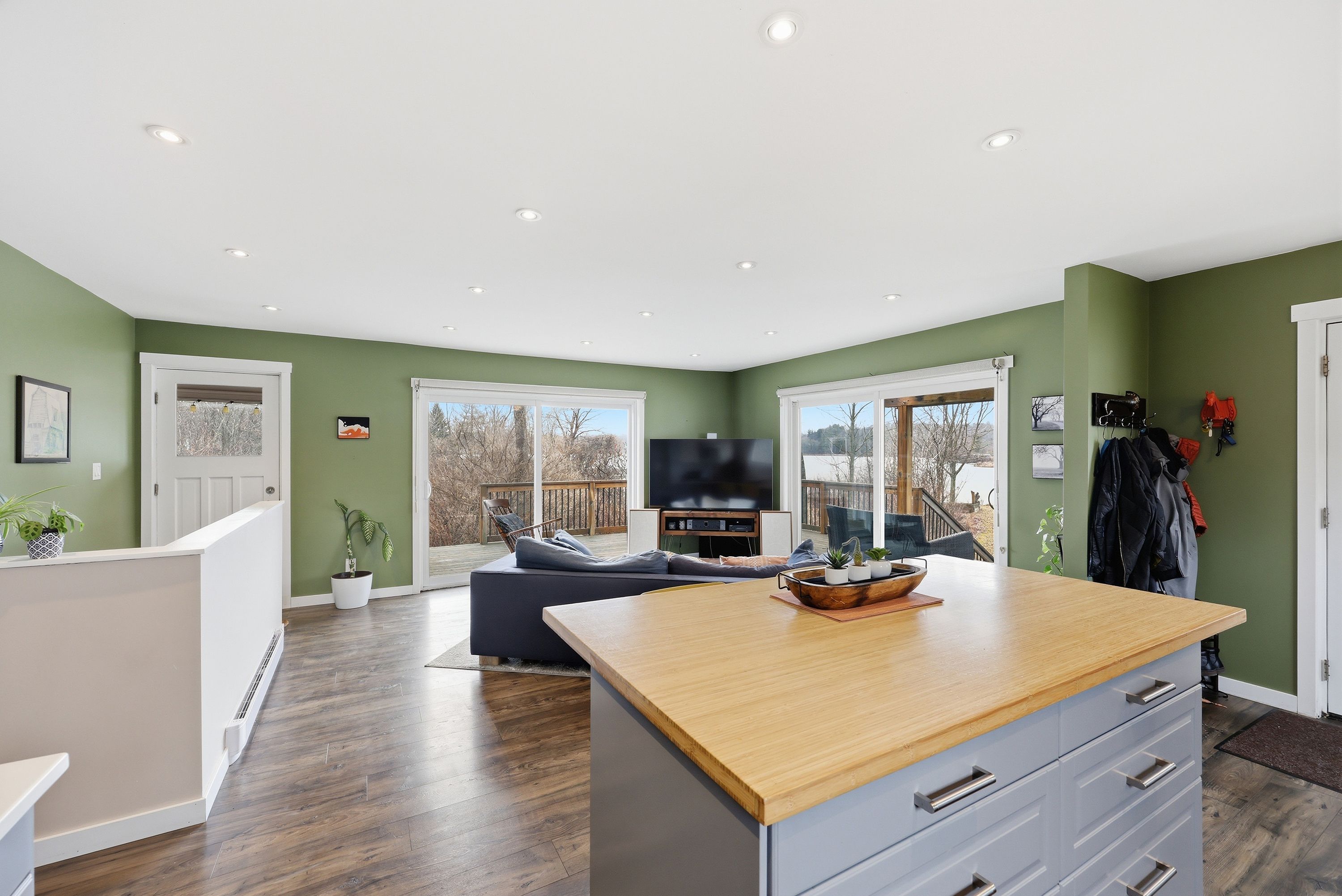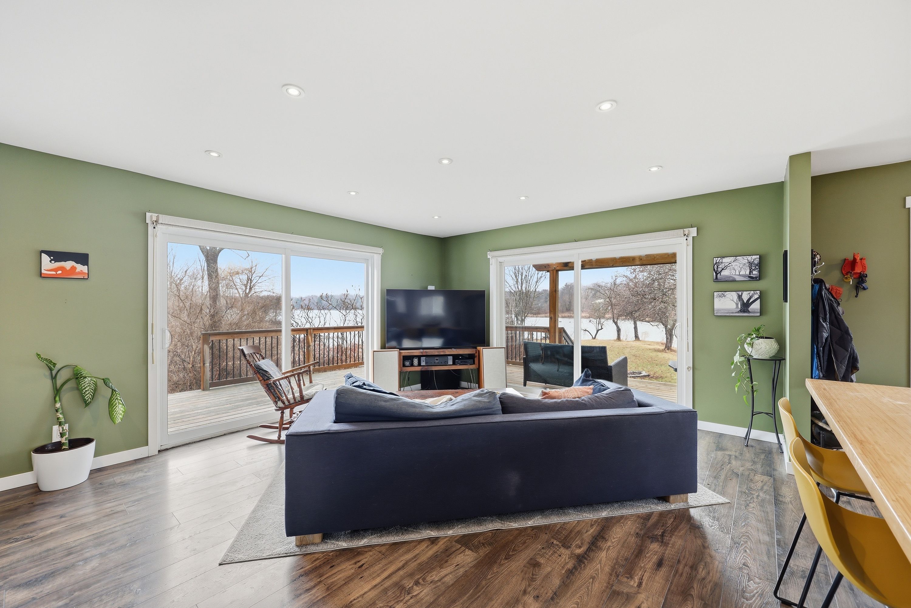 • Bright, open-concept layout with large patio doors for natural light.