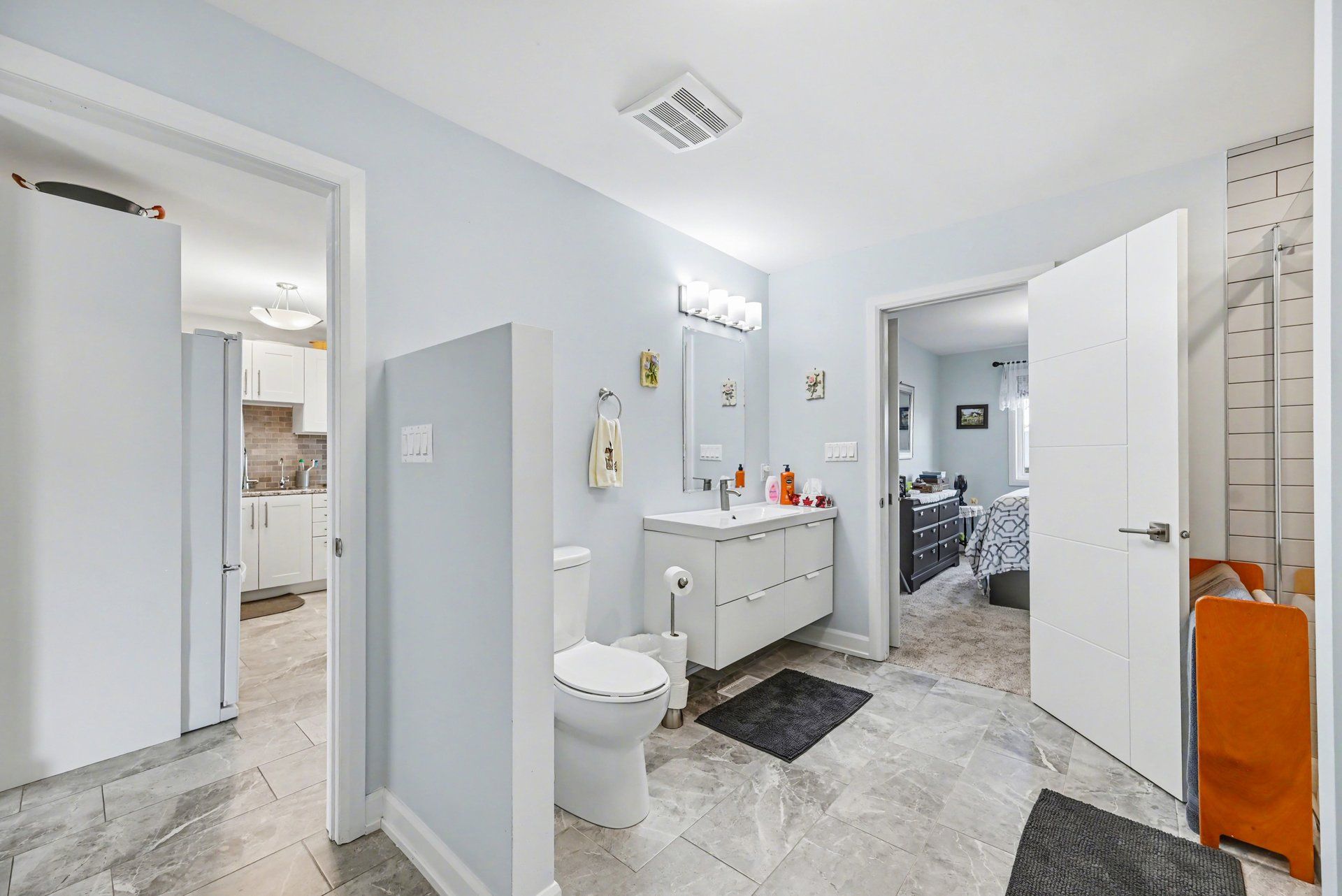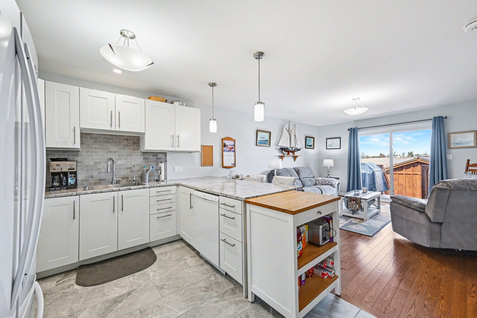 • Bright open-concept kitchen with ample counter space for cooking.