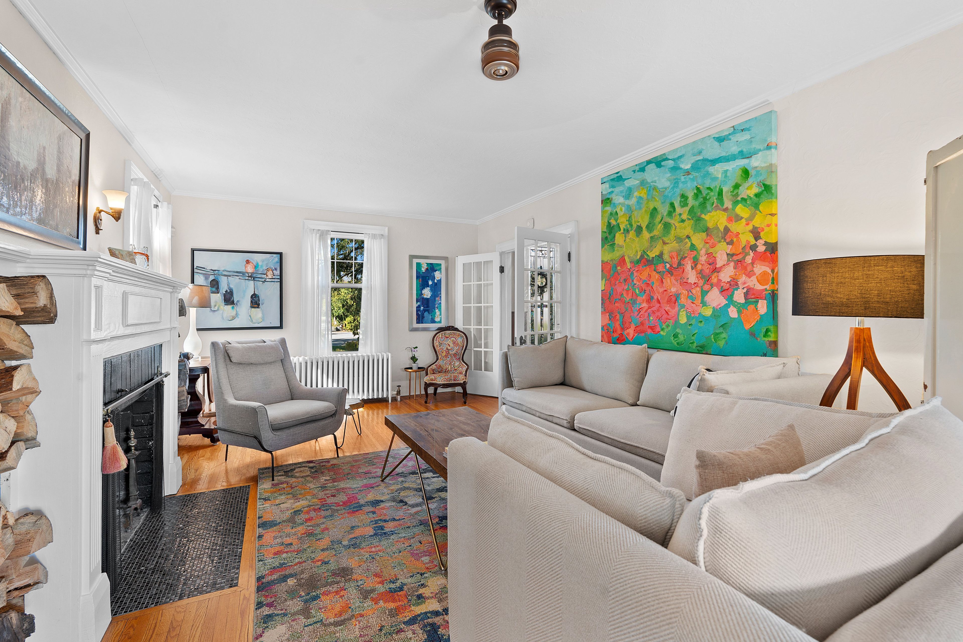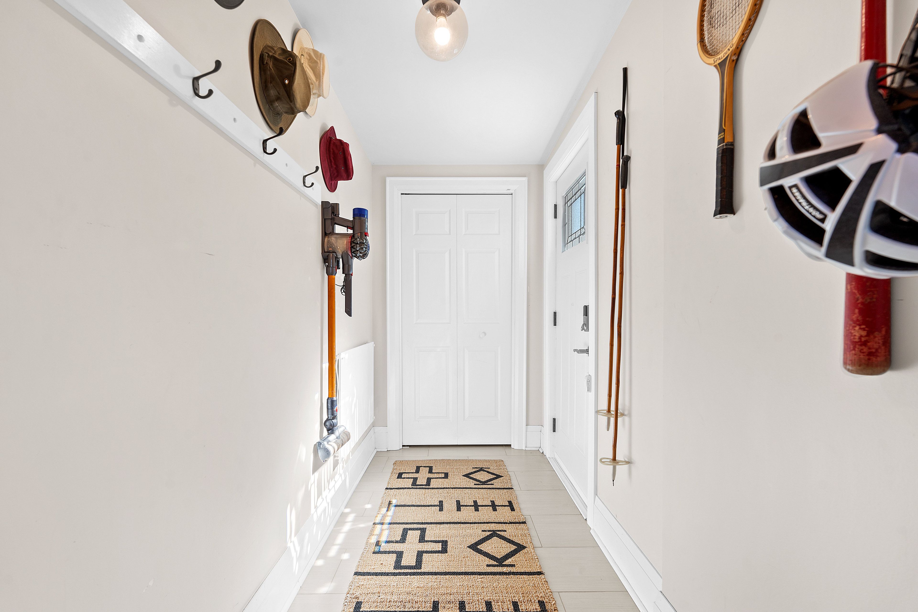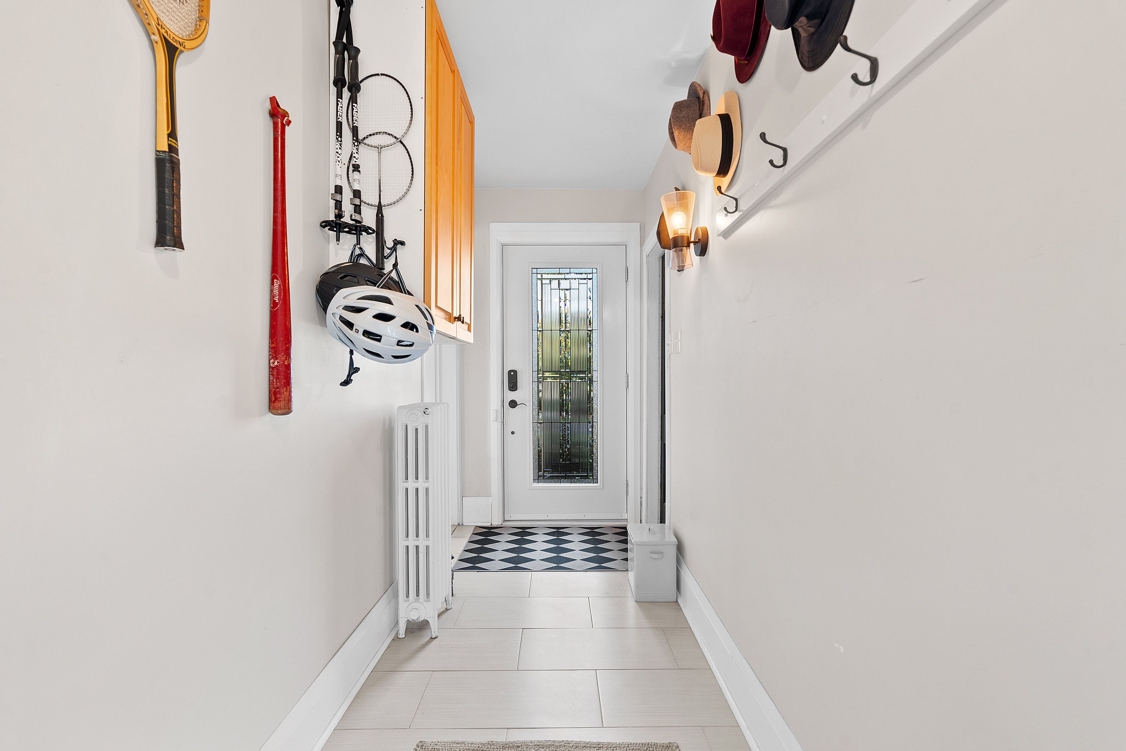 • Welcoming foyer with a sweeping wood staircase and unique plaster walls.