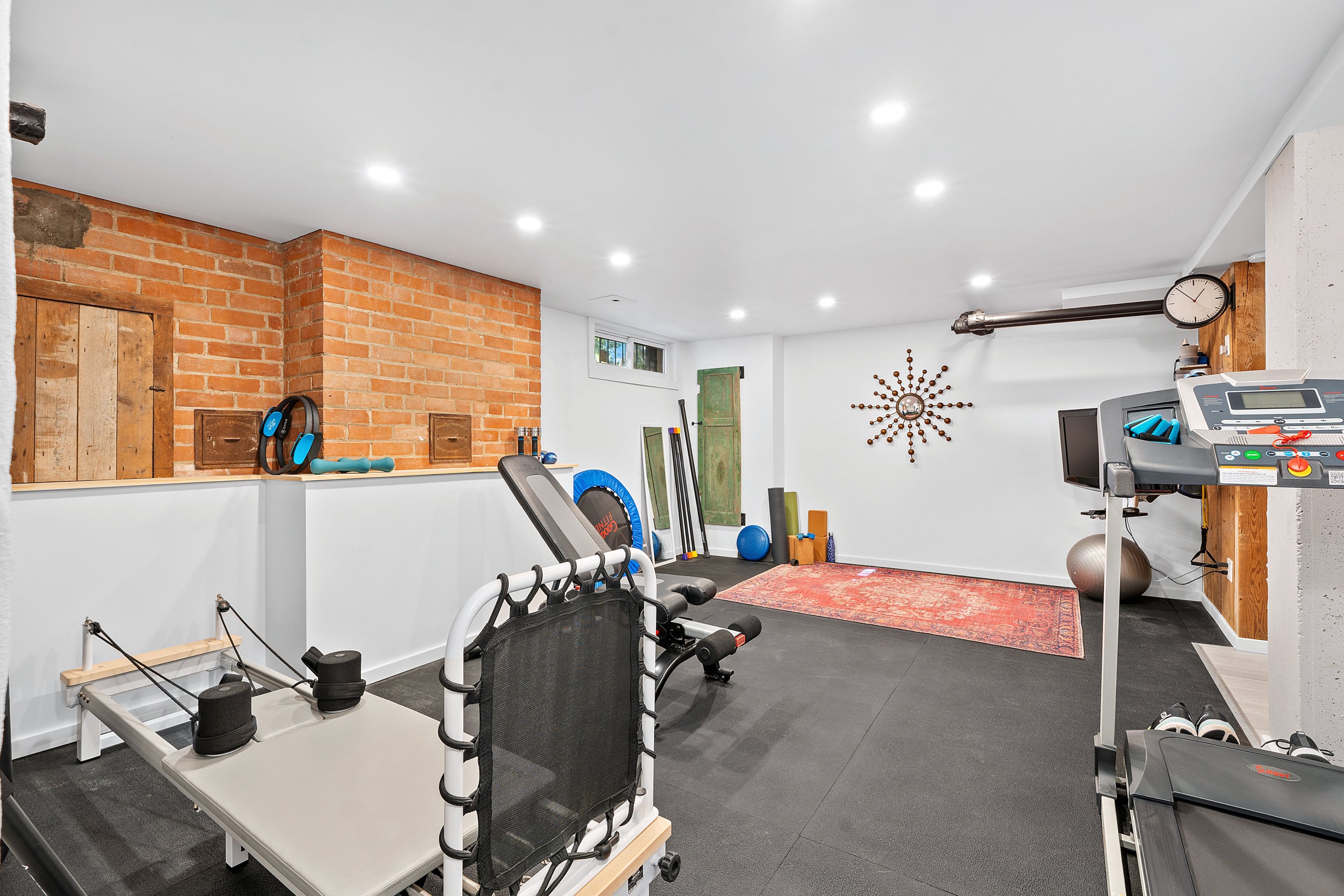 • Lower level features a family room, gym, and ample storage options.