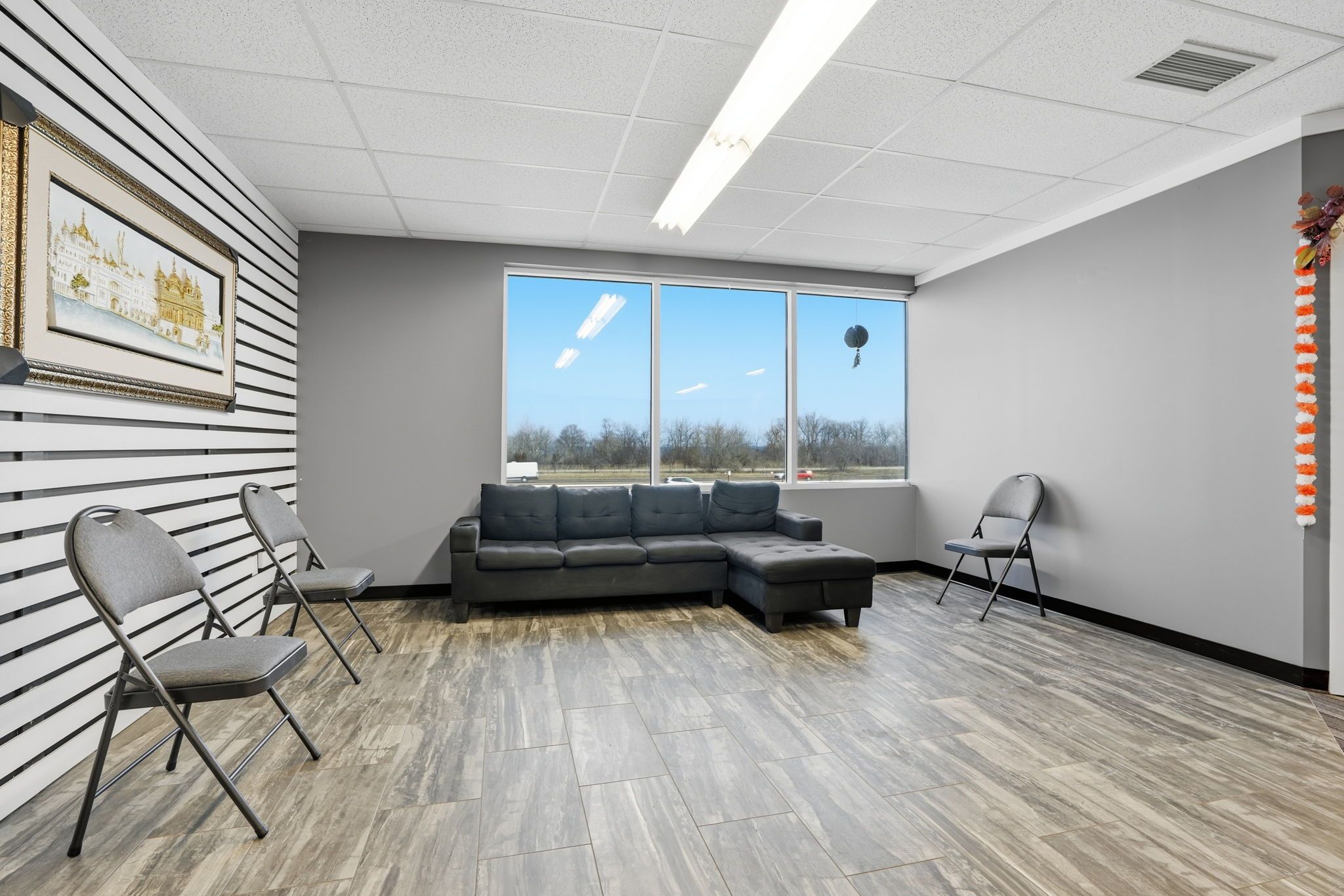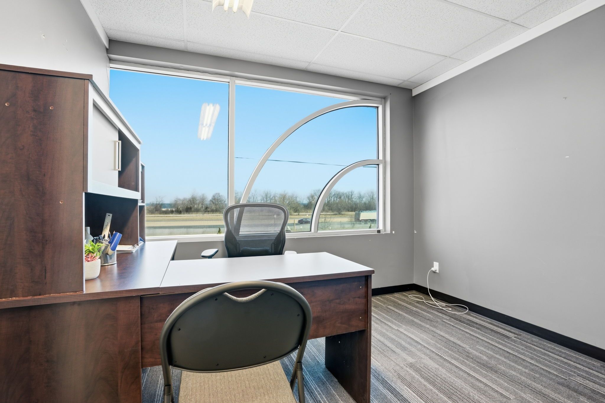• Large windows create a bright and professional atmosphere.