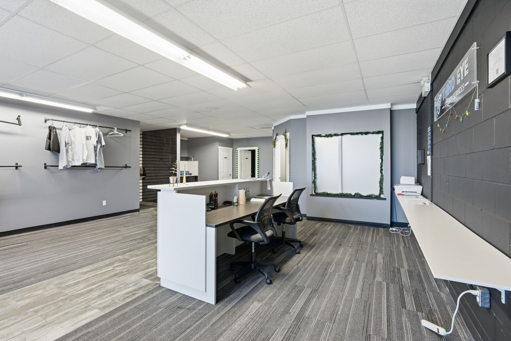 • Flexible layout with two private offices and large open workspace.