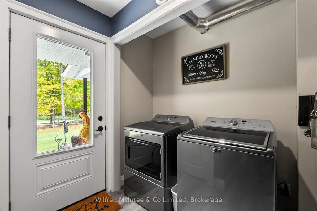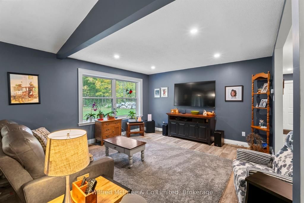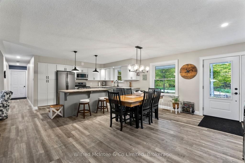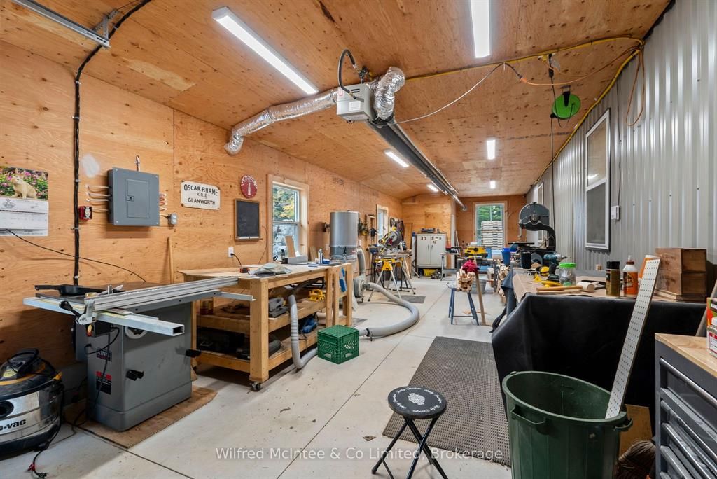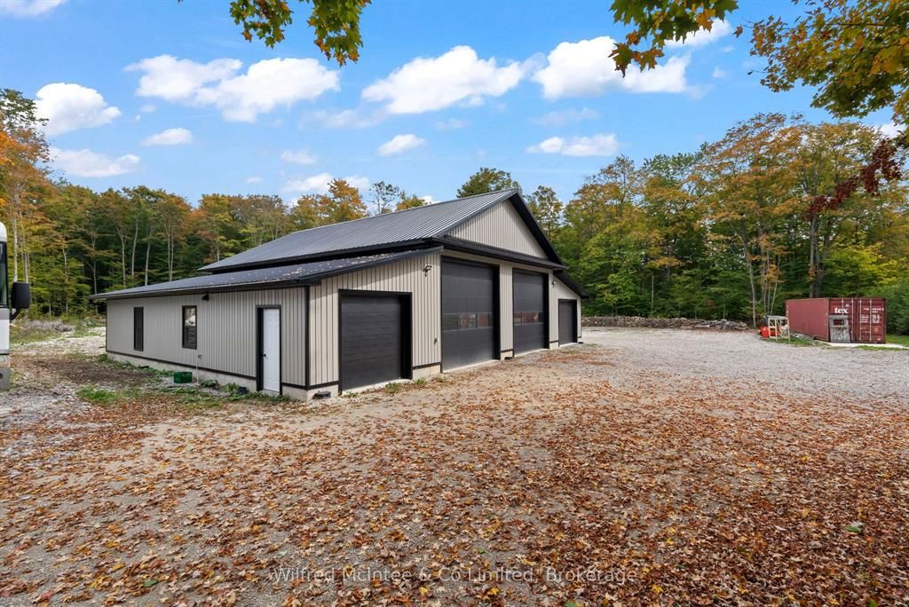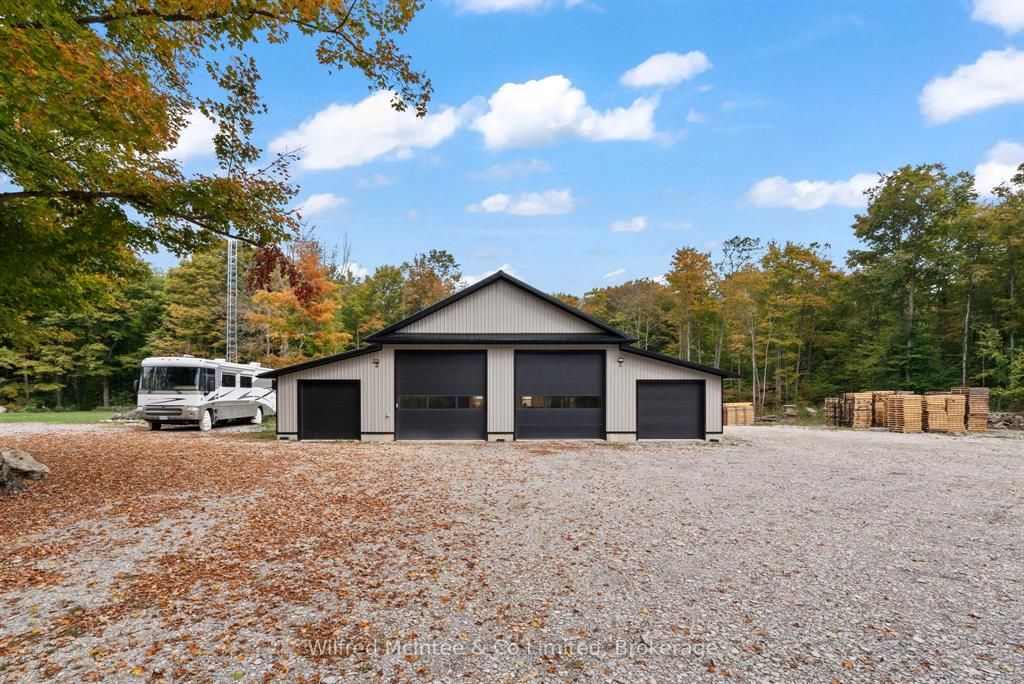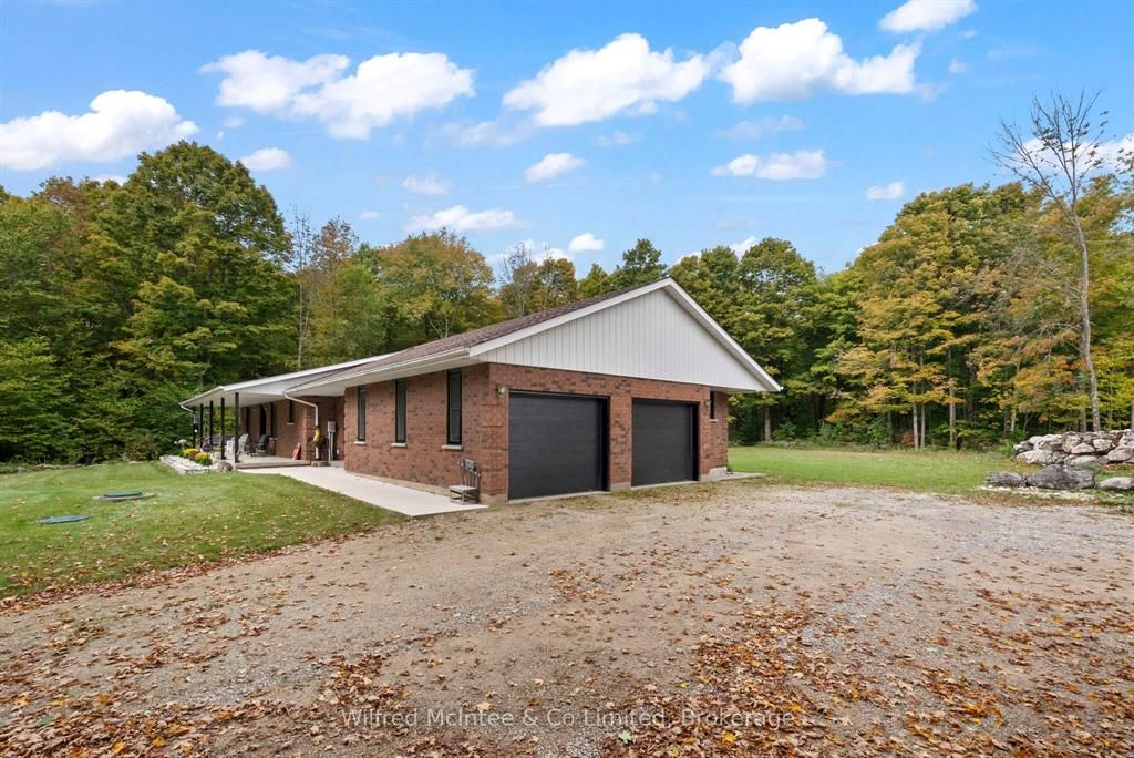 Spacious 4 bed 3. 5 bath home and heated shop set on 25 private acres of hardwood bush, south east of wiarton. The 60x48 ft shop is insulated and heated. The home was completely gutted and re-finished. Including but not limited to all new windows, doors, flooring, fireplaces, furnace, roof, bathrooms, brand new kitchen, and a retreat worthy master suite. The home features an open-concept living and dining area anchored by a beautiful stone fireplace. The large family space is perfect for gatherings. This home offers three bedrooms and two and a half bathrooms on the main floor. The primary bedroom is a true suite, complete with a large, newly renovated 5pc ensuite bathroom and a walk-through closet. Incredible forest views and natural light are captured from every room. Additional conveniences include main floor laundry, a powder room, and an attached two-car garage. The home also boasts a full, partially finished basement that is insulated, flooring installed and drywalled- ready for your final touches! This space holds incredible potential for a future in-law suite/apartment, a bonus bedroom, and a full bathroom. Outside, a newly constructed shop is ready for indulging in hobbies or expanding your business home base. Located in a desirable rural neighborhood, you'll enjoy quick access to highway 6, making for an easy commute to wiarton, owen sound, suable beach, and the bruce peninsula.