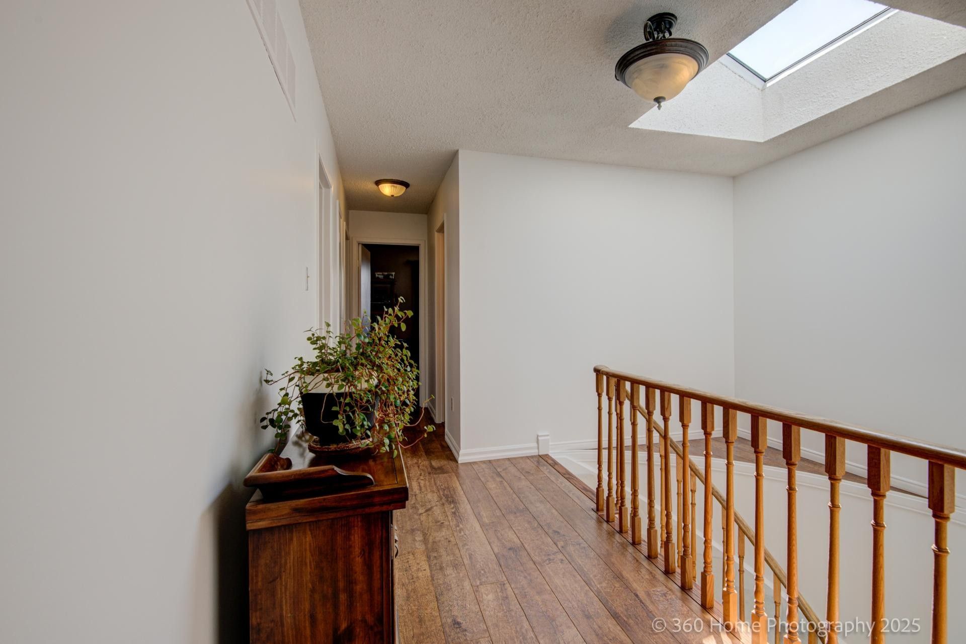 Sawmill valley over 1800 sq ft home is the perfect choice-simply move-in and enjoy! It's four spacious bedrooms and fresh top-to-bottom fresh paint in neutral tones offers a timeless and elegant space. The stunning centre hall staircase, crowned by a skylight, bathes the home in natural sunlight-you'll seldom need to turn the lights on. The formal living and dining room combination offers plenty of space for entertaining family and friends, while still allowing for intimate gatherings in the dining room or the eat-in kitchen. Designed for comfort and practicality, the kitchen overlooks the rear yard, ideal for keeping an eye on children at play. The adjacent main-floor family room features a lovely wood-burning brick corner fireplace, creating a warm and inviting atmosphere. Step outside through the convenient walk-out, seamlessly connecting indoor and outdoor living. The second floor boasts four generously sized bedrooms,a spacious primary bedroom, fits a king bed. The 2-pc ensuite and walk-in closet. Other bedrooms can comfortably accommodate double or queen-size beds. A well-appointed four-piece main bath and a spacious linen closet complete the upper level. Location, location this detach link on 1 side is located in sawmill valley, one of mississauga's most sought-after communities, offering a perfect balance of convenience and natural beauty. Enjoy a fully fenced oversized yard with gated entry, perfect for outdoor fun and relaxation. Transportation is at your fingertips with easy access to highway 403, plus proximity to top-rated schools, shopping, restaurants, the university of toronto mississauga (utm), sheridan college, credit valley hospital, erin mills town centre, and the area's stunning parks and walking trails. By public transit, you're just minutes from square one city centre, golden square centre, t&t superstore, erindale go station. Classic & functional design, this home features the highly popular floor plan. Link is underground.