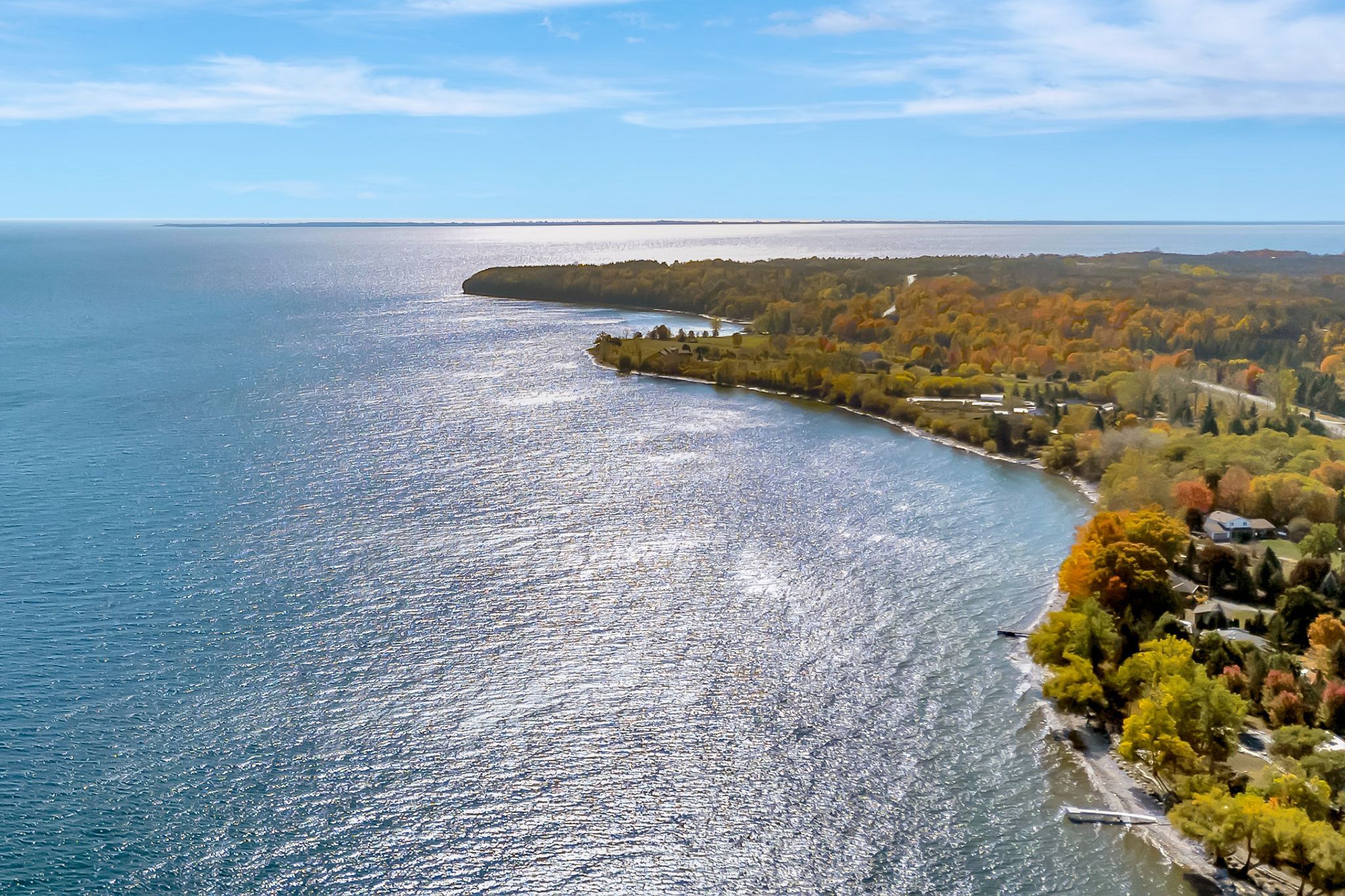 • Covered front porch with lovely Lake Ontario water views.