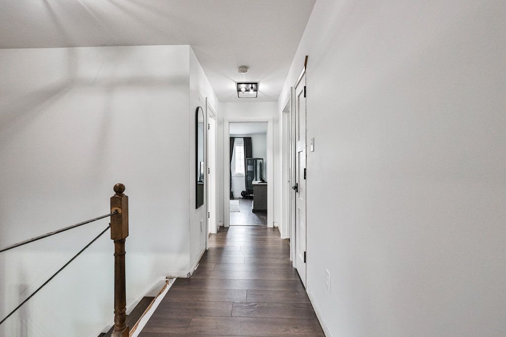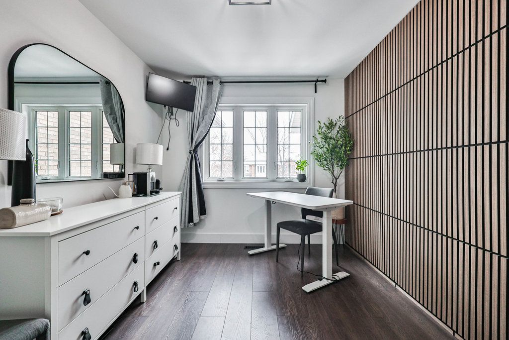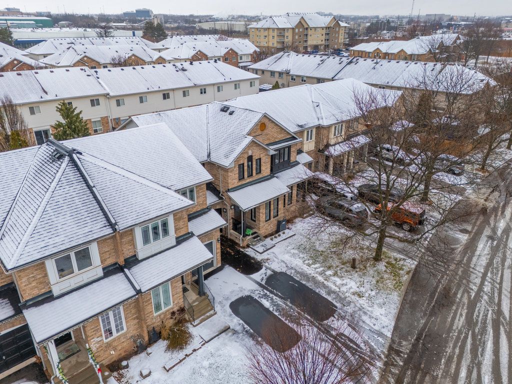 Set in the heart of longmoor, this modern townhome offers the perfect blend of comfort, style, and convenience for growing families. Located just steps from appleby go and close to every daily necessity, it provides an easy, connected lifestyle in one of burlington's most family-friendly neighbourhoods. A beautifully updated exterior sets the tone, featuring an interlocking stone pathway that extends your parking space, a newer garage door with built-in delivery camera (2021), a freshly redone and sealed driveway, and smart philips hue outdoor lighting for the front door, garage, and yard (2022). A ring doorbell adds extra peace of mind. Inside, the main floor impresses with hardwood throughout and a thoughtfully upgraded, modern kitchen. Families will love the granite countertops, island seating, custom cabinetry, stainless steel appliances (2021), tile backsplash, designer lighting, and delta voiceiq faucet with motion-sensor convenience (2022). The spacious living room invites cozy evenings with its electric fireplace (2021) and stylish wall panelling, while the open-concept dining area offers a seamless walkout to the rear yard. A chic 2pc powder room and contemporary open-style staircase complete this level. Upstairs, the serene primary suite features wall panelling, a barn-door accent, and a modern 3pc ensuite with a walk-in glass shower and heated floors-your own private retreat. Two additional well-sized bedrooms, each upgraded with soundproof wall panelling, provide the perfect spaces for kids, guests, or work-from-home needs, along with a 4pc main bath. The fully fenced backyard is designed for effortless outdoor living, offering a wood deck, patio, and a dedicated garden area-ideal for family bbqs, playtime, and weekend relaxation. A stylish, smart-enabled home in a prime burlington location-this is the upgrade your family has been waiting for.