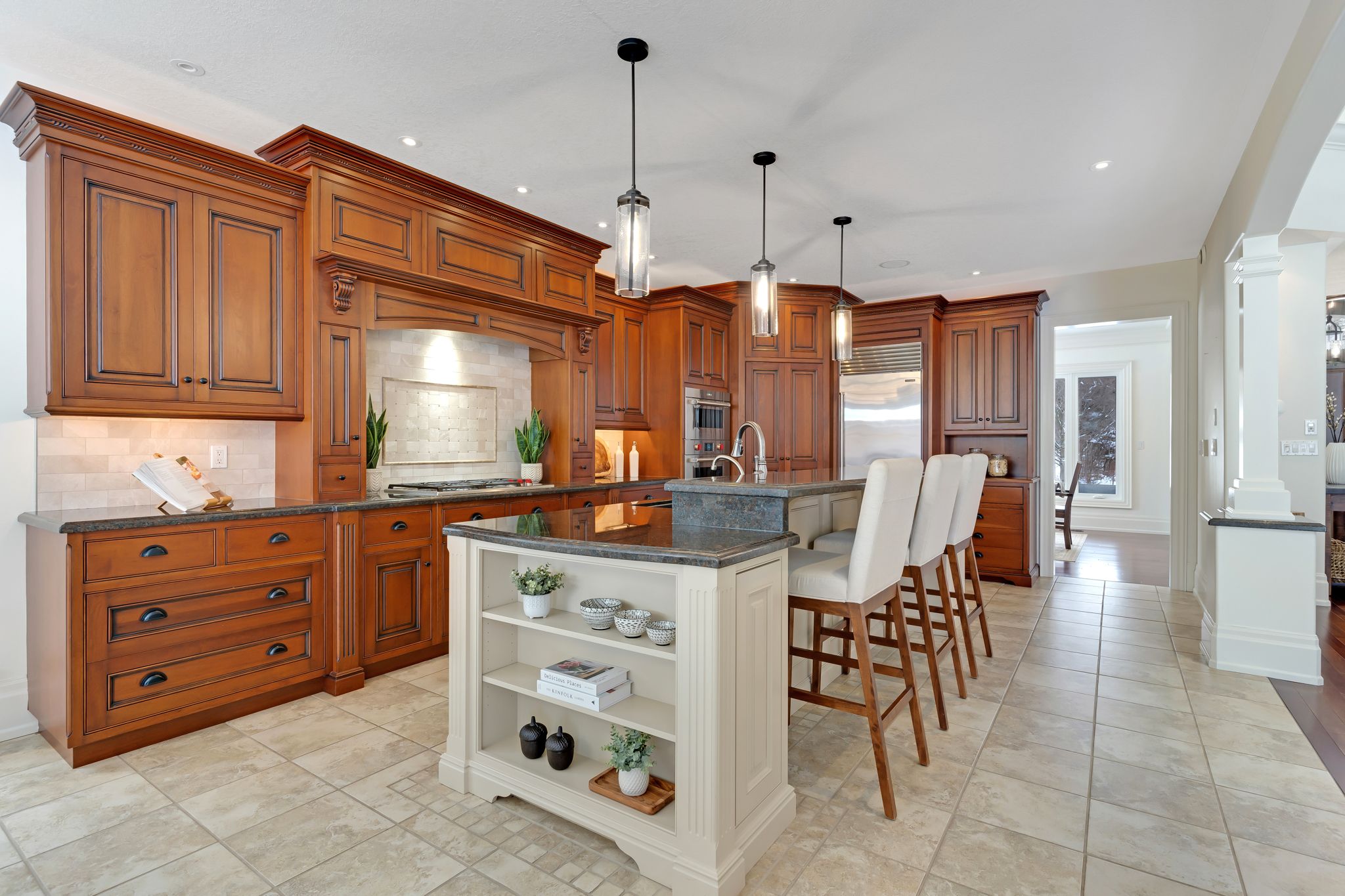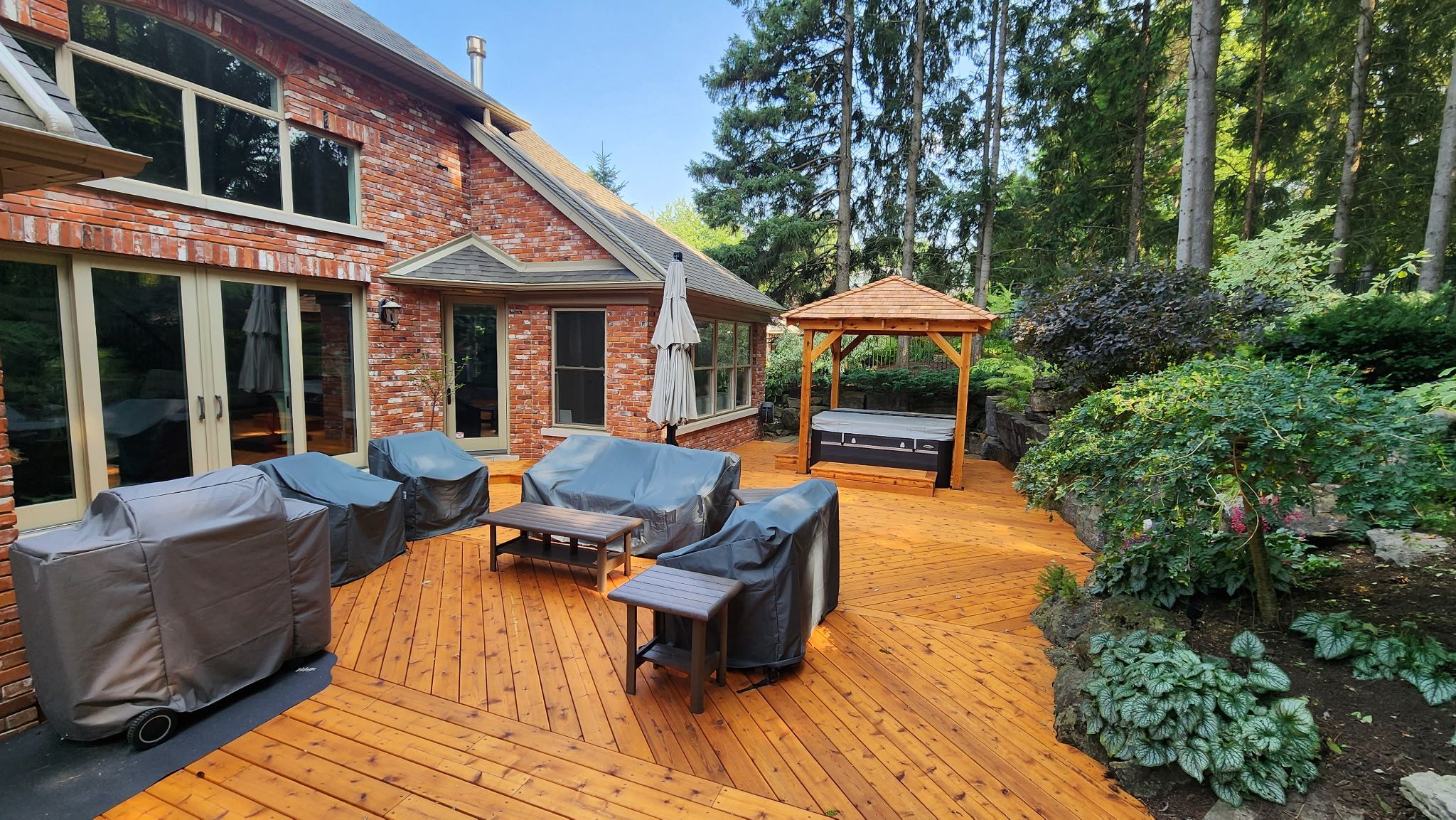 Welcome to 443 malabar drive, an exceptional executive home tucked away on a quiet cul-de-sac in desirable waterloo. Offering over 5,800 sq. Ft. Of finished living space, this beautifully maintained brick home blends timeless design with extensive modern upgrades. The open-concept main floor is filled with natural light and features a stunning kitchen with premium appliances, spacious living and dining areas, and seamless flow for entertaining. The main-floor primary suite is a private retreat with a fully renovated spa-inspired ensuite with heated floors, two walk-in closets, and a sun-filled bonus room perfect for morning coffee or hobbies. Upstairs offers two generous bedrooms, a full bath, and a versatile den ideal for a home office or lounge space. The fully finished basement includes two additional rooms, a full bathroom, expansive recreation area, billiards space, rough-in for a wet bar, walk-up entrance for in-law potential, and abundant storage. Enjoy a beautifully landscaped backyard with cedar deck, gazebo, tiki hut, and waterscape hot tub, designed for year-round enjoyment. Extensive updates include renovated ensuite, refreshed basement flooring, carrier furnace and a/c, updated alarm, sump pump, select new windows and doors, garage doors, roof heat coils, custom closets, mudroom, and professional landscaping. A rare opportunity offering luxury, space, and an unbeatable waterloo location close to schools, parks, shopping, and commuter routes.