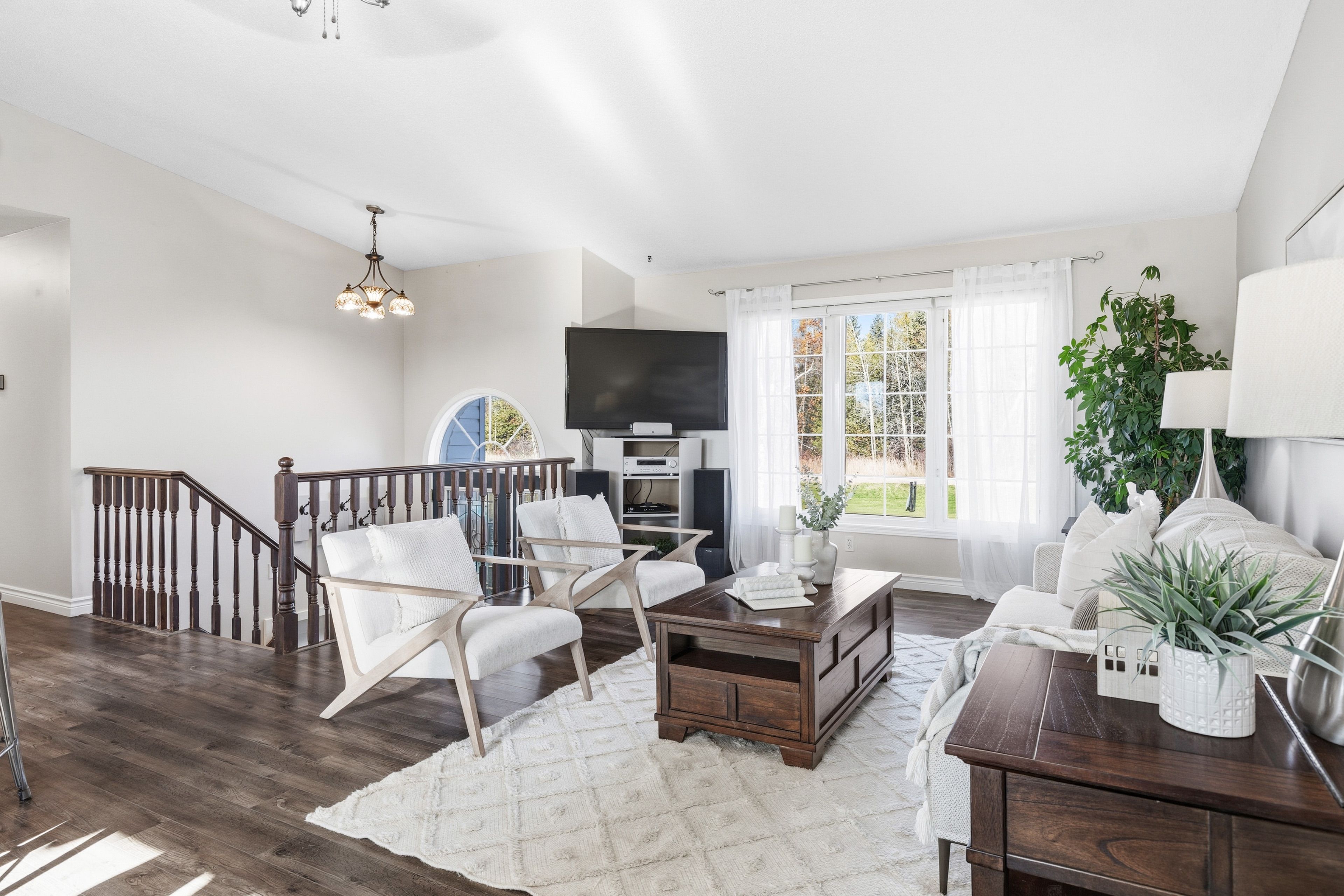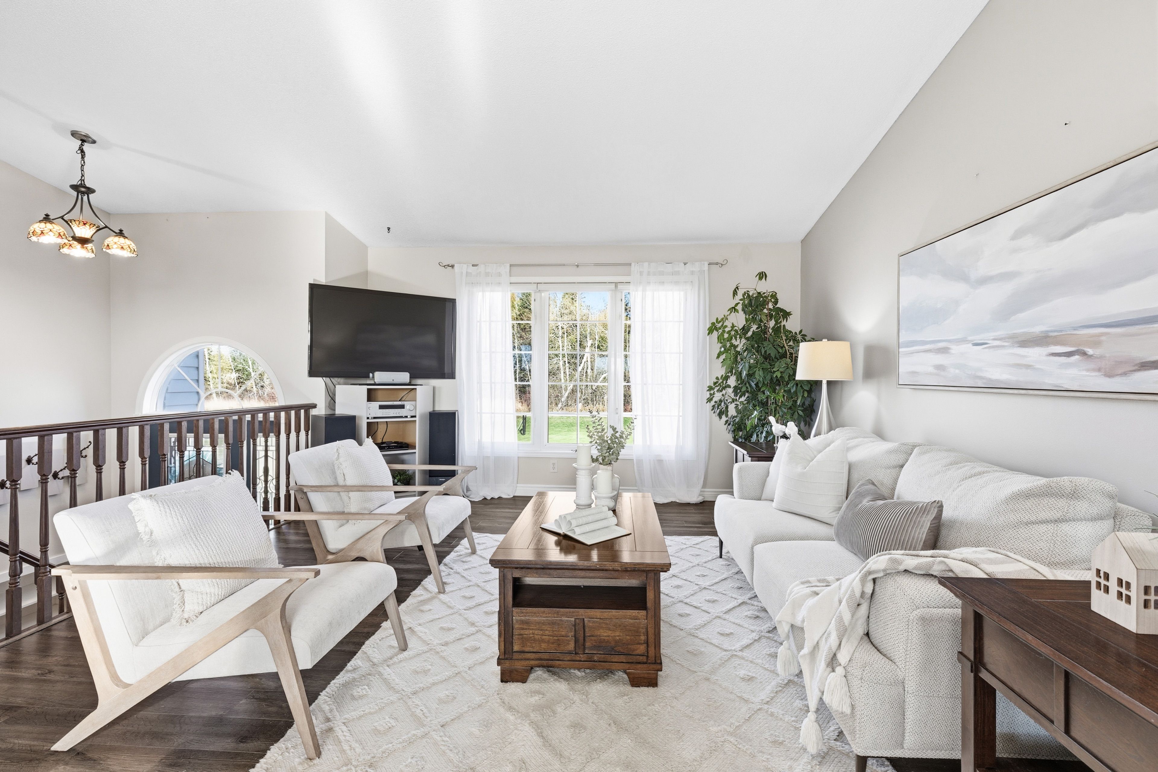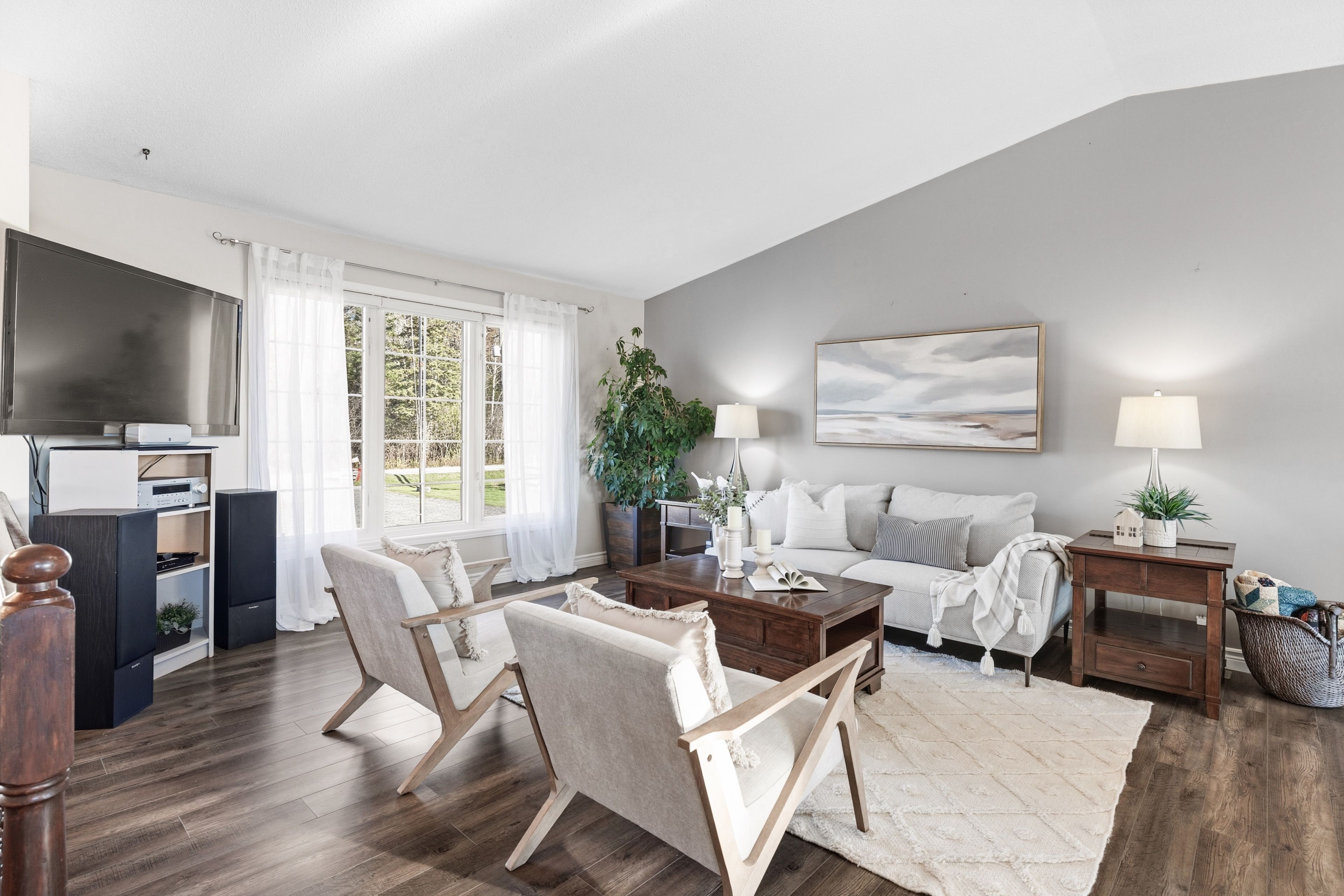 • Open-concept main floor with bright living space and vaulted ceilings.