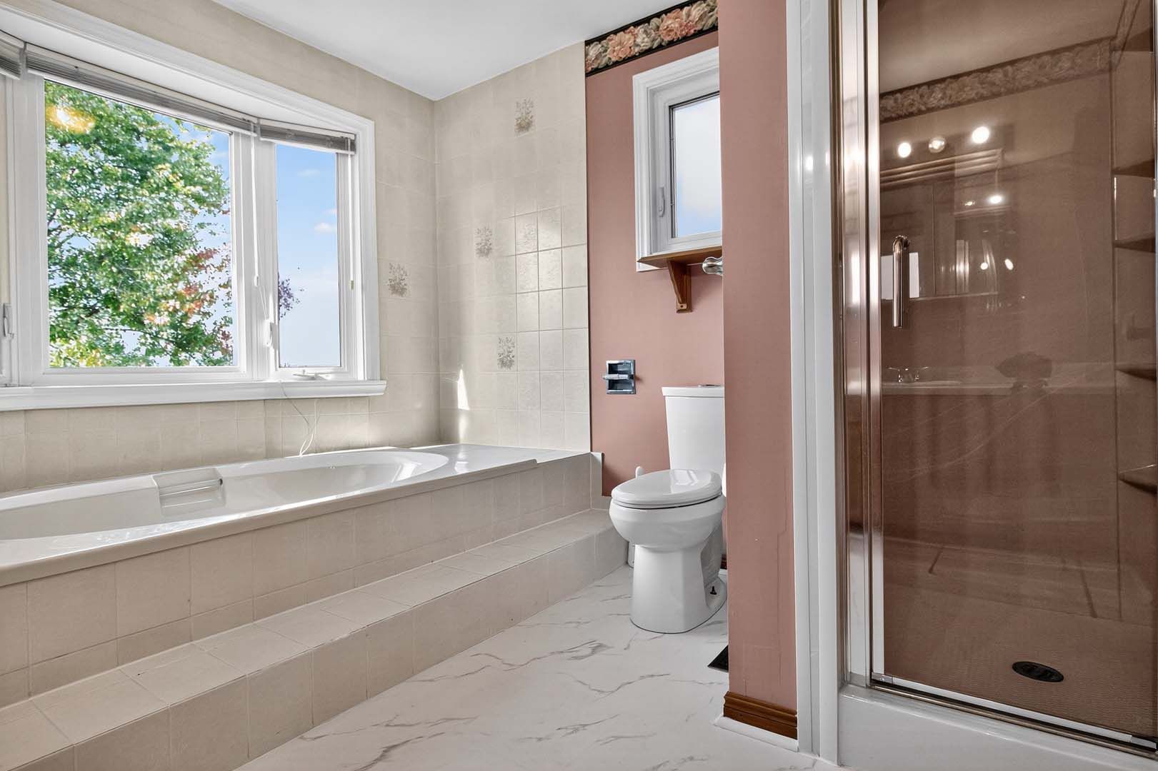 • Expansive primary bedroom with ensuite, soaker tub, and walk-in closet.