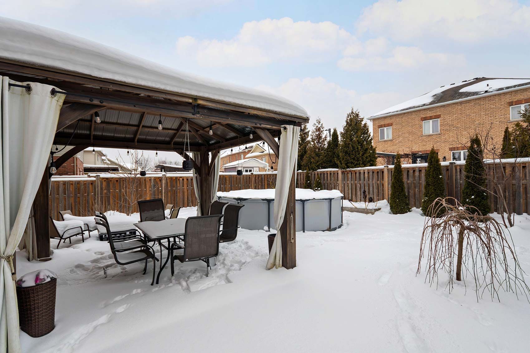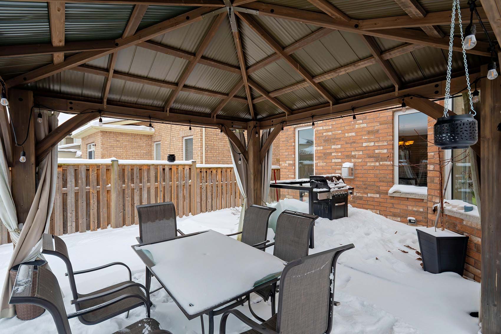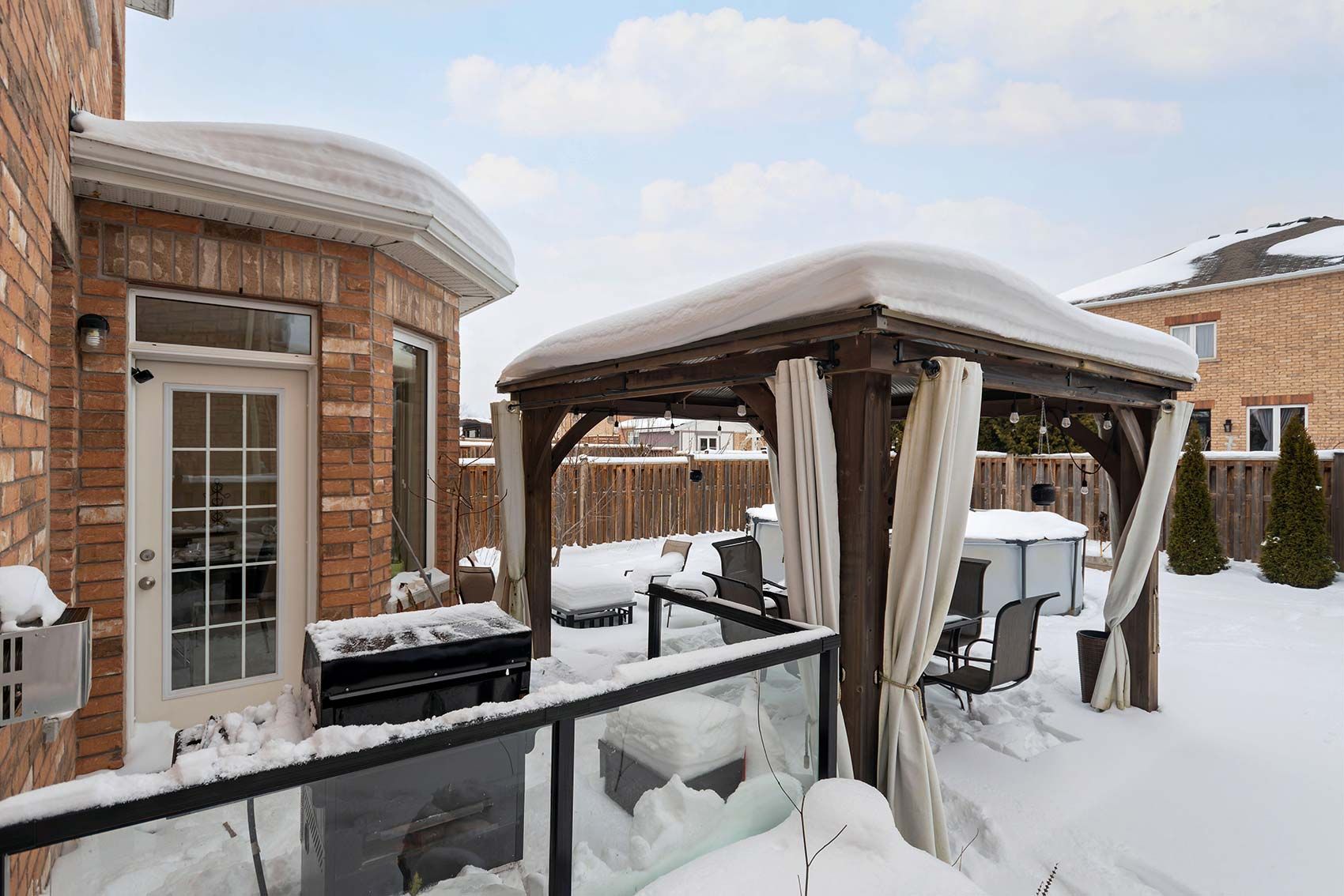 • Backyard features a two-level deck, gazebo, and above-ground pool.