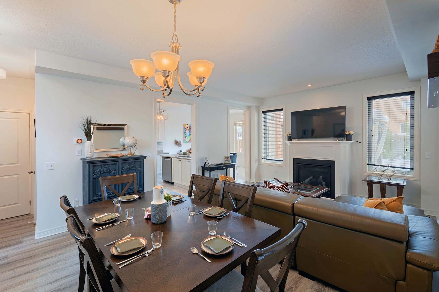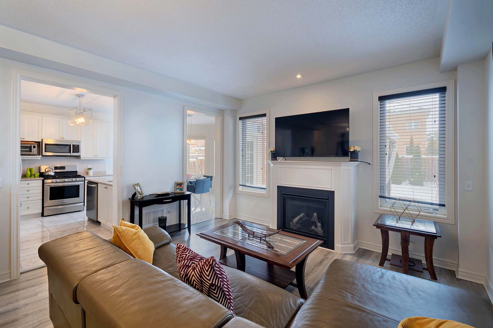 • Spacious layout with tall ceilings and a cozy living room fireplace.