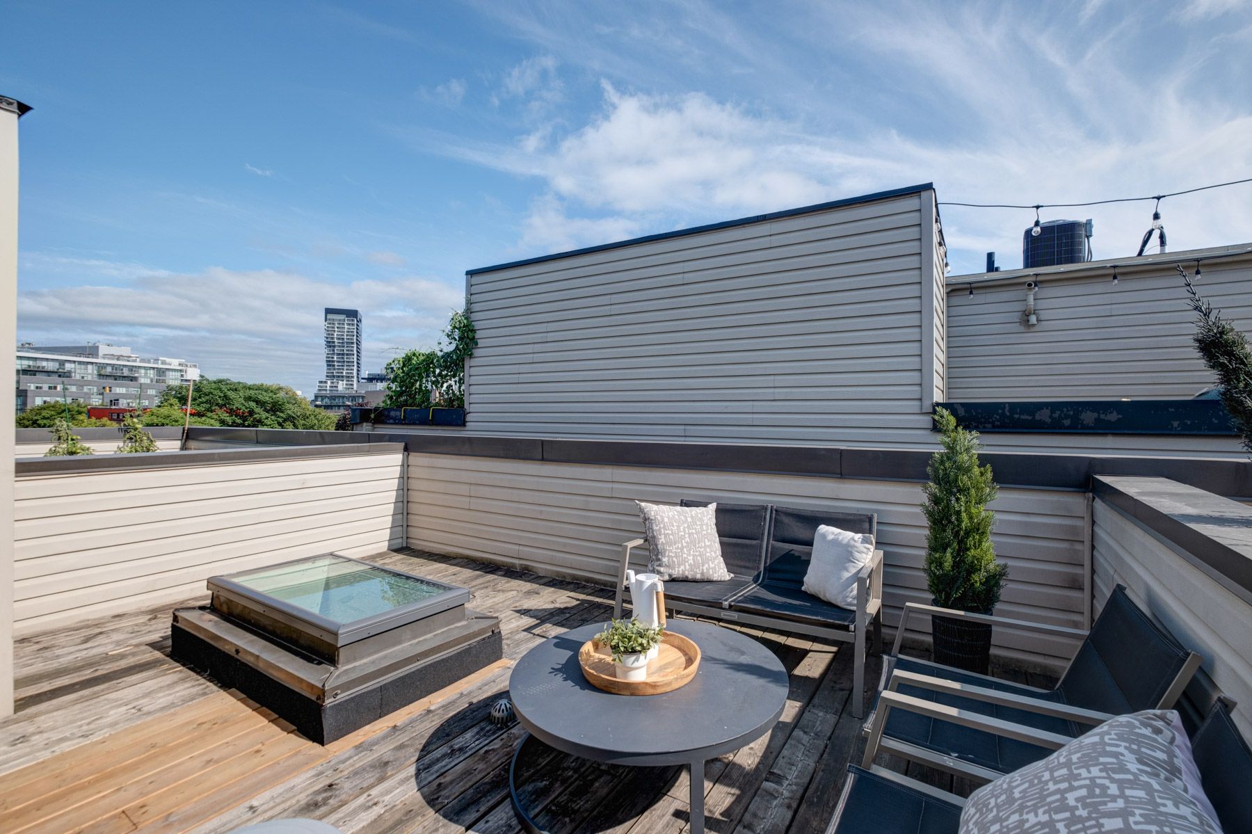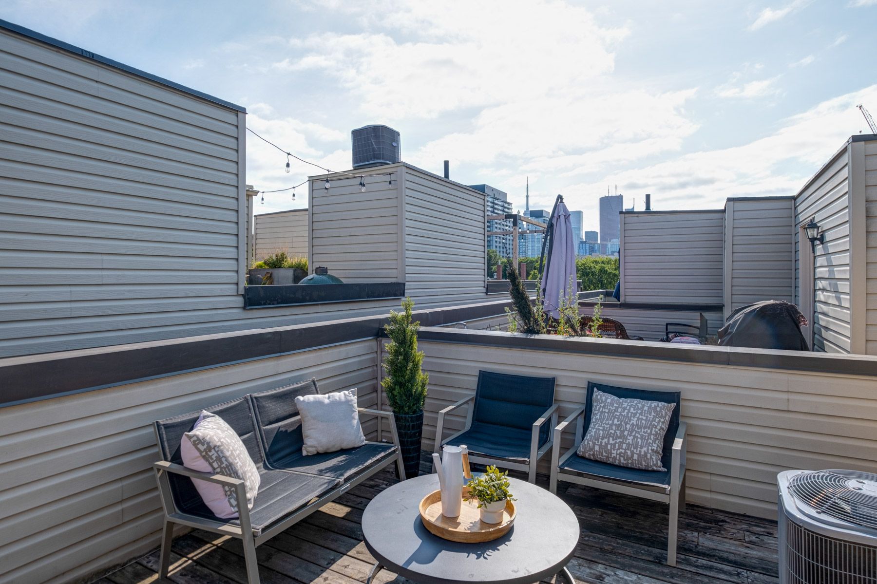 • Rooftop deck offers stunning city views and space for relaxation.