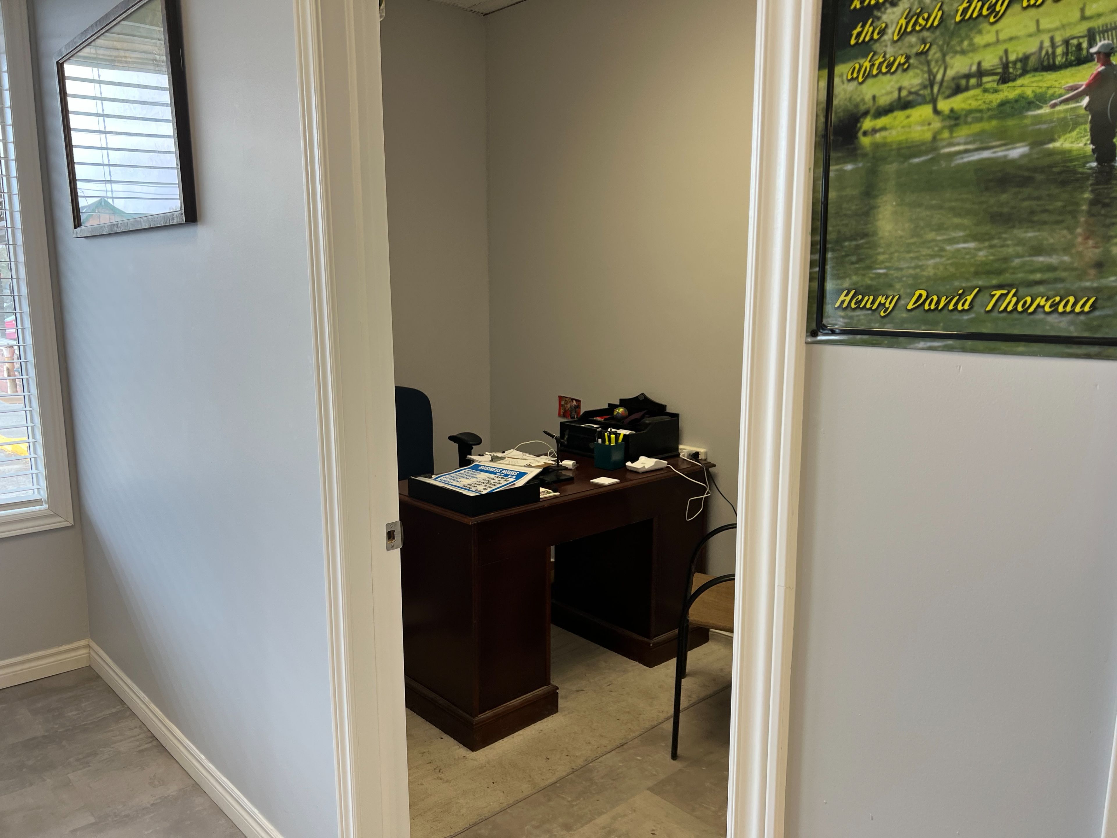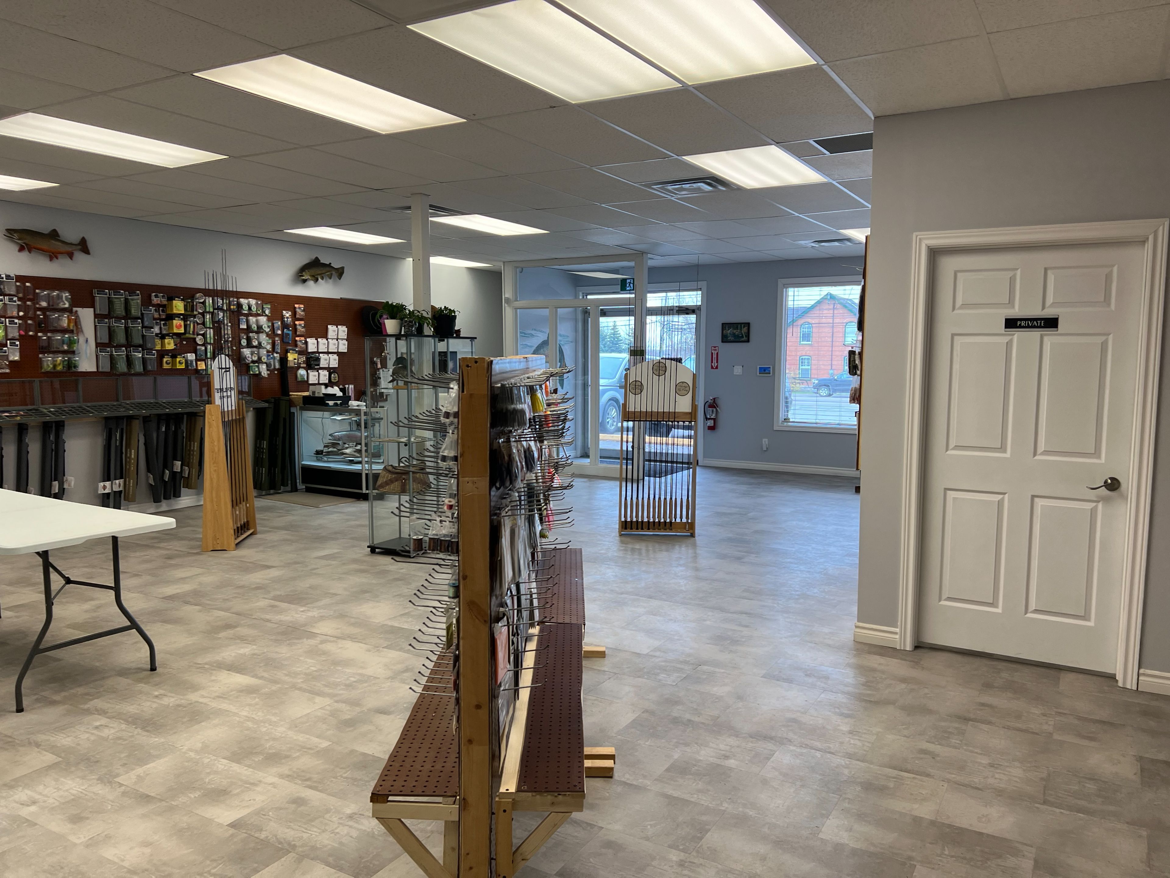 • Features a drop ceiling and ceramic flooring at the storefront.