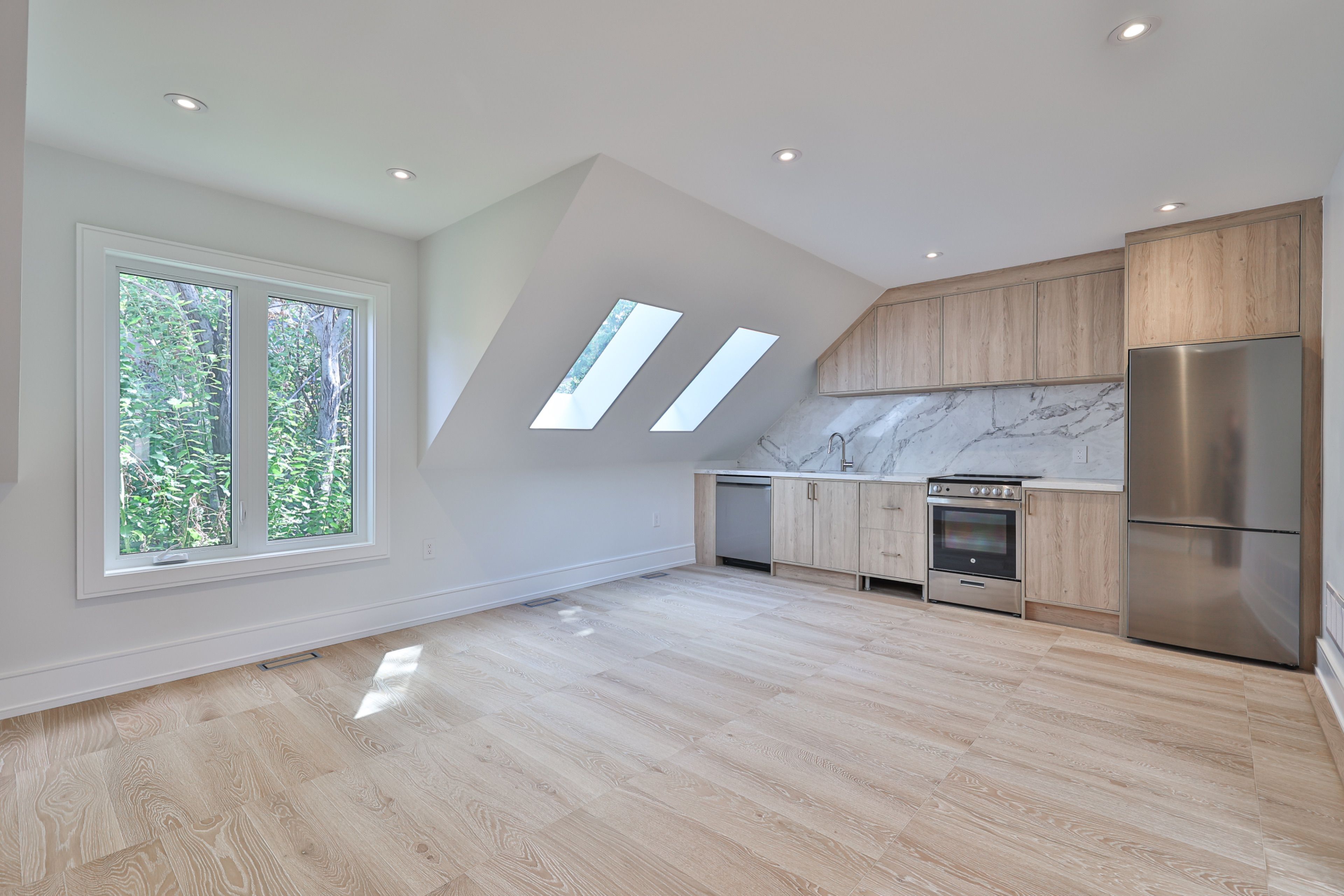 In the heart of the city, yet set within a quiet, tree-lined neighbourhood, this fully renovated 4,200 square foot residence offers the best of both worlds. A rare two-storey laneway home at the rear adds exceptional flexibility and long-term value. Every inch has been reimagined with modern finishes and timeless design, creating a home that feels both sophisticated and welcoming. High ceilings and light-filled spaces are enhanced by east and west exposures, delivering natural sunlight throughout the day. The interiors showcase refined craftsmanship throughout, from the custom-designed kitchen with premium appliances and millwork to versatile living spaces ideal for both everyday life and entertaining. The top floor is dedicated to a private primary retreat with a spa-inspired ensuite, heated floors, a library or lounge area, and two private balconies. All bathrooms throughout the home feature heated floors. The lower level offers high ceilings, a bright living area, kitchenette, full bathroom, and an additional bedroom, ideal for guests or extended family. At the rear, the two-storey laneway home features its own entrance, secure garage, and a bright one-bedroom plus den, two-bathroom suite with kitchen. Ideal for multi-generational living, a private workspace, guest accommodations, or short-term rental income, the laneway suite offers a rare opportunity to significantly offset monthly carrying costs. Steps to acclaimed restaurants, neighbourhood parks, cafés, grocery stores, and transit, this exceptional property brings together luxury, location, and lifestyle in perfect harmony.