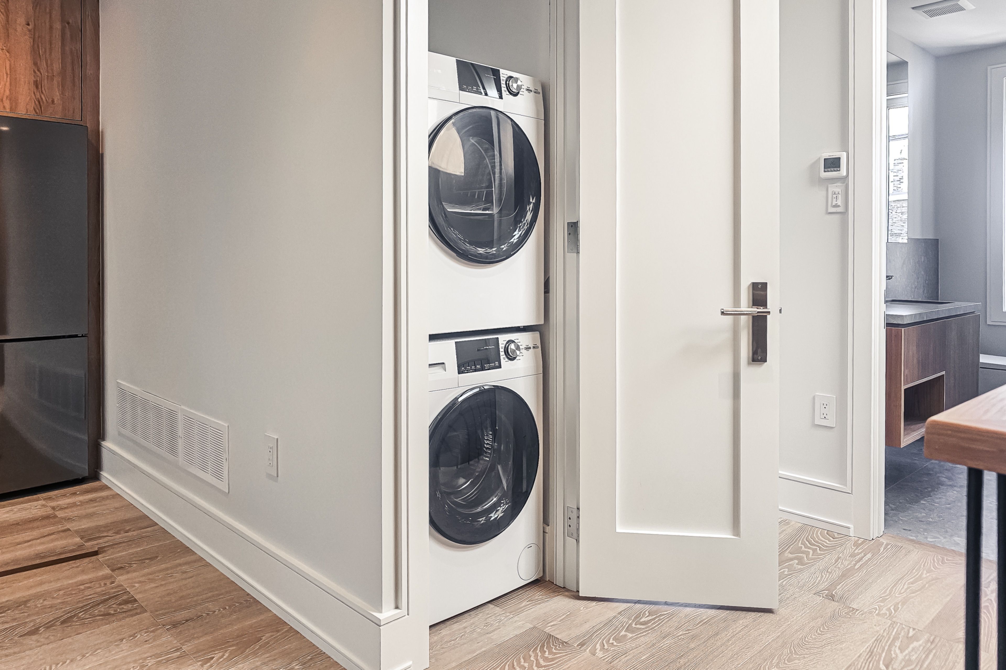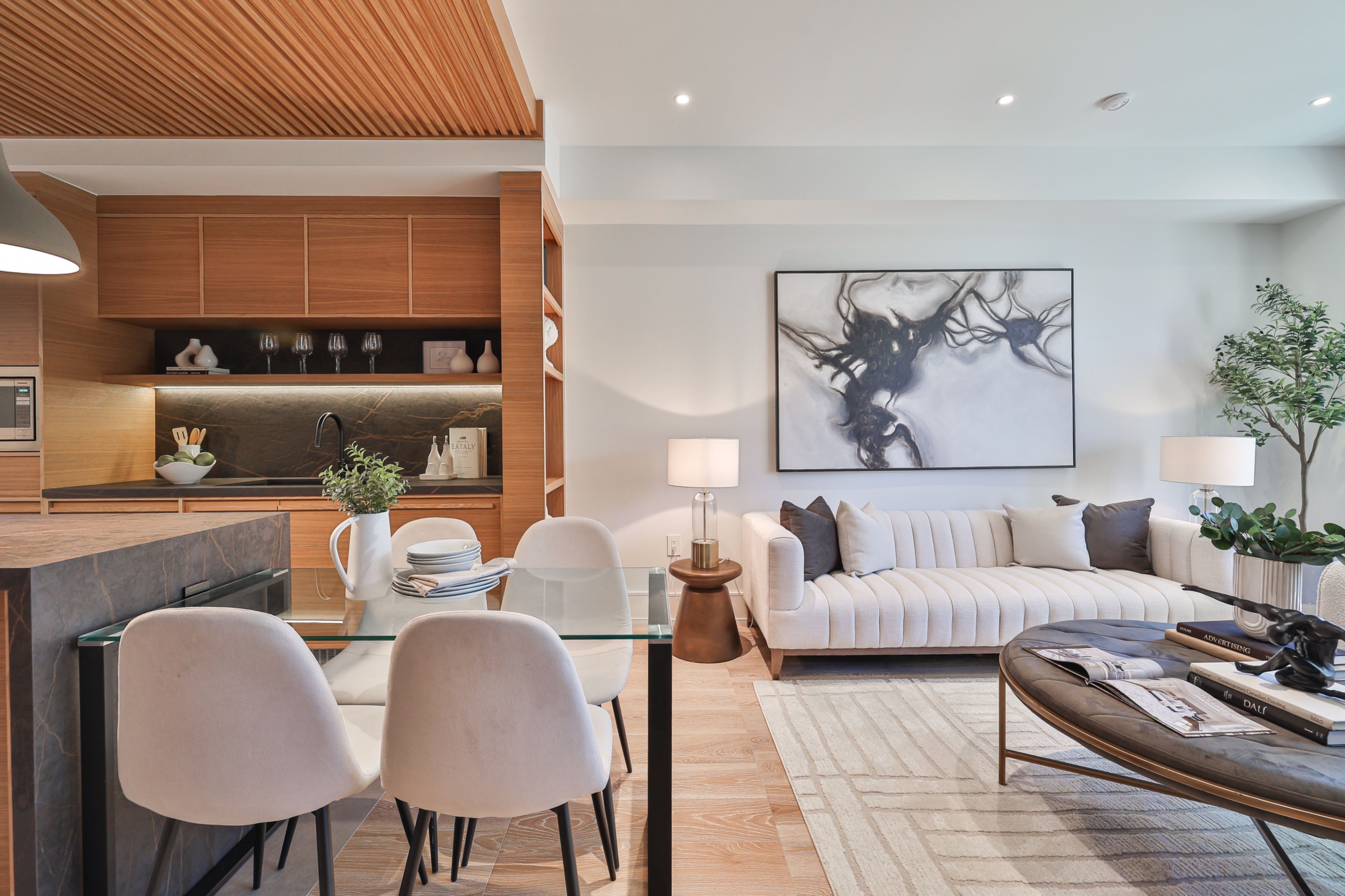 In the heart of the city, yet set within a quiet, tree-lined neighbourhood, this fully renovated 4,200 square foot residence offers the best of both worlds. A rare two-storey laneway home at the rear adds exceptional flexibility and long-term value. Every inch has been reimagined with modern finishes and timeless design, creating a home that feels both sophisticated and welcoming. High ceilings and light-filled spaces are enhanced by east and west exposures, delivering natural sunlight throughout the day. The interiors showcase refined craftsmanship throughout, from the custom-designed kitchen with premium appliances and millwork to versatile living spaces ideal for both everyday life and entertaining. The top floor is dedicated to a private primary retreat with a spa-inspired ensuite, heated floors, a library or lounge area, and two private balconies. All bathrooms throughout the home feature heated floors. The lower level offers high ceilings, a bright living area, kitchenette, full bathroom, and an additional bedroom, ideal for guests or extended family. At the rear, the two-storey laneway home features its own entrance, secure garage, and a bright one-bedroom plus den, two-bathroom suite with kitchen. Ideal for multi-generational living, a private workspace, guest accommodations, or short-term rental income, the laneway suite offers a rare opportunity to significantly offset monthly carrying costs. Steps to acclaimed restaurants, neighbourhood parks, cafes, grocery stores, and transit, this exceptional property brings together luxury, location, and lifestyle in perfect harmony.