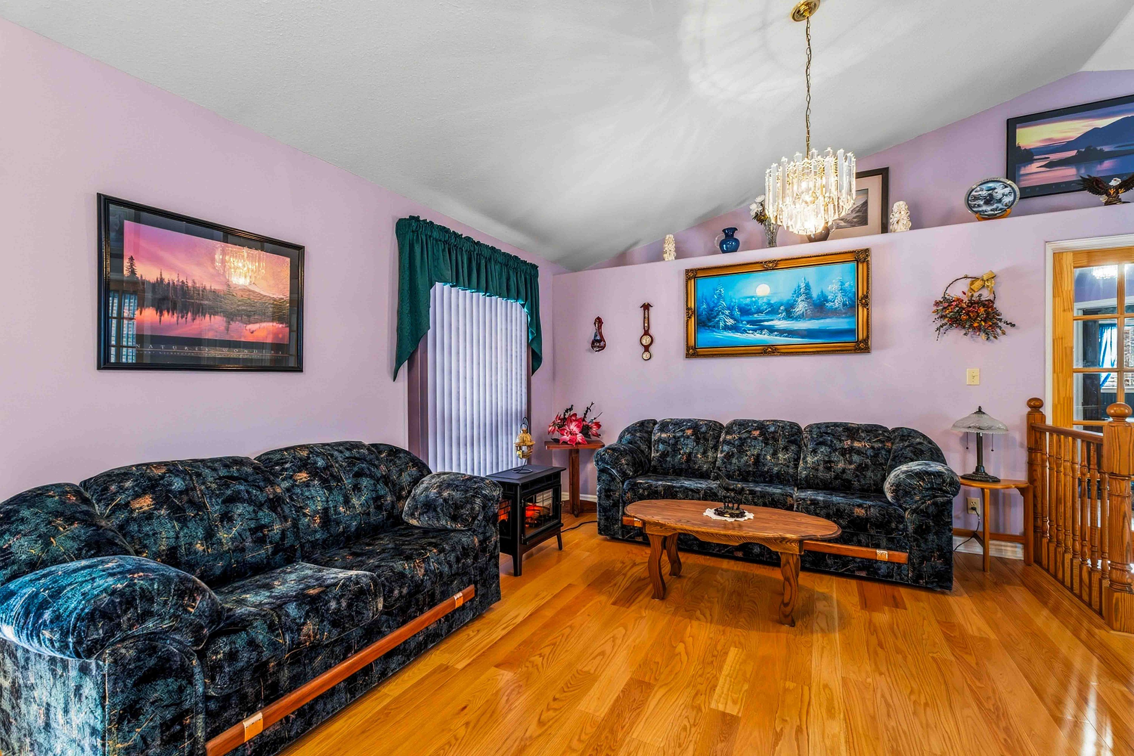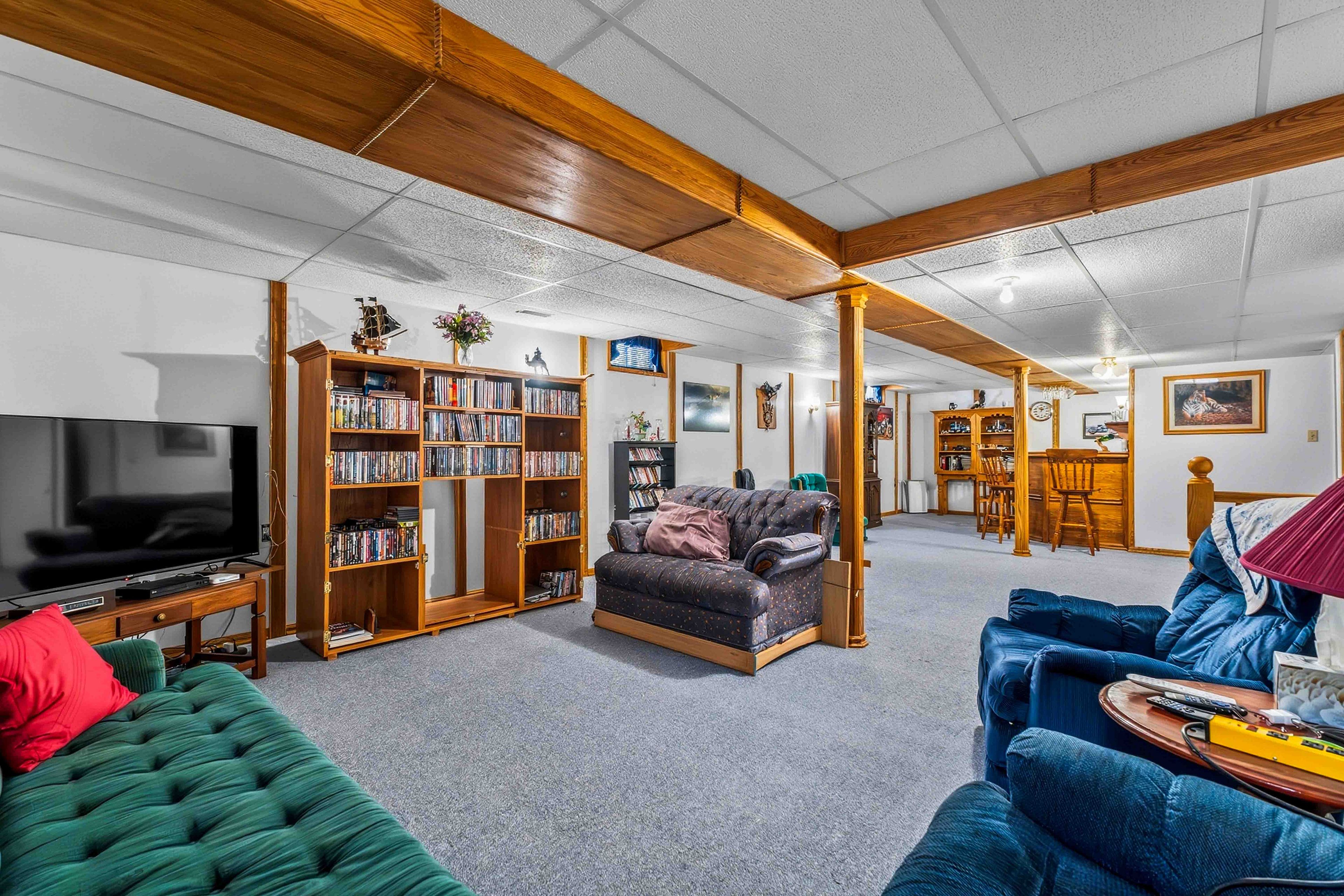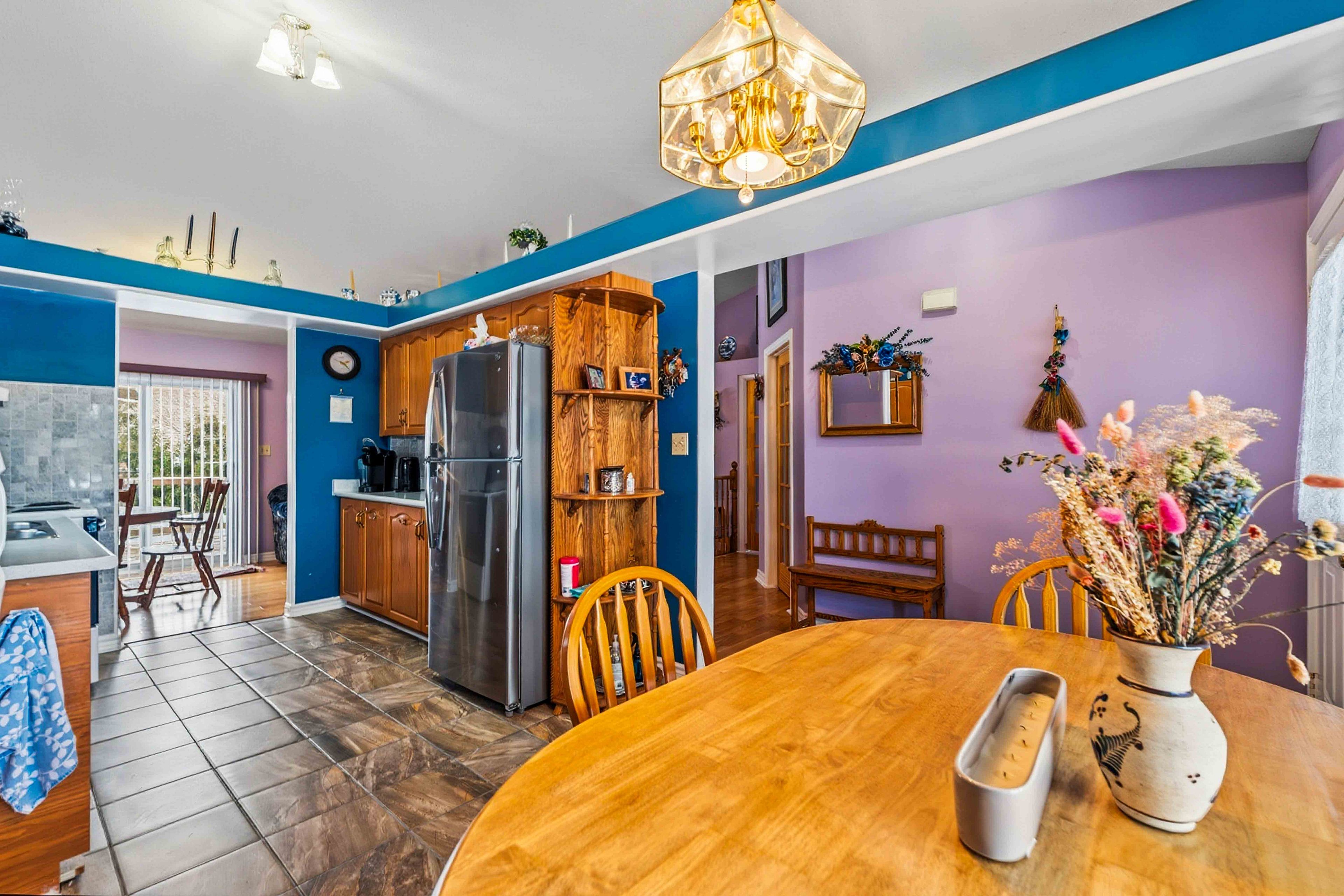 Welcome to this extremely well maintained 1183sqft solid bungalow in the heart of wine country. Vaulted ceilings, functional layout, double garage, finished basement, wide lot & numerous updates throughout! Brick & vinyl exterior, maintenance-free porch railing, and a generous driveway offer easy curb appeal. The main level features a tiled foyer with vaulted ceiling, a bright eat-in kitchen with tile flooring and backsplash, and open concept living and dining areas. The living room includes built-in plant shelving & an 11'4" vaulted ceiling peak. Sliding doors from the dining area lead to the deck & beautiful backyard. Two bedrooms feature dark wood flooring, including the primary with walk-in closet & private ensuite. A main-floor office with french doors and built-in storage provides flexible living space. Inside access from the double car garage. The finished basement offers ample space with a recently replaced sump pump. Oak staircase to basement. The outdoor features include a rebuilt deck (2017), pergola with stone patio (2021), rebuilt shed (2022), and tested drainage system with emergency sump bypass. Roof replaced in 2018. Insulated & drywalled garage with double-walled insulated door.