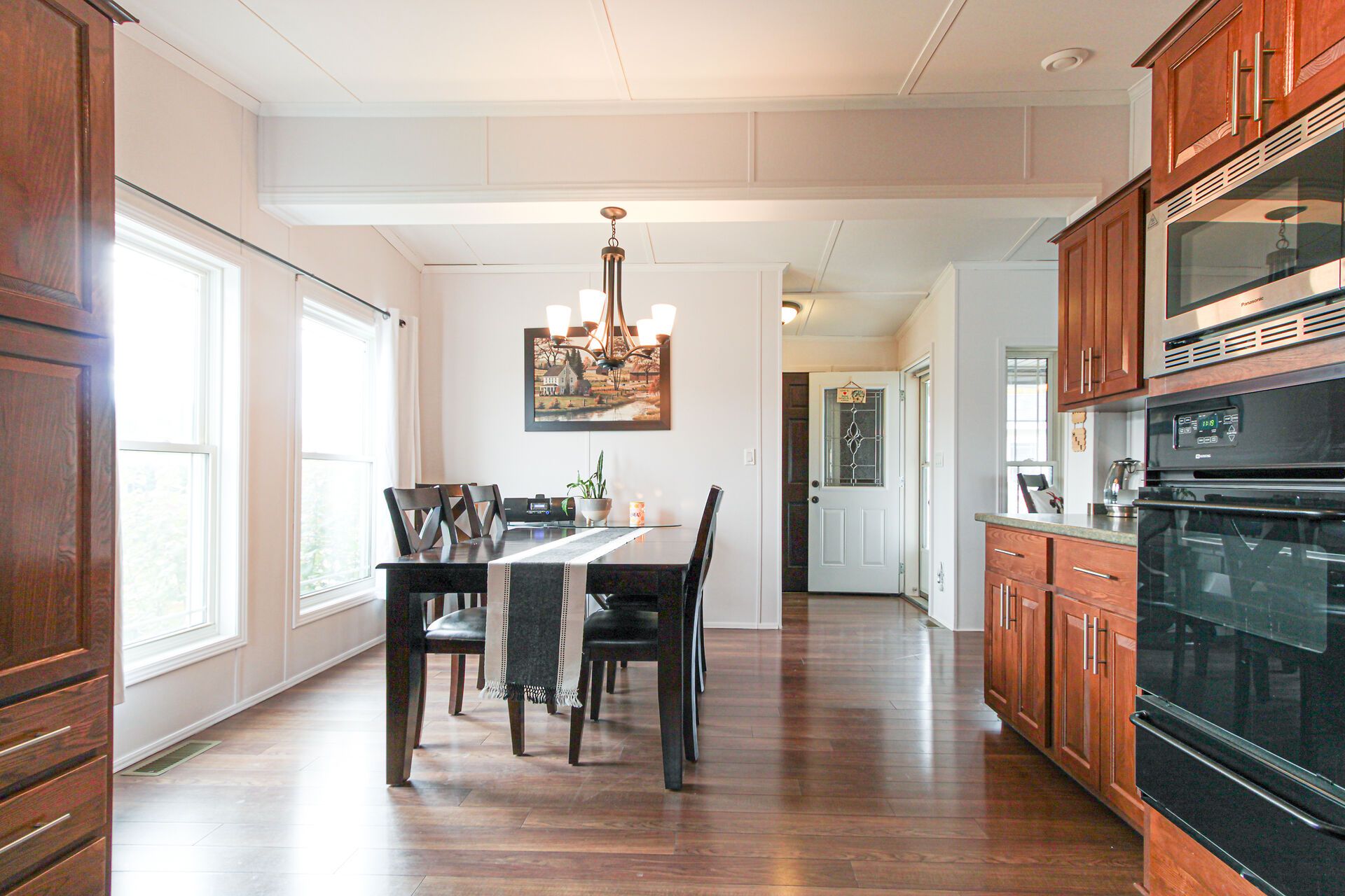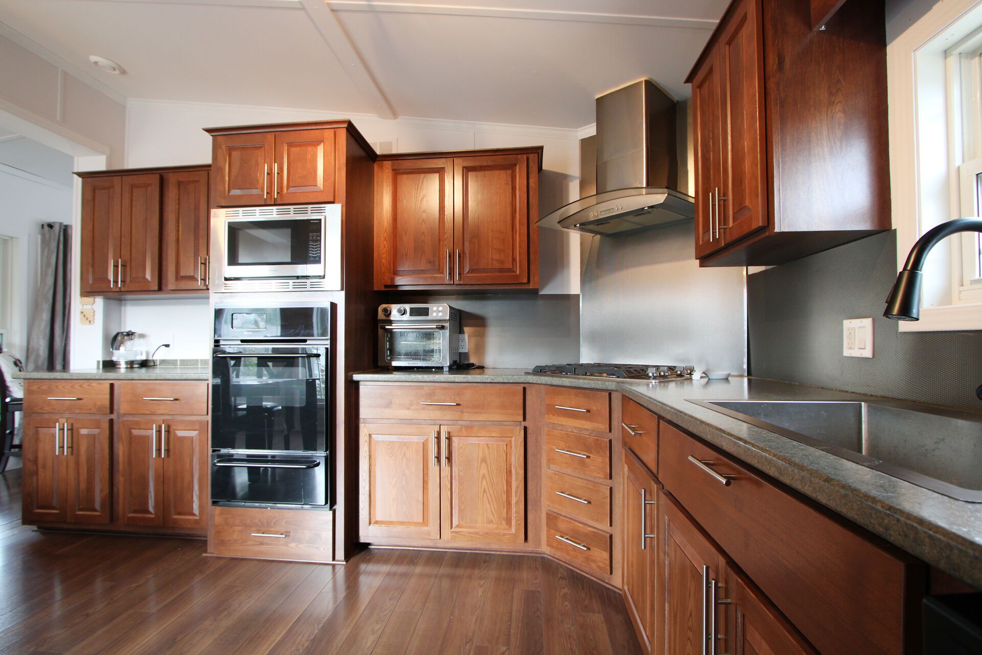 • Spacious kitchen with plenty of cabinets and a large dining area.