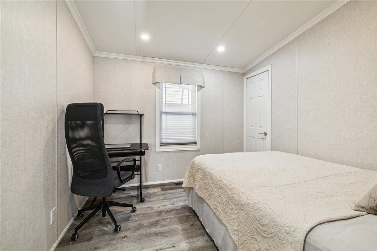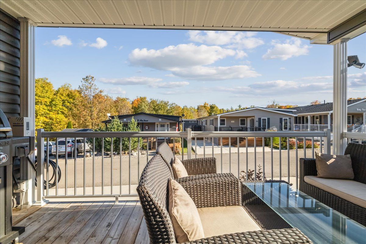 Welcome to this exceptional modular home, perfectly situated on leased land within the exclusive gated community of lost forest in north burlington. Offering year-round comfort and a resort-like lifestyle, residents enjoy interior luxury and fantastic site amenities, including a seasonal pool. Step into the charming foyer and into an open-concept, single-level design, featuring soaring ceilings, and offering one of the largest spaces at 1315 sq ft. The great room is bright and spacious with triple doors leading out to a cozy covered porch. The sunshine dinette features corner windows with eight large panels of glass. Some many things to appreciate including an upgraded kitchen with crown molding and large island, luxury vinyl floors front back, built-in wall cabinets in the great room, and bedrooms, offering tons of storage, in suite laundry and parking for three cars on the concrete driveway. Come and enjoy everything this worry-free, unique lifestyle has to offer!