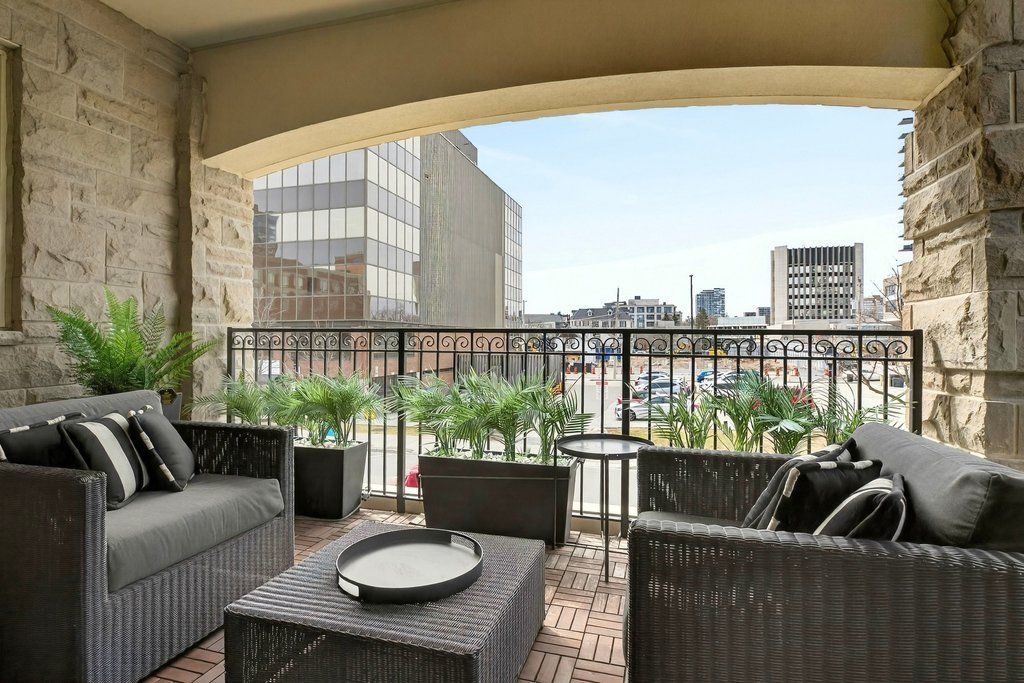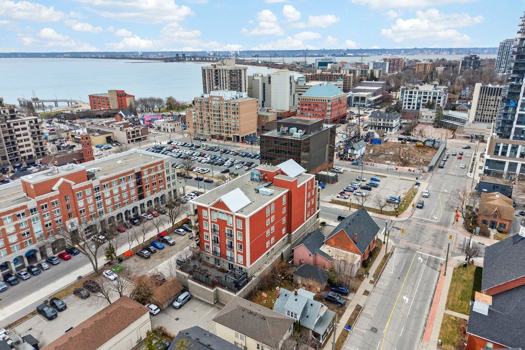 Luxury living in the heart of downtown burlington! 1,887 sq. Ft. 2 bedroom + den/office suite with southwest exposure in an exclusive 13-suite condominium. Just steps to the lake, waterfront park, fine dining, shopping, the burlington performing arts centre and highway access! Stunning custom kitchen with quartz, subway tile backsplash, stainless steel appliances (including wine fridge), centre island and walkout to a private terrace. Primary bedroom with gorgeous 3-piece ensuite, walk-in closet and a walkout to a second private terrace. Additional high-end features and finishes include 9' ceilings, hardwood floors, crown moulding, open concept living/dining with fireplace, a second 3-piece bathroom, a spacious in-suite laundry with built-in cabinetry, custom draperies and more! 1 indoor parking space and 1 storage locker on unit level.