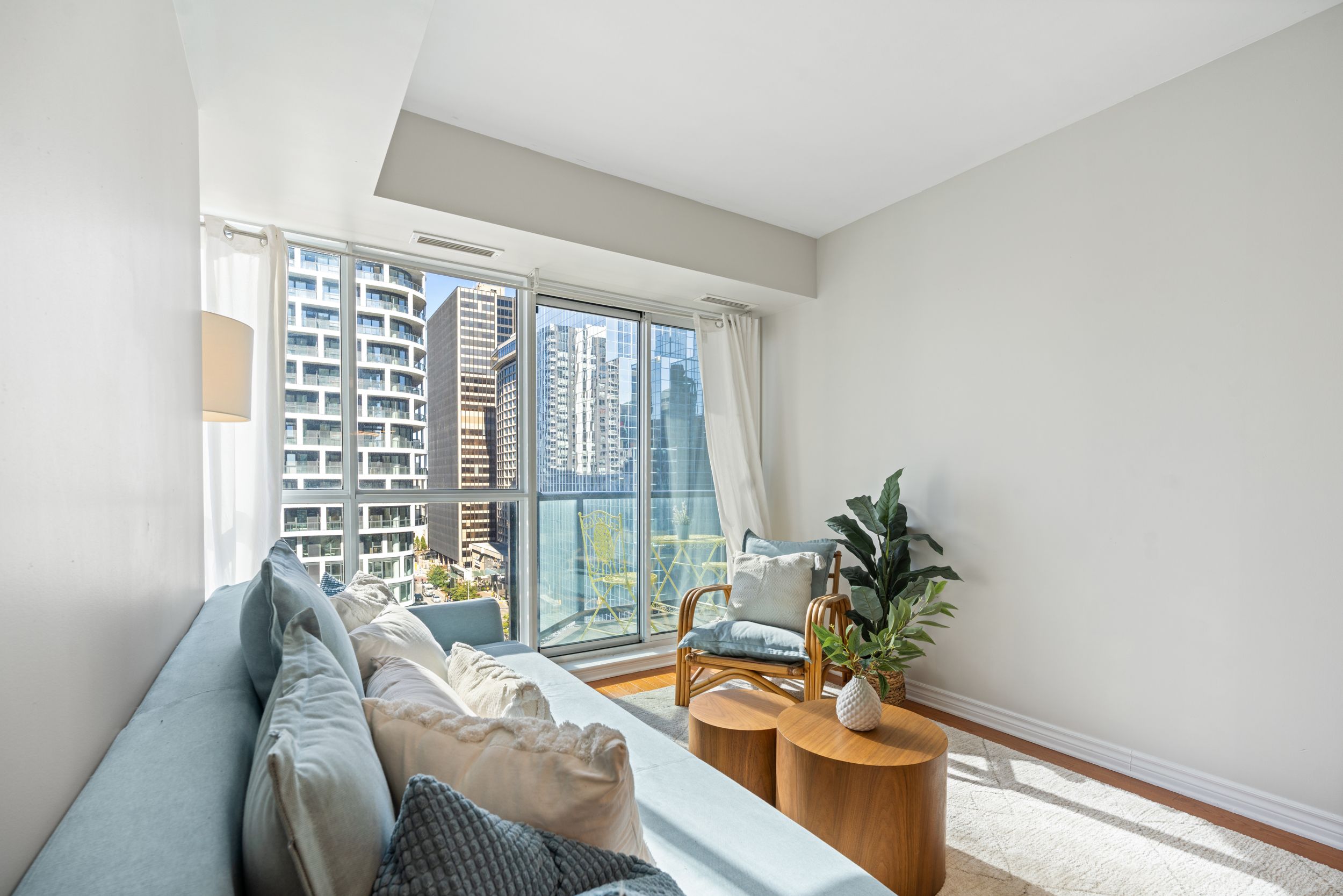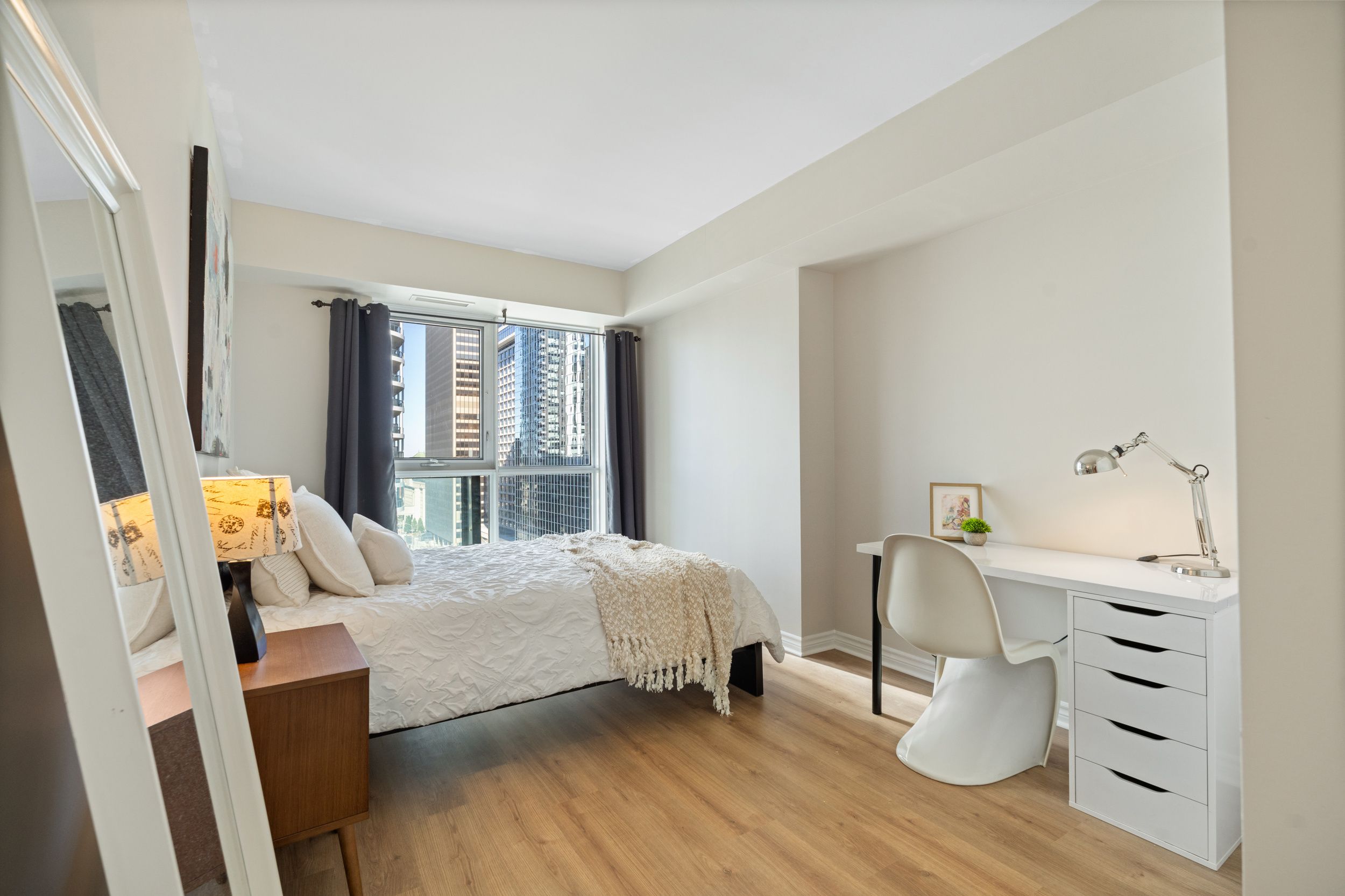 Fully furnished & move-in ready - underground parking included! Step into this bright, thoughtfully designed 1-bedroom corner suite offering 655 sq. Ft. Of stylish urban living right in the heart of downtown. Floor-to-ceiling, wall-to-wall windows flood the open-concept layout with natural light, while the private balcony provides views of the city and the future library. The spacious bedroom easily accommodates a desk and features generous closet space. Perfect for professionals or anyone seeking a chic, low-maintenance city pied-à-terre. Freshly painted throughout, this turnkey unit also includes in-suite laundry and secure underground parking. Unbeatable location: just steps from lyon lrt station, parliament hill, the bank of canada, world exchange plaza, scenic walking paths, and a vibrant selection of cafés, restaurants, and boutiques.