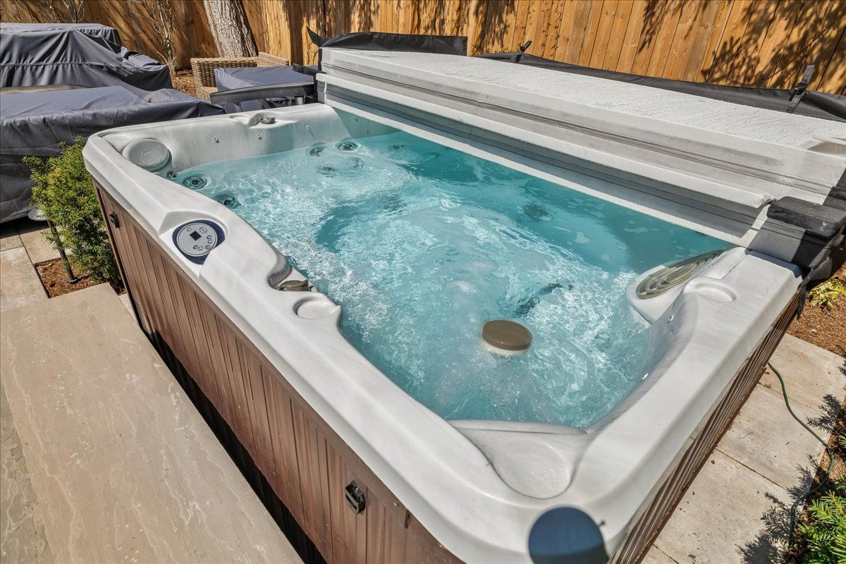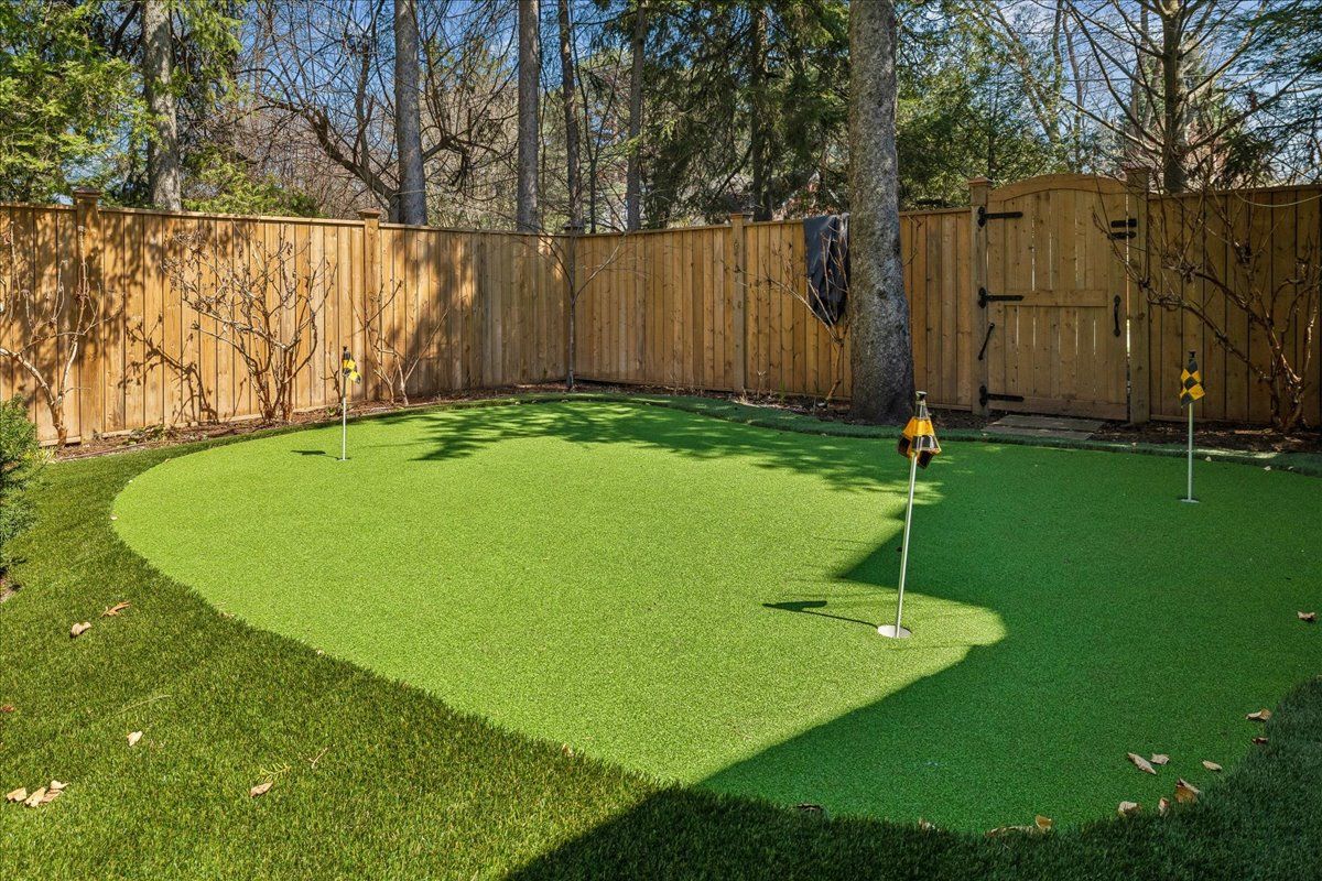 • Backyard oasis featuring a saltwater pool, hot tub, and putting green.