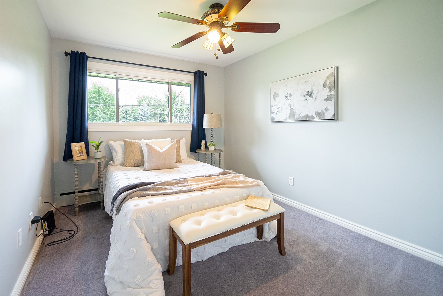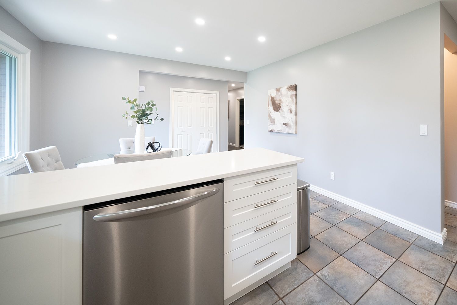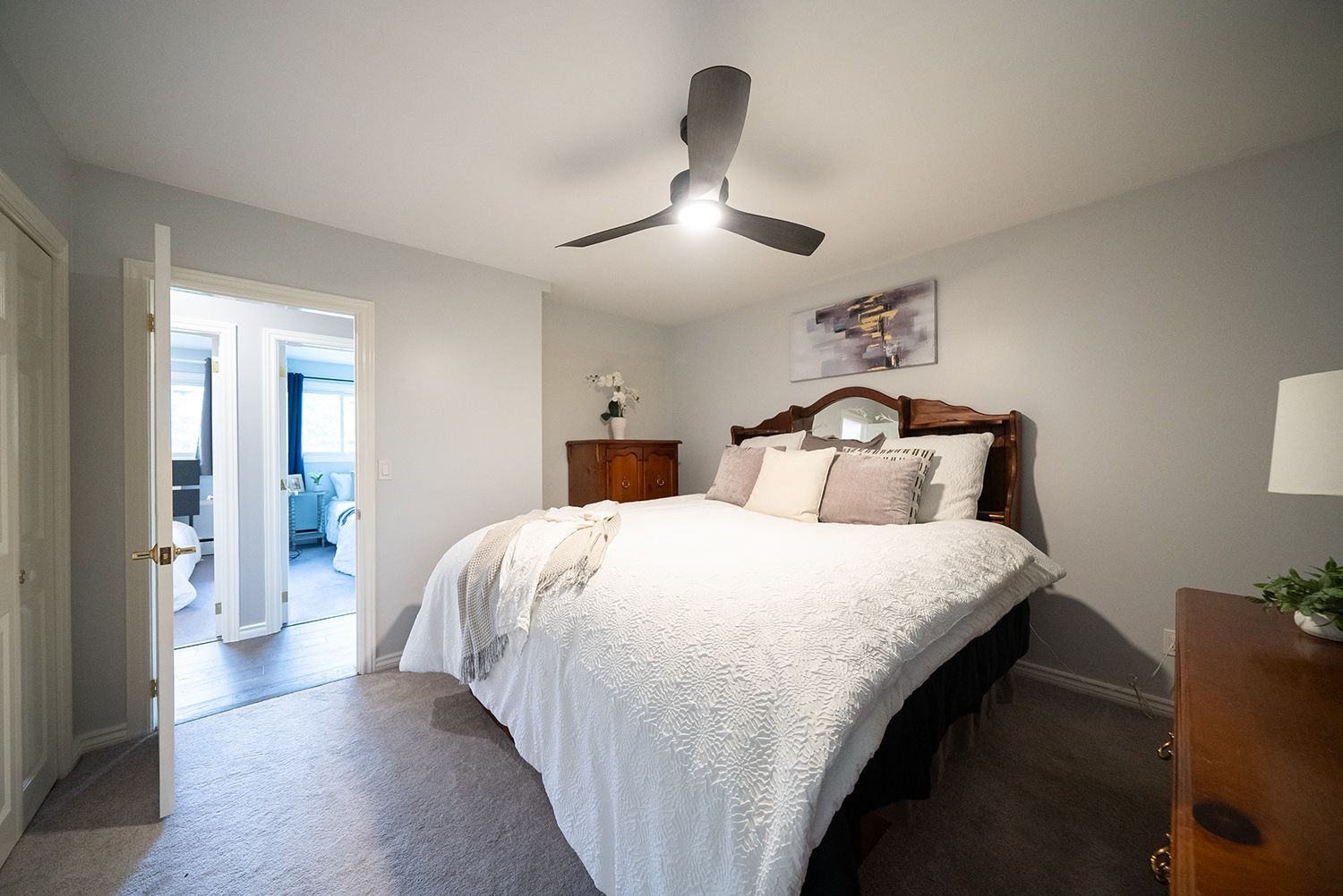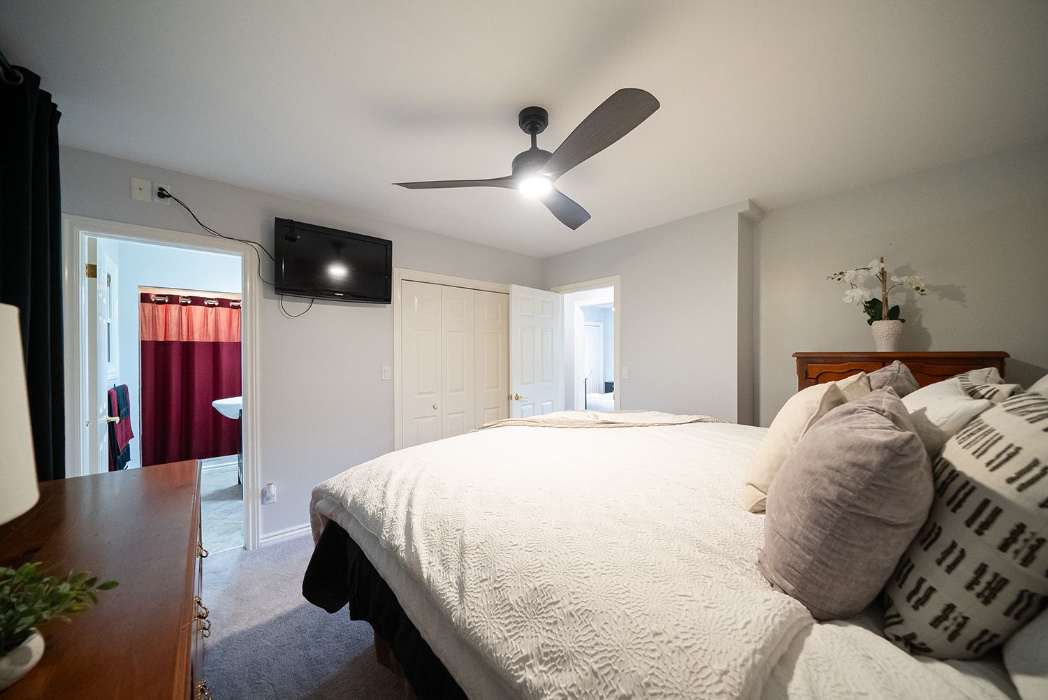 Welcome home to 445 powerline road, a handsome bungalow nestled on a deep 185' ft lot in brantford's highly sought after north end. This tidy home includes a full brick exterior, ample parking with a double-wide driveway, and a oversized single-car garage. This 3 bedroom, 2 full bathroom home has 1,410 sq ft of above grade space, plus an additional 430 sq ft of finished living space in the basement. The main floor design showcases a mix of tile & newer engineered hardwood flooring (2023) throughout the living room, hallways, kitchen & dining space. The living room has a large window providing plenty of natural light while the kitchen & dining room have recessed led lighting with a bright open design making an excellent space for everyday living. The new custom salt & pepper kitchen (2023) has quartz counters, crown molding, recessed led lighting and stainless steel appliances that include an over-the-range microwave and built-in dishwasher. A back door accessing the rear yard can be found here. The main floor is complete with 3 bedrooms that include the primary bedroom accompanied by a 3pc ensuite, and a 4pc bathroom with recently updated cabinetry, a quartz countertop, an led smart mirror and built-in bluetooth speaker. Both bathrooms feature heated porcelain floors. The basement has a large recreation room and features an attractive gas fireplace. The basement is complete with a laundry room, workshop and an additional room suitable for a home office. Walk-up from the basement to the fully fenced green backyard. This feature allows for multi generational living or a potential income suite opportunity. In addition the backyard has a large raised wood patio, a motorized awning and bbq gas hookup. Enjoy the warmer months in the sun or under the shade while gathering with friends & family. Located in one of brantford's favourite family friendly neighbourhoods, this lovely home is close to excellent schools, parks, shopping and highway access.