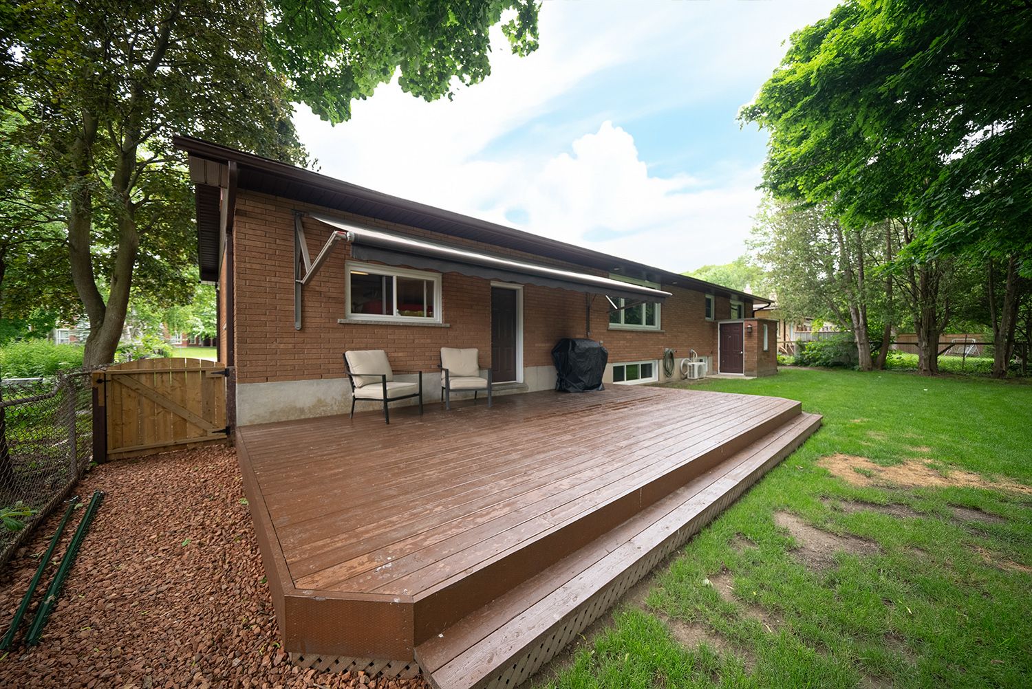 • Fully fenced backyard with a large patio, motorized awning, and BBQ hookup.